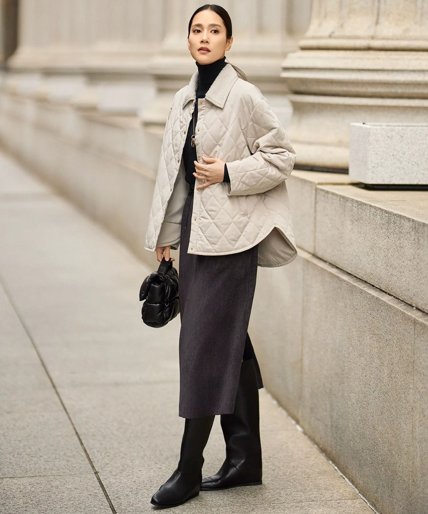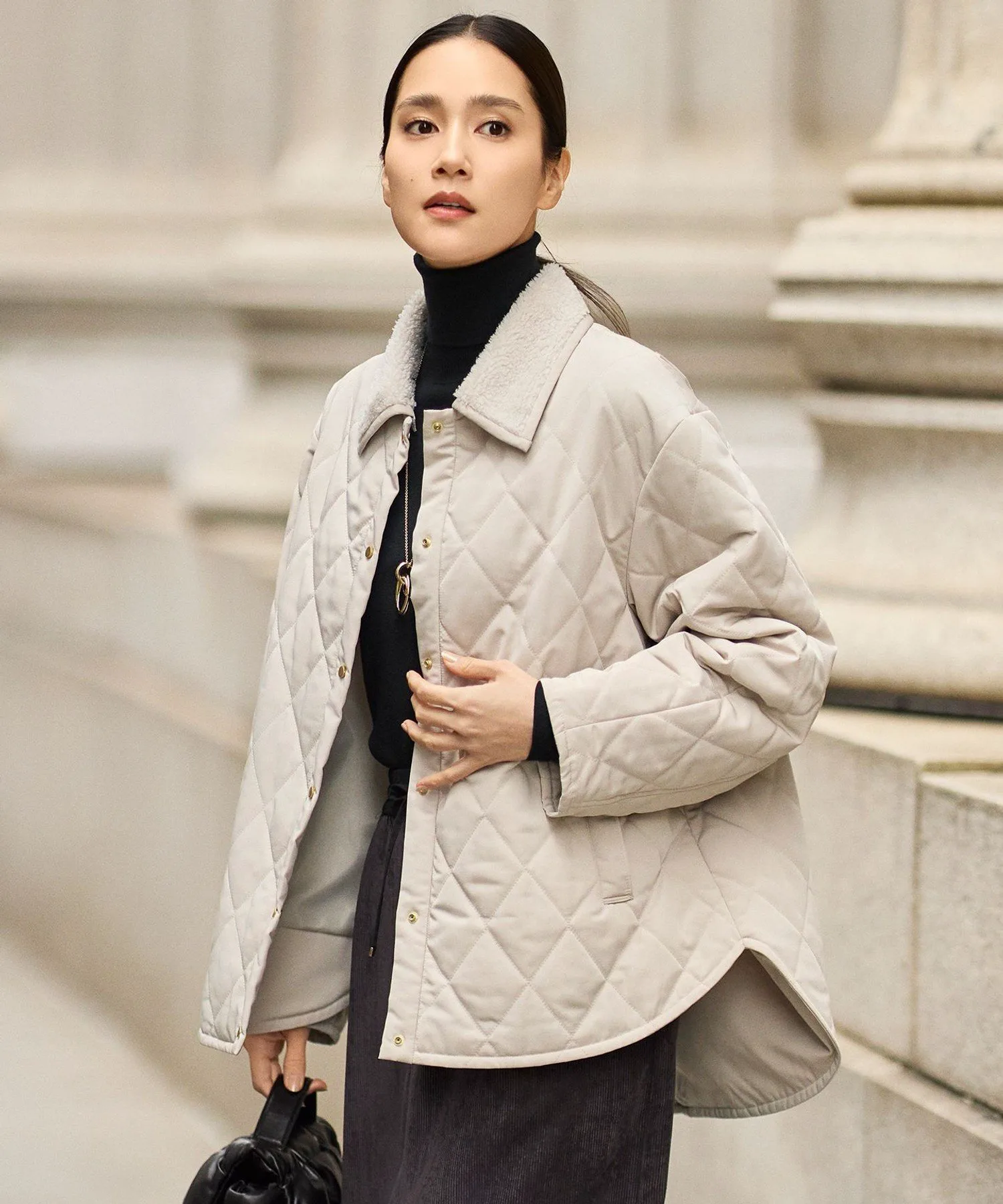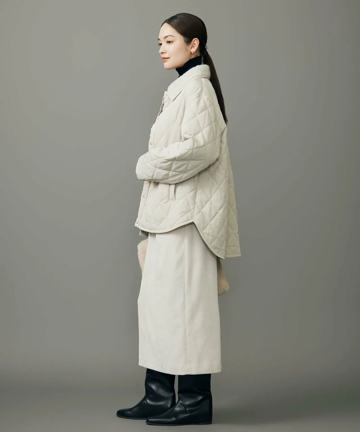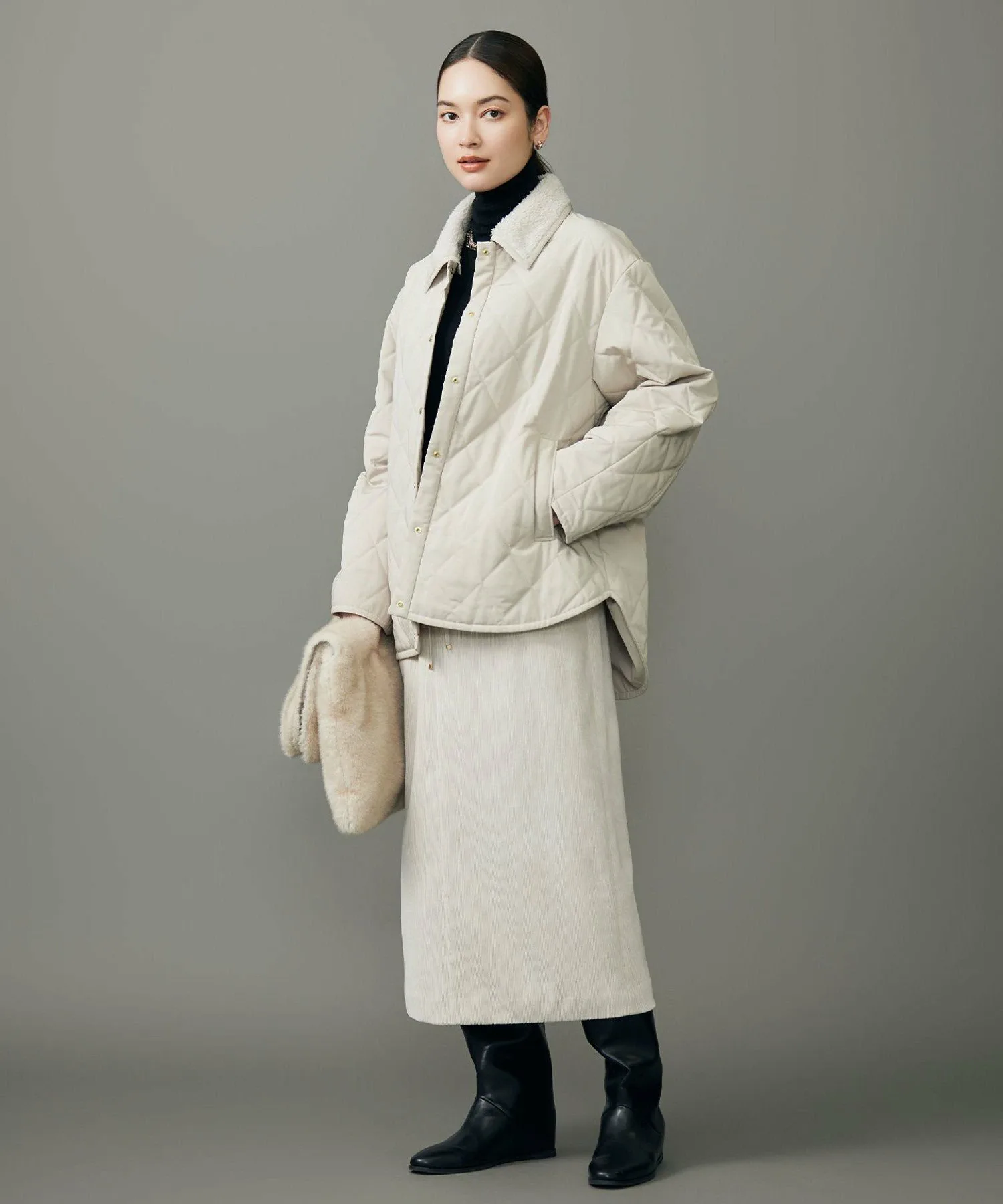 Эта куртка имеет съемный флисовый воротник для создания изысканного образа. Дизайн: Куртка простегана легким утеплителем. Пуговицы в золотую точку подчеркивают изысканный дизайн, не делая его слишком повседневным. Съемный воротник из флиса в тон позволяет создать компактный образ без воротника. Умеренно свободный силуэт и хорошо скроенные рукава создают простой, но модный образ. Длина комфортно закрывает бедра, что позволяет легко сочетать ее с различными вариантами низа. Тонкий, теплый и мягкий утеплитель обеспечивает легкое тепло и удобную, облегающую посадку. Материал: Эта тафта изготовлена из полиэстеровой микрофибры. Нежные горизонтальные полосы создают изысканную текстуру средней плотности. Тонкие текстуры создают насыщенный цвет, придавая элегантность даже повседневным вещам. Обратите внимание, что представленные изображения являются образцами; характеристики, отделка и размер могут немного отличаться от фактического продукта. *Из-за условий съемки цвет может отличаться от фактического продукта. Рост: 168 см, Обхват груди: 74 см, Обхват талии: 61 см, Обхват бедер: 89 см