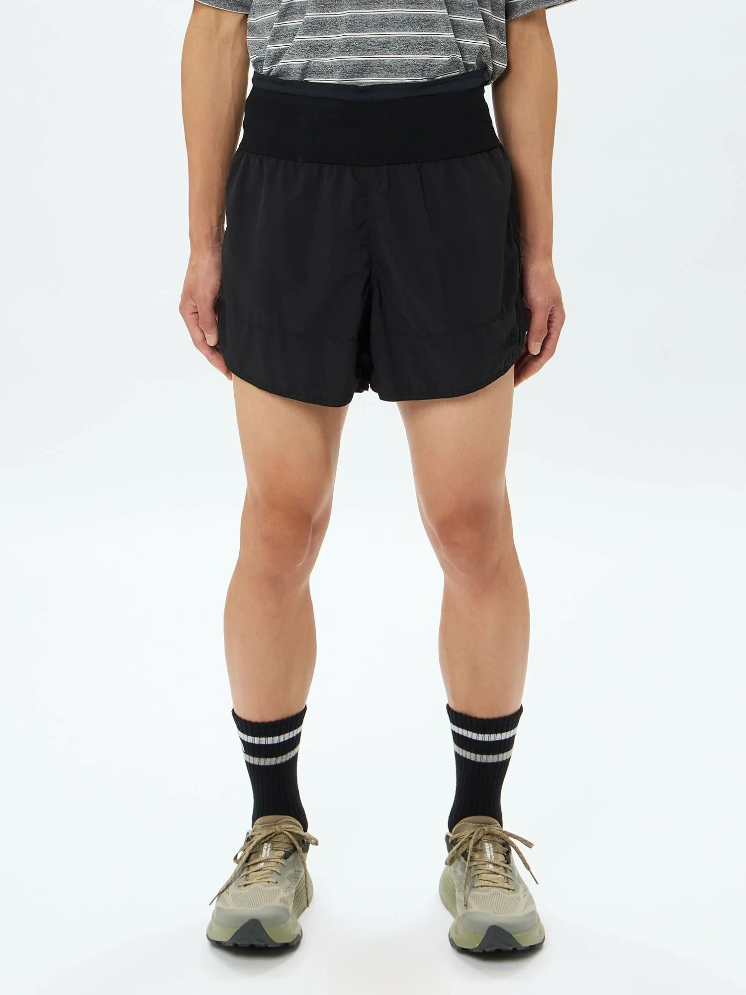 Длина внутреннего шва составляет 12,5 см (размер L), что на 5,0 см короче, чем у шорт Free Run (NB22591), а немного более широкий низ и боковые разрезы обеспечивают свободу движений ног. Эти шорты оснащены шестью сетчатыми карманами спереди и сзади, что удобно для хранения таких вещей, как смартфоны и ветровки, что делает их идеальными для ситуаций, когда носить рюкзак не нужно.