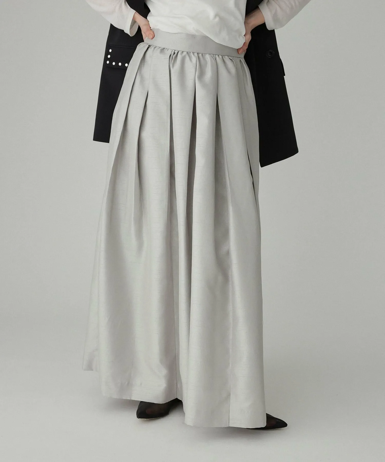 Расклешенная длинная юбка с элегантным блеском в качестве изюминки