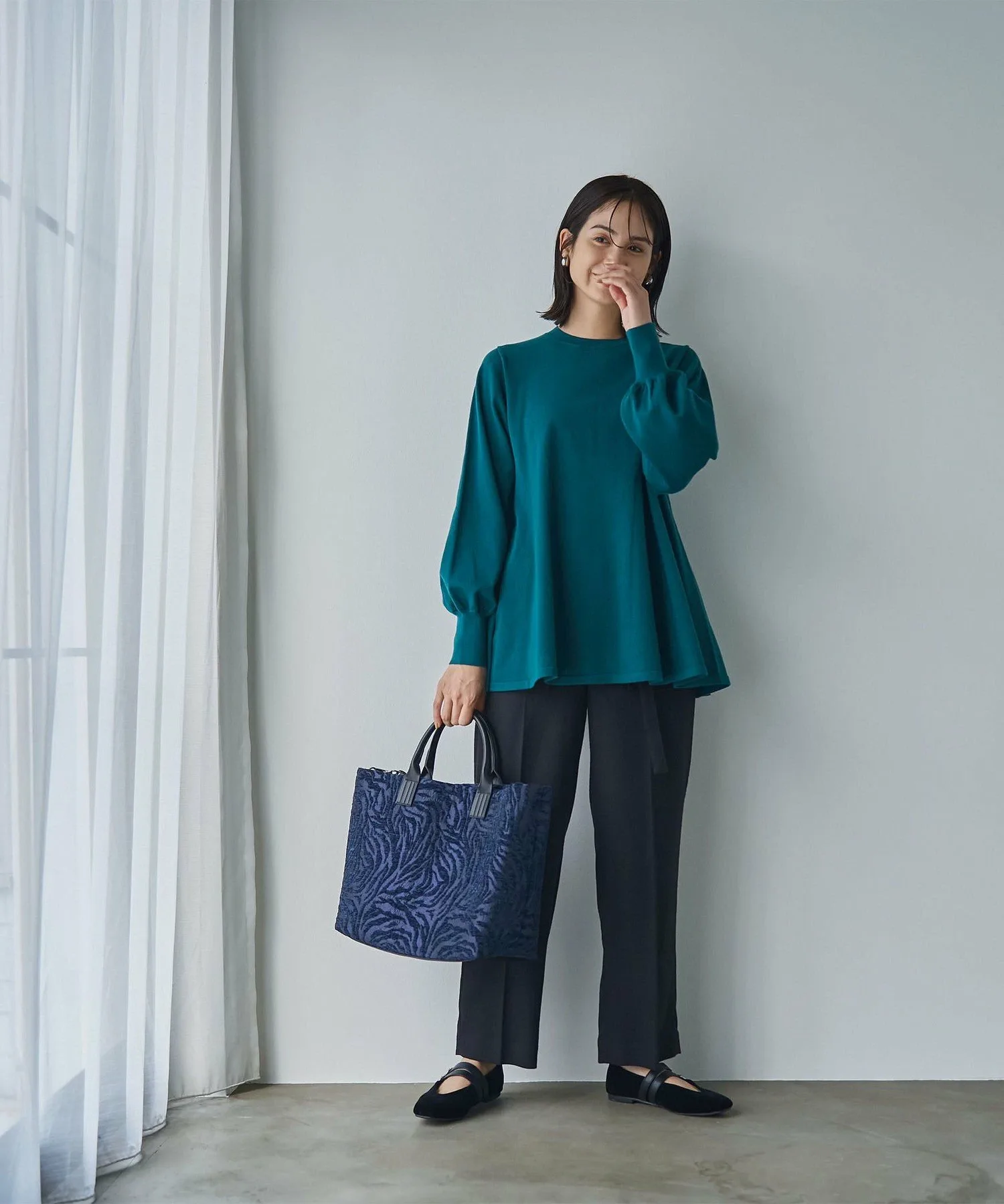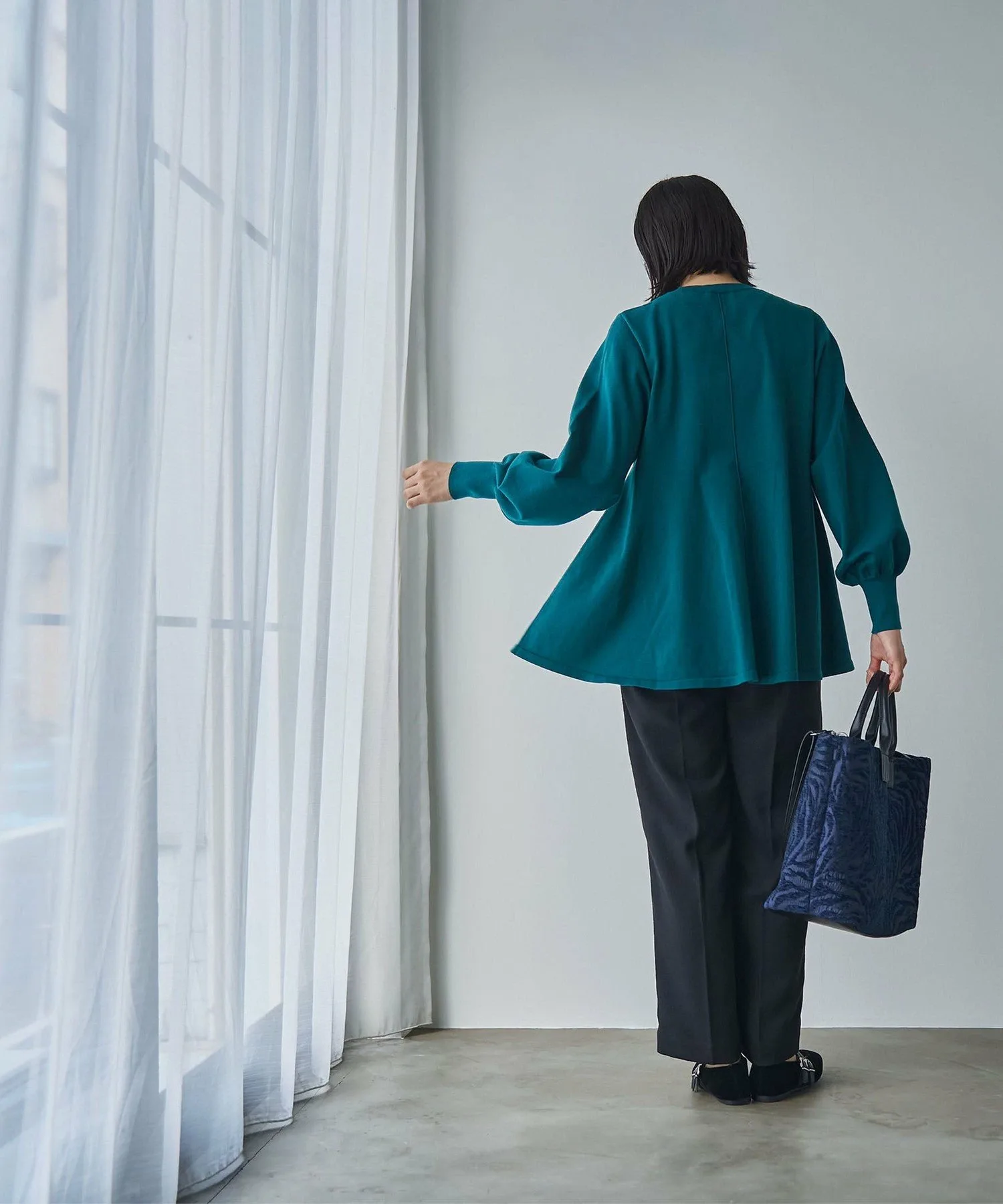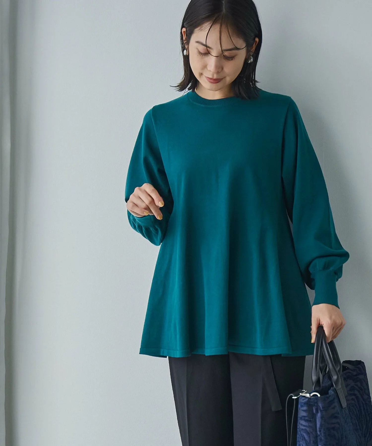 Трикотажный топ с расклешенным силуэтом, который легко можно носить как футболку с длинными рукавами.