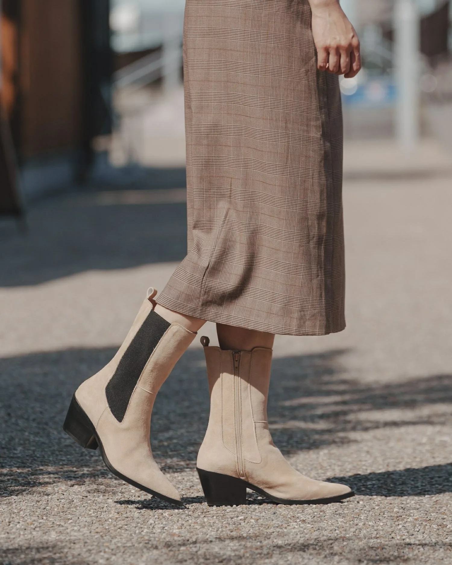 Комментарий: Когда я примерила размер 39, в голенище было достаточно места, но заостренный носок немного стеснял пальцы. Молния позволяет легко надевать и снимать их. Главное преимущество – четкая форма, которая визуально делает ваши ноги стройнее. ♪