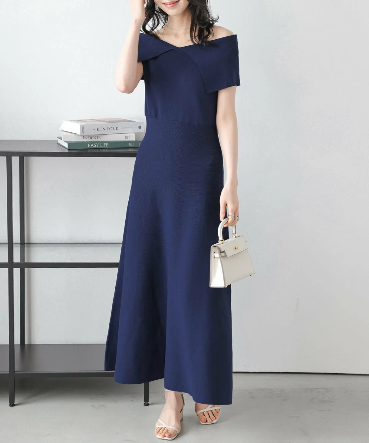 Создает женственный силуэт, облегающий тело, а изменение вязки на талии создает трехмерную текстуру поверхности для эффекта стройности.
