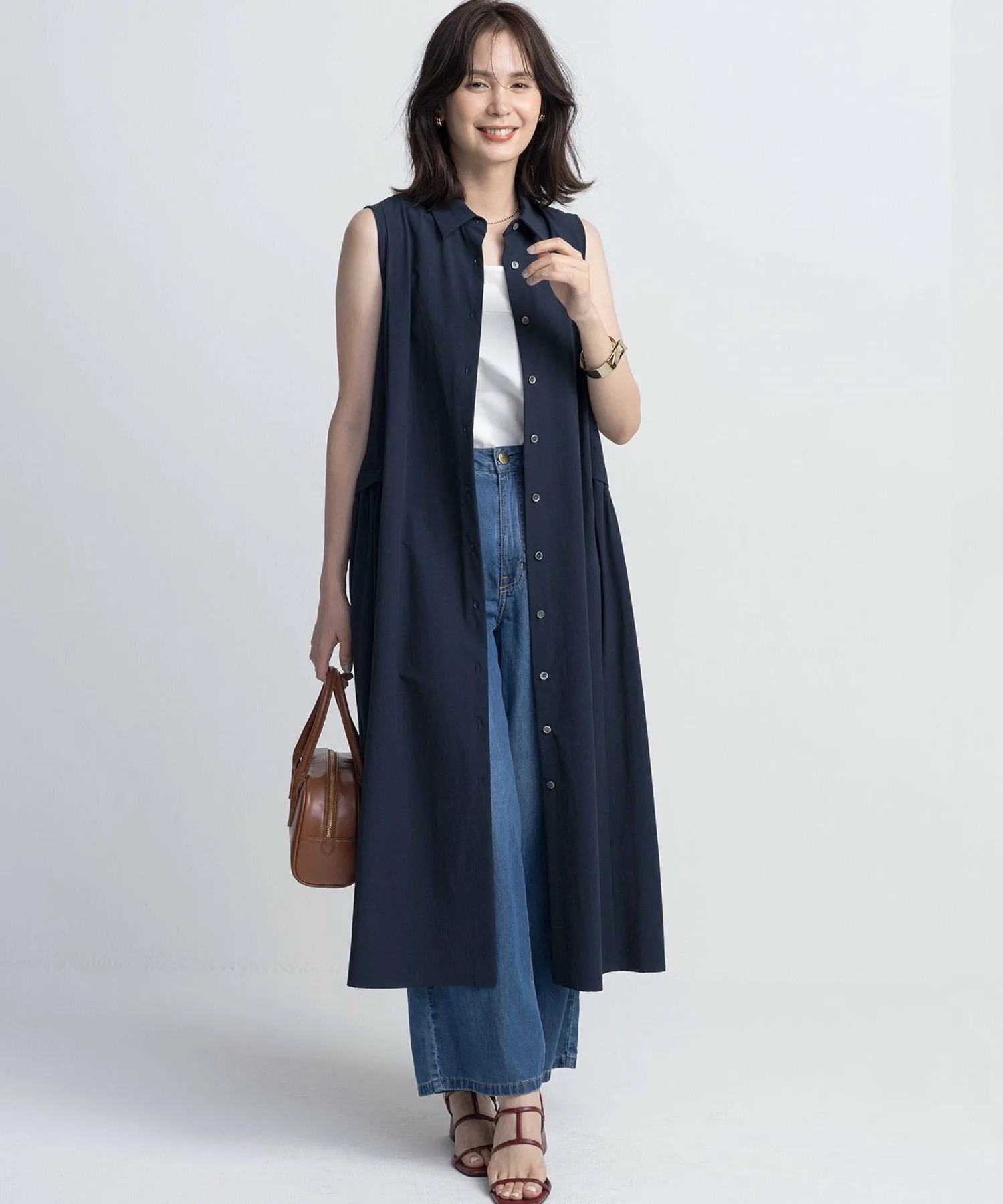 Дизайн: Это платье без рукавов идеально подходит для любого сезона, а сборки по бокам создают зрелый, женственный образ. ・Вертикальные складки от плеч визуально стройнят, а сборки по бокам подчеркивают женственность. ・Хорошо очерченный силуэт с объемом к подолу. ・Отлично смотрится как само по себе, так и в повседневном стиле с футболкой или джинсами. ・Карманы и подъюбник также являются приятными дополнениями.