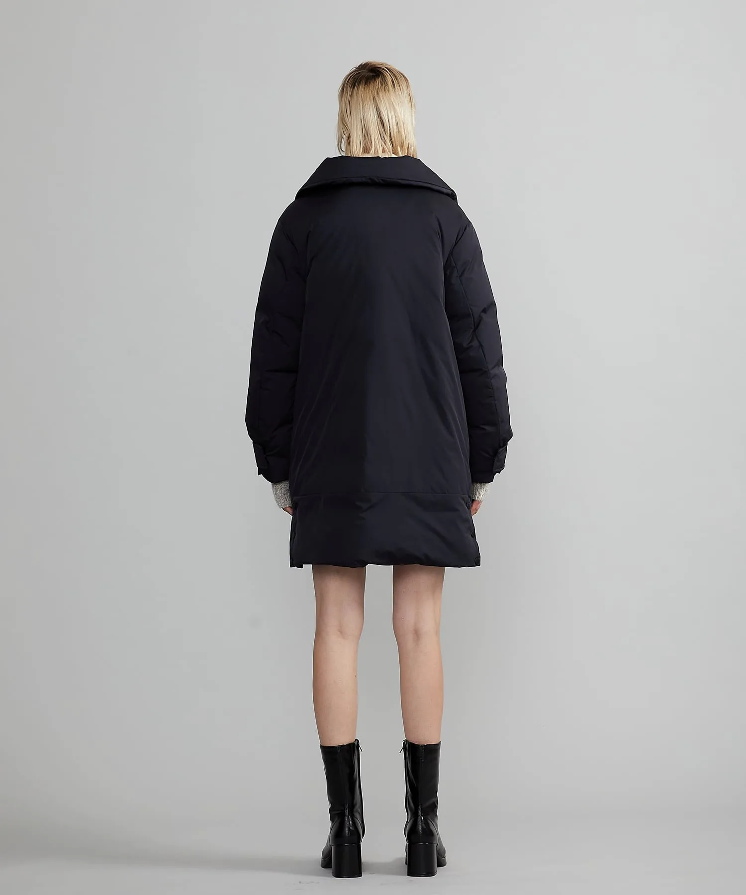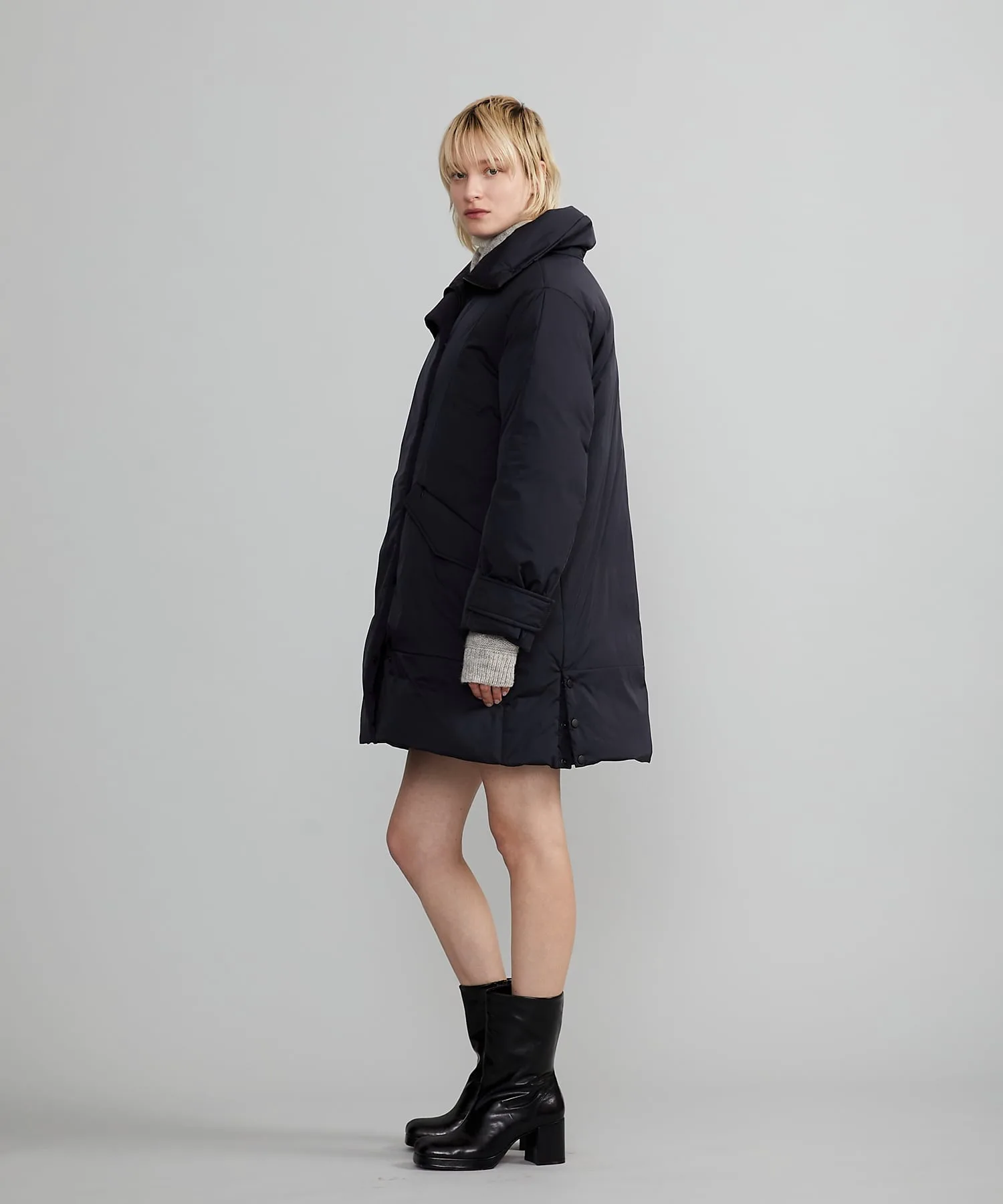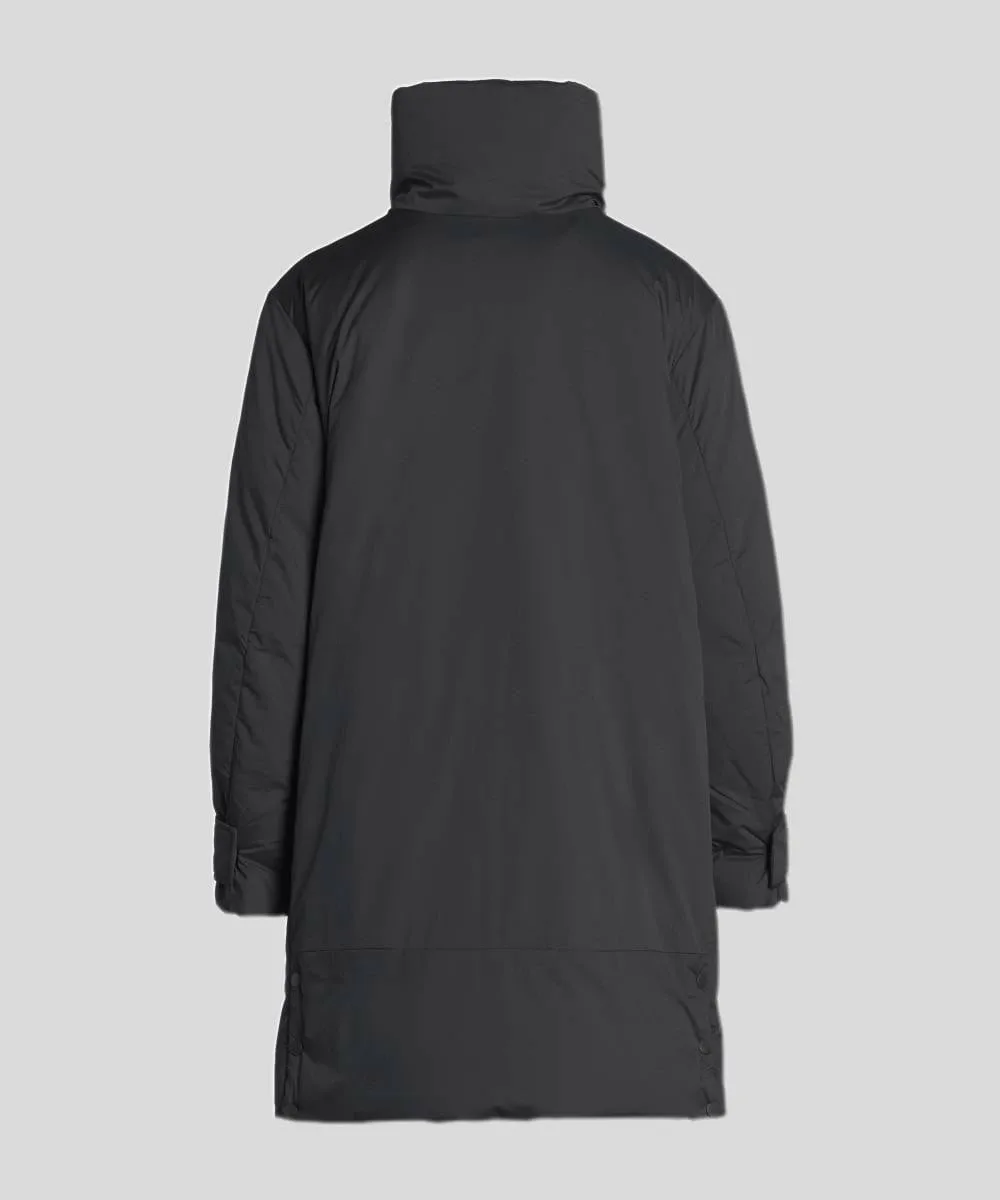 Эта пуховая куртка с длинными рукавами имеет легкую нейлоновую внешнюю оболочку, а наполнитель представляет собой комбинацию теплого и легкого пуха и дышащих и эластичных перьев. Ее также можно трансформировать в топ с высоким воротником, чтобы плотно облегать тело и защищать от ветра. Однотонный цвет позволяет легко сочетать ее с любой одеждой.