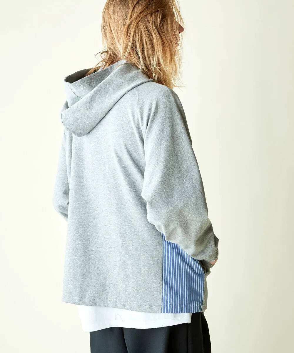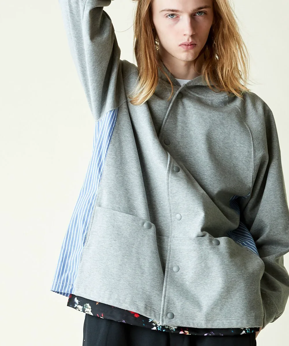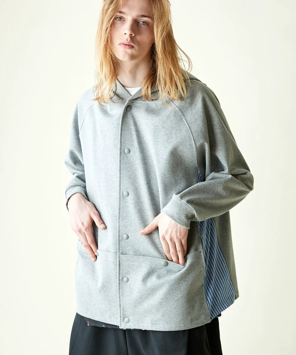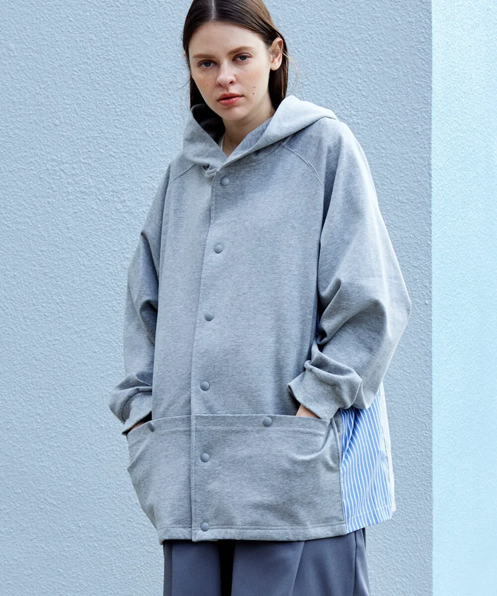 Этот кардиган имеет объемный силуэт с капюшоном и полосатую ткань, используемую для переходных частей по бокам. Прочная ткань делает его более подходящим для ношения в качестве верхней одежды, чем кардигана, и подходит для широкого спектра сезонов. Основной материал — ткань понте, плотная, но приятная на ощупь, с высокой степенью эластичности для свободы движений. Силуэт отличается модным широким силуэтом и рукавами реглан, которые не напрягают плечи, что делает его подходящим как для мужчин, так и для женщин. Рост модели: 184 см. Размер: Черный, Серый/Маленький