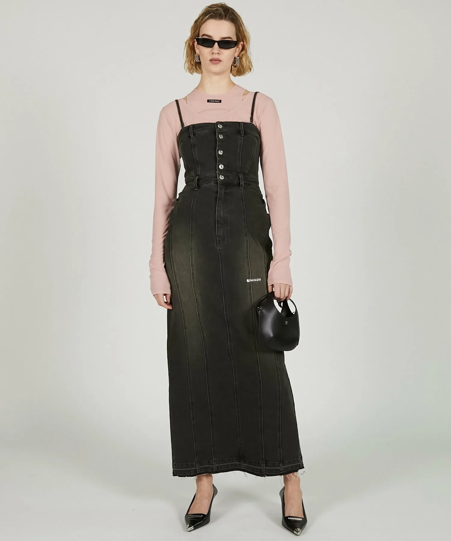 Двустороннее джинсовое платье с пуговицами спереди в качестве изюминки.