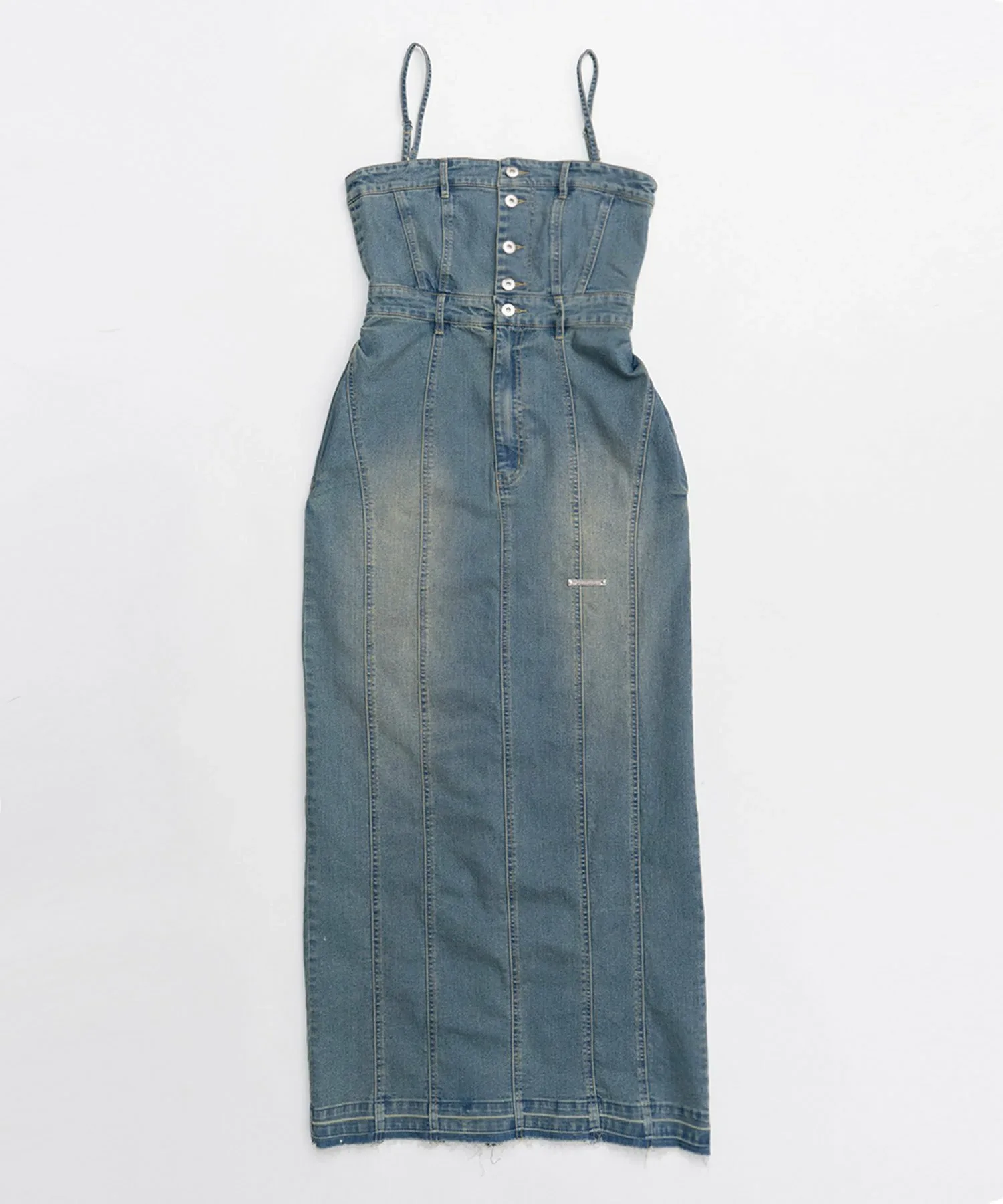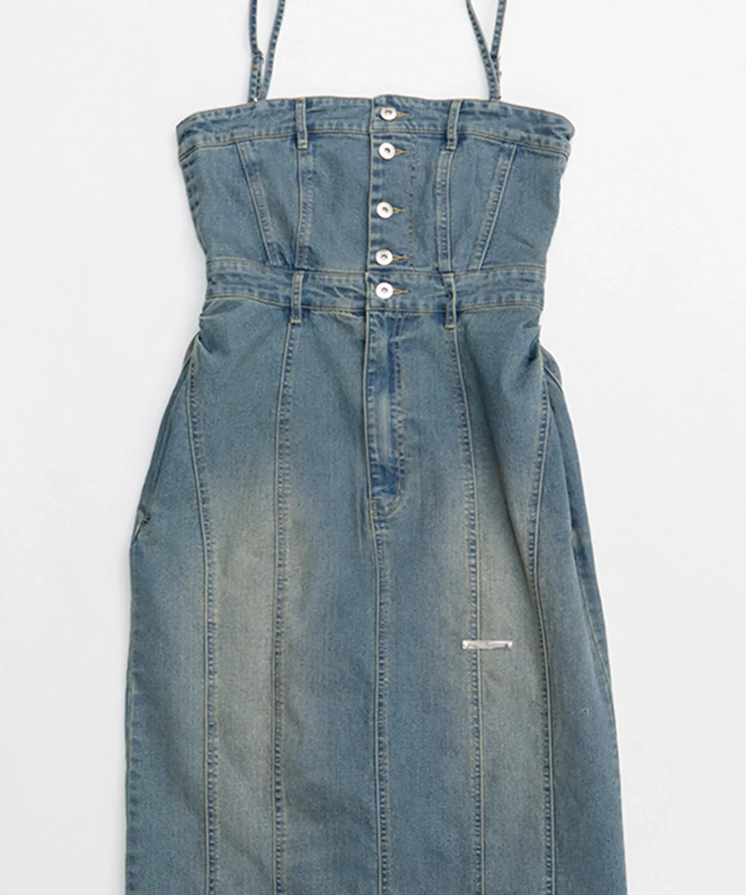 Двустороннее джинсовое платье с пуговицами спереди в качестве изюминки.
