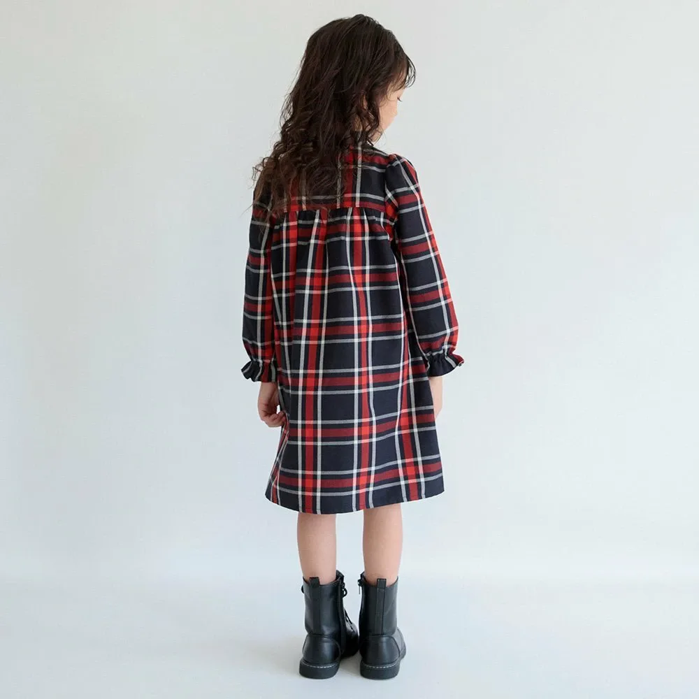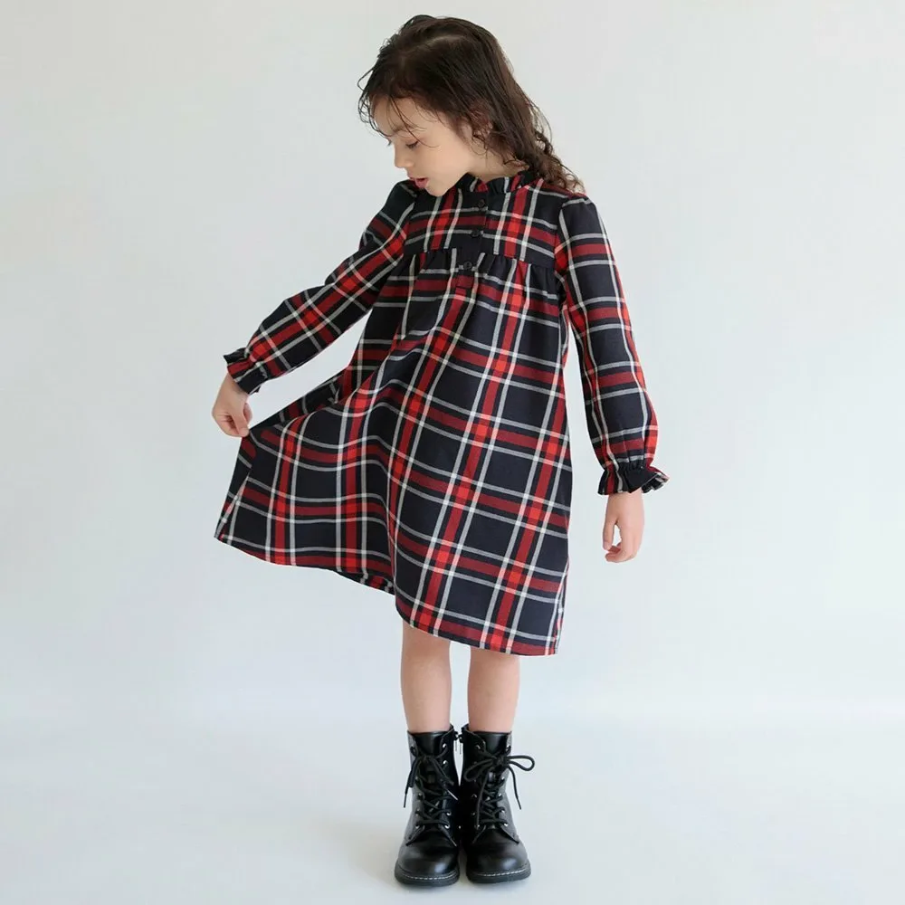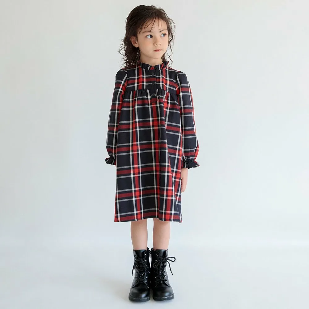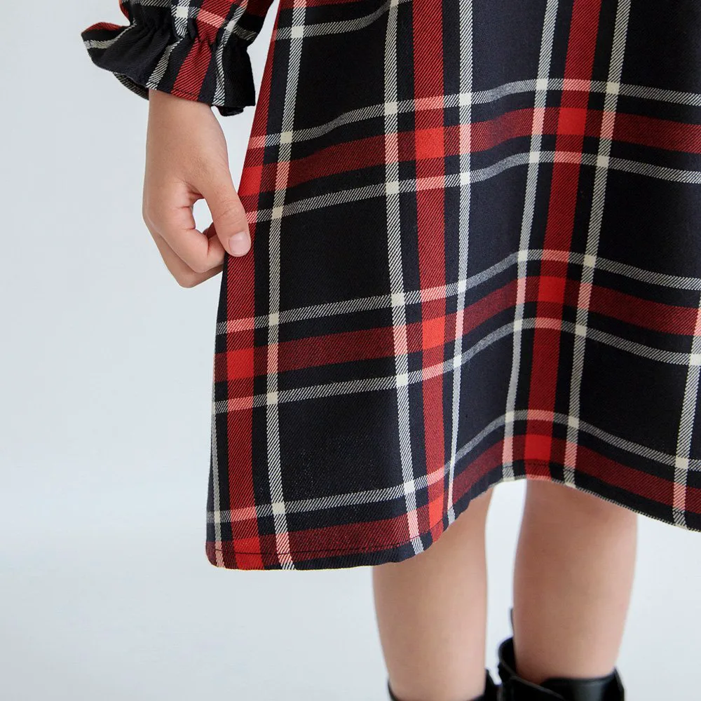 Клетчатый узор милый, а рюши на воротнике и манжетах делают это платье очаровательным.