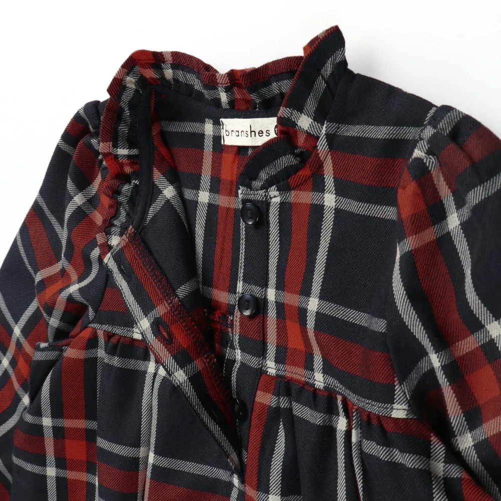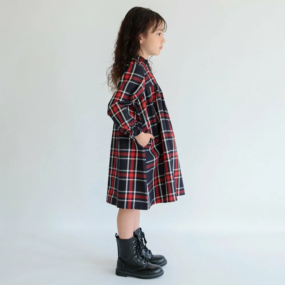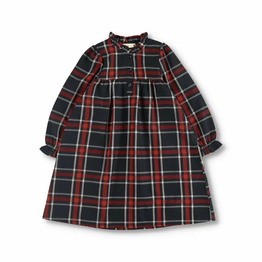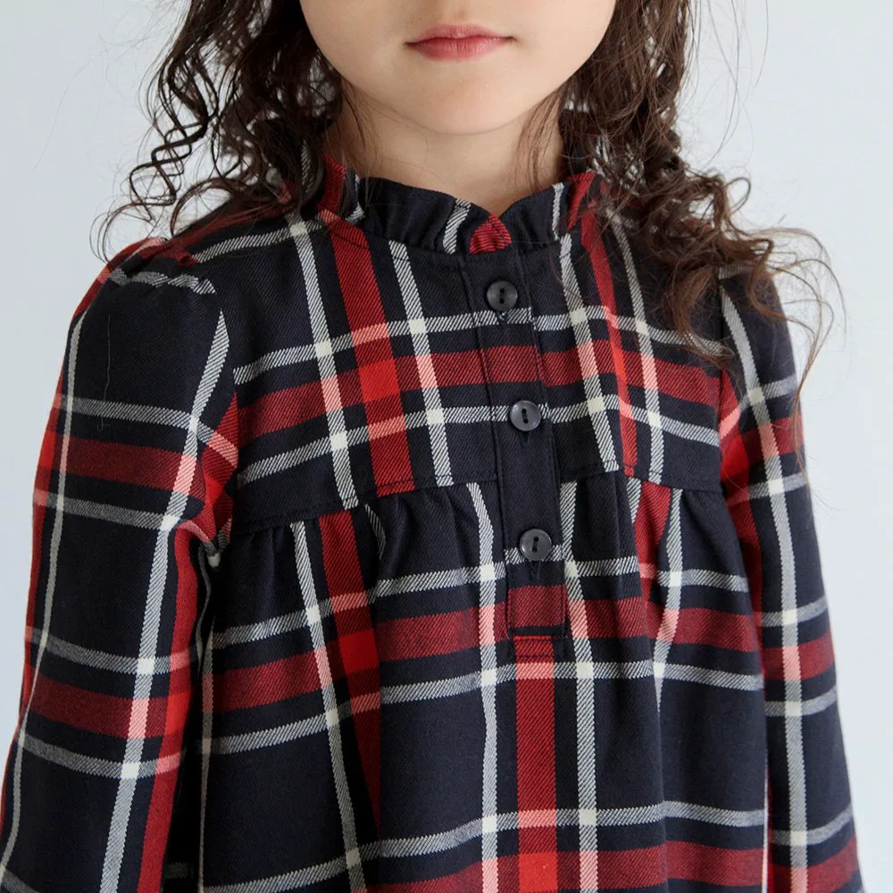 Клетчатый узор милый, а рюши на воротнике и манжетах делают это платье очаровательным.