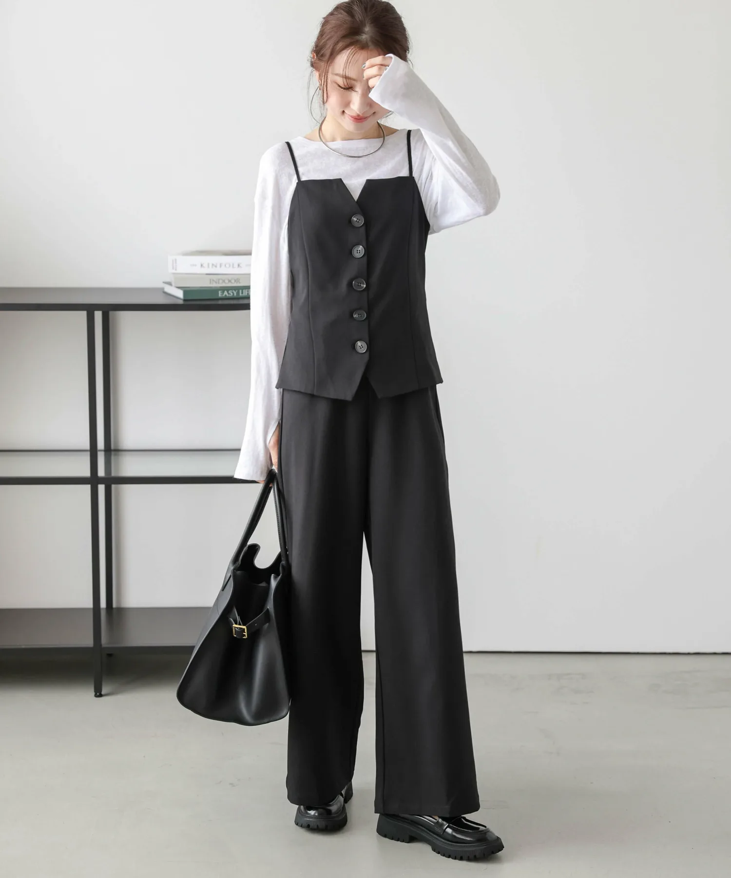 Комбинезон-бюстье, украшенный большими пуговицами.