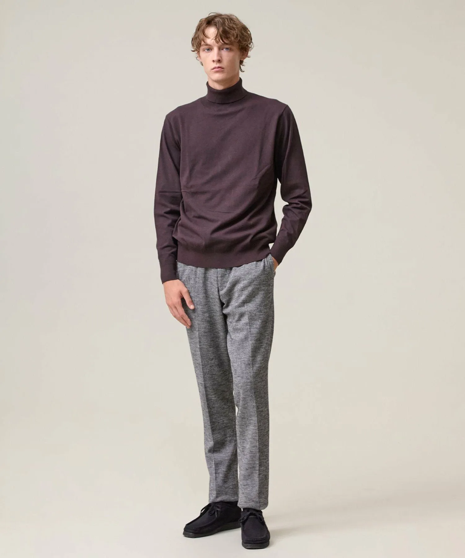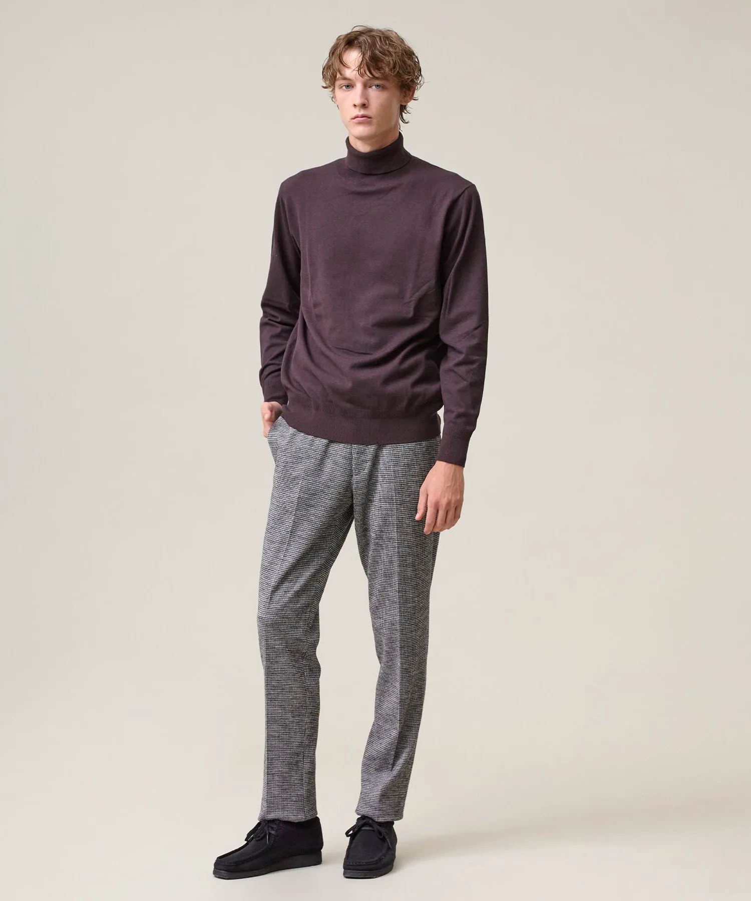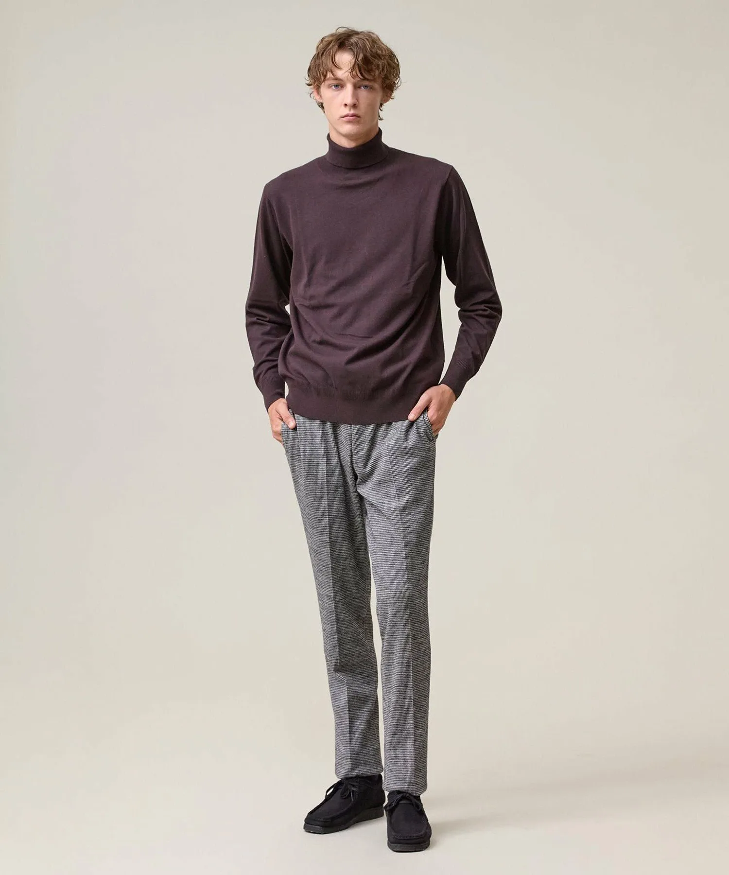 Легкая, удобная и универсальная водолазка. Модель 2025 года. Ее простой, но элегантный вид создает впечатление интеллектуальности. Изготовленная из классического материала J.PRESS, эта водолазка станет надежным вариантом для переходного периода между сезонами. Изготовленная из высокоэластичной смеси вискозы и полиэстера, она обеспечивает ощущение прохлады и свежести, а также оптимальную плотность, создавая красивый внешний вид. Материал прост в уходе: его можно стирать вручную, он сохраняет форму и не мнется. Идеально подходит для повседневной носки. Эластичность обеспечивает свободу движений. Функциональность: Эластичность. Ручная стирка. Силуэт/Размер: Стандартный крой для обтекаемого вида и свободы движений. Достаточно удобна для ношения в качестве нижнего слоя и не будет мешать многослойной одежде. Универсальный, сбалансированный дизайн, подходящий всем. Водолазка имеет отложной воротник для изысканного, сдержанного образа. Основная часть выполнена из гладкого трикотажа, подчеркивающего текстуру материала. Ребристая отделка на рукавах и подоле имеет едва заметные вариации вязки, что придает простому дизайну изысканный вид. Сопутствующие/Похожие товары: Носите его элегантно под жакетом. Наденьте его под рубашку для создания утонченного многослойного образа. От ранней осени до глубокой зимы этот универсальный топ позволяет легко регулировать температуру. Мы также рекомендуем носить его с жакетом-блузоном из того же материала. Комментарий дизайнера: Эта водолазка не только универсальна, но и выглядит элегантно. Привлекательность этого материала заключается в его легкости и комфорте, а также непринужденности. Едва заметные вариации вязки и ребристости гарантируют стильный вид как в качестве нижнего слоя, так и в качестве самостоятельного элемента. Это, безусловно, станет вашим первым выбором, когда температура непредсказуема. *Изображения модели и разложенного изделия являются образцами. Фактический продукт может немного отличаться по цвету, характеристикам, отделке, размеру и материалу. Пожалуйста, обратитесь к изображению на вешалке для получения информации о цвете и деталях. *Из-за условий освещения фактический продукт может выглядеть немного ярче, чем он есть на самом деле. Также, в зависимости от настроек экрана вашего компьютера, цвет фактического товара может немного отличаться от изображения. Благодарим за понимание.