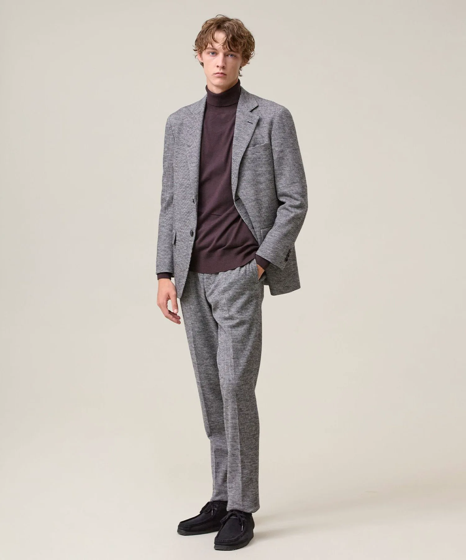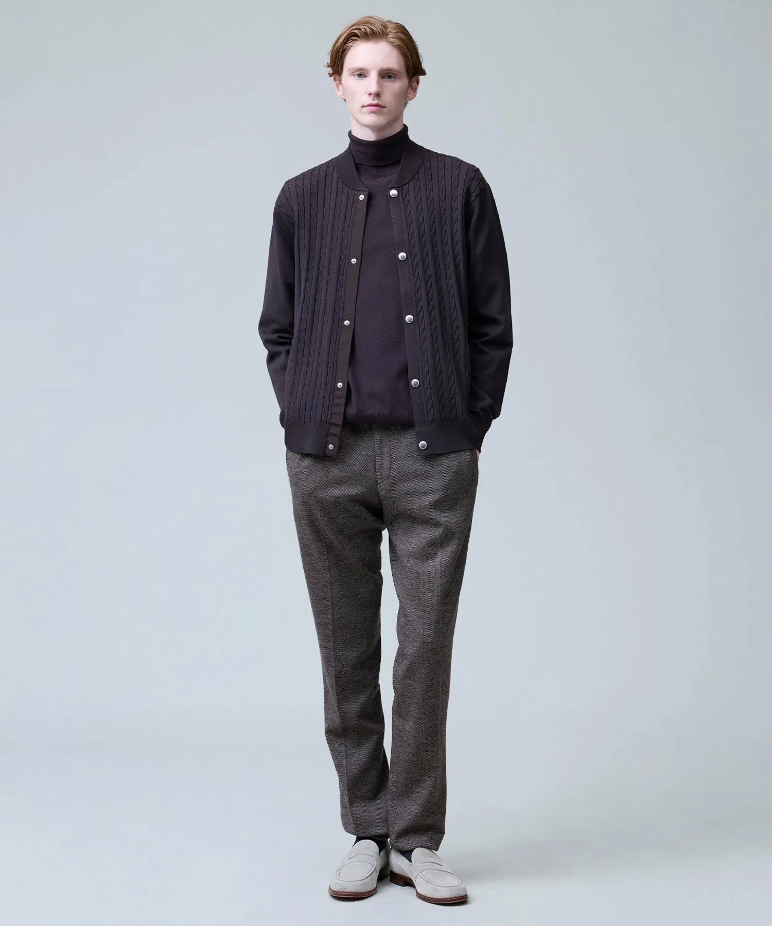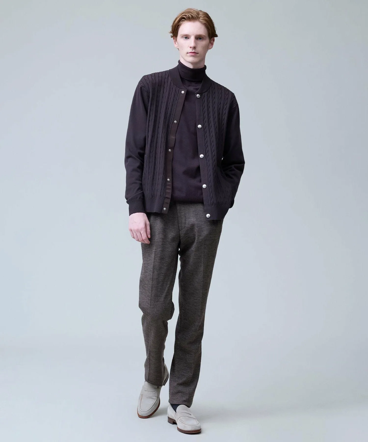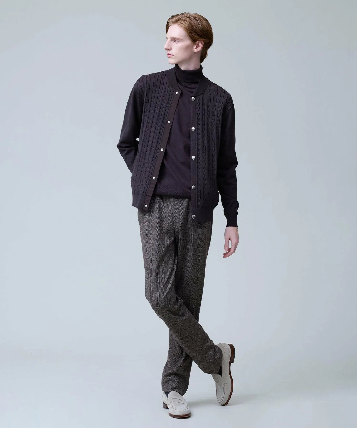 Легкая, удобная и универсальная водолазка. Модель 2025 года. Ее простой, но элегантный вид создает впечатление интеллектуальности. Изготовленная из классического материала J.PRESS, эта водолазка станет надежным вариантом для переходного периода между сезонами. Изготовленная из высокоэластичной смеси вискозы и полиэстера, она обеспечивает ощущение прохлады и свежести, а также оптимальную плотность, создавая красивый внешний вид. Материал прост в уходе: его можно стирать вручную, он сохраняет форму и не мнется. Идеально подходит для повседневной носки. Эластичность обеспечивает свободу движений. Функциональность: Эластичность. Ручная стирка. Силуэт/Размер: Стандартный крой для обтекаемого вида и свободы движений. Достаточно удобна для ношения в качестве нижнего слоя и не будет мешать многослойной одежде. Универсальный, сбалансированный дизайн, подходящий всем. Водолазка имеет отложной воротник для изысканного, сдержанного образа. Основная часть выполнена из гладкого трикотажа, подчеркивающего текстуру материала. Ребристая отделка на рукавах и подоле имеет едва заметные вариации вязки, что придает простому дизайну изысканный вид. Сопутствующие/Похожие товары: Носите его элегантно под жакетом. Наденьте его под рубашку для создания утонченного многослойного образа. От ранней осени до глубокой зимы этот универсальный топ позволяет легко регулировать температуру. Мы также рекомендуем носить его с жакетом-блузоном из того же материала. Комментарий дизайнера: Эта водолазка не только универсальна, но и выглядит элегантно. Привлекательность этого материала заключается в его легкости и комфорте, а также непринужденности. Едва заметные вариации вязки и ребристости гарантируют стильный вид как в качестве нижнего слоя, так и в качестве самостоятельного элемента. Это, безусловно, станет вашим первым выбором, когда температура непредсказуема. *Изображения модели и разложенного изделия являются образцами. Фактический продукт может немного отличаться по цвету, характеристикам, отделке, размеру и материалу. Пожалуйста, обратитесь к изображению на вешалке для получения информации о цвете и деталях. *Из-за условий освещения фактический продукт может выглядеть немного ярче, чем он есть на самом деле. Также, в зависимости от настроек экрана вашего компьютера, цвет фактического товара может немного отличаться от изображения. Благодарим за понимание.