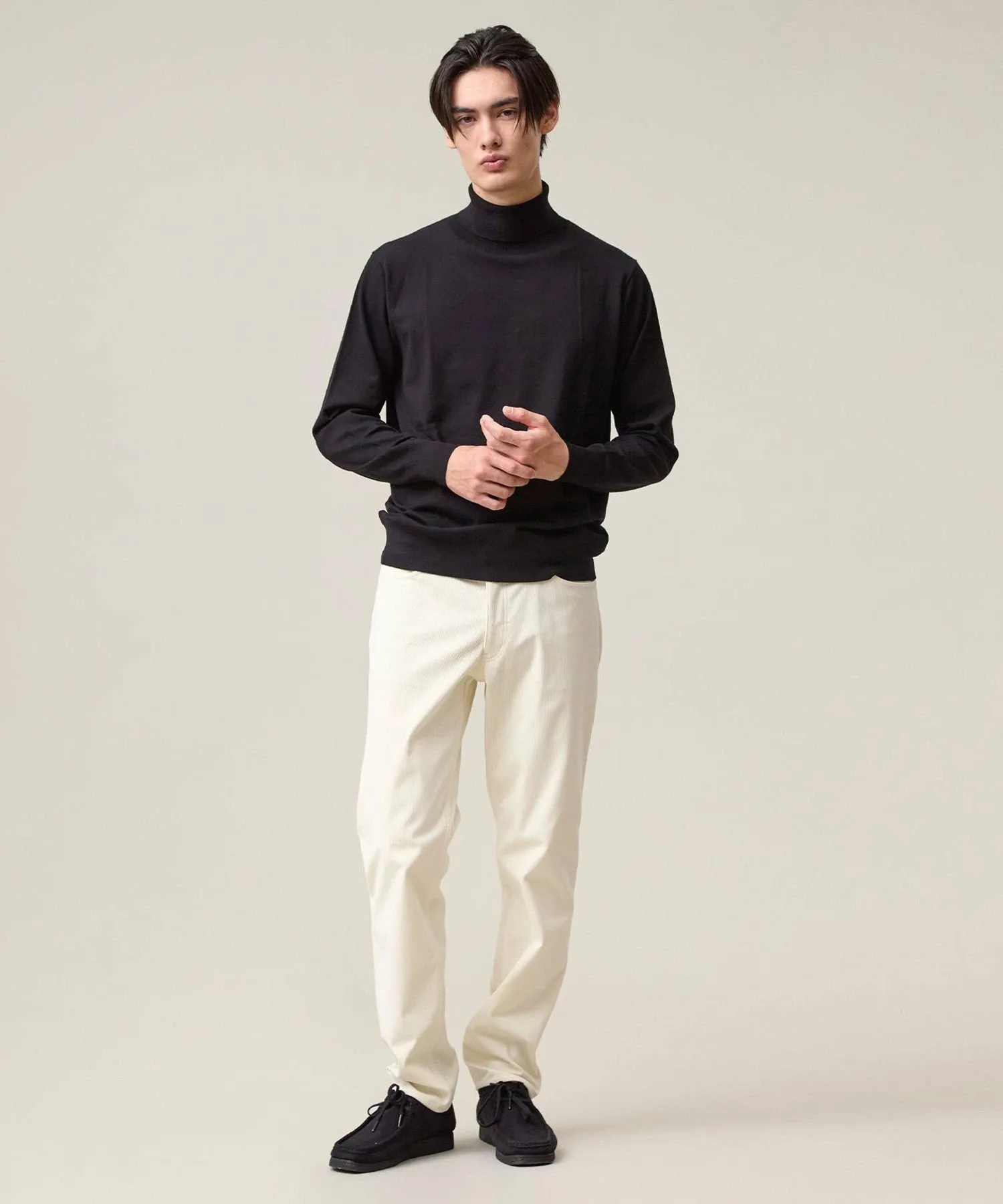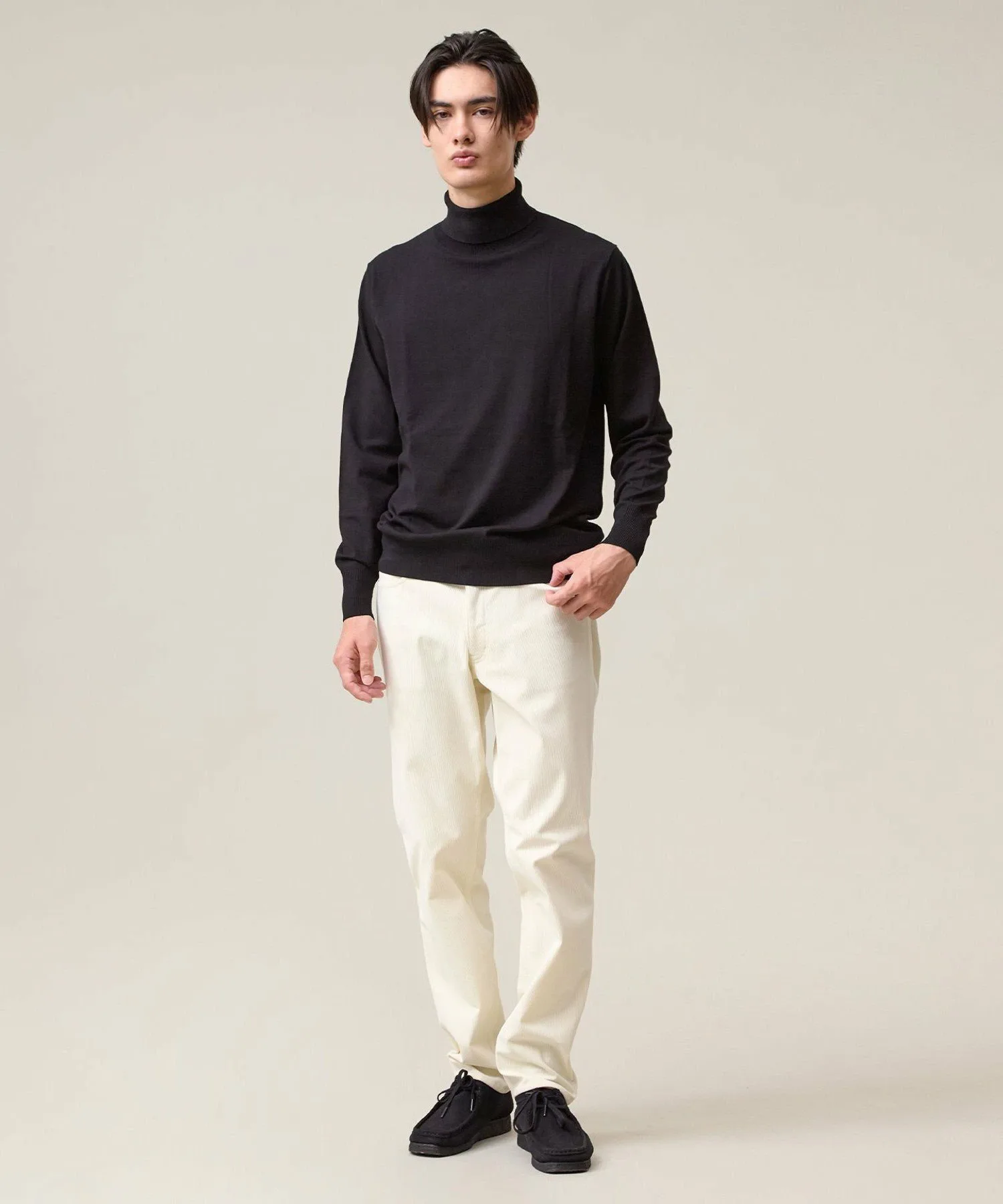 Легкая, удобная и универсальная водолазка. Модель 2025 года. Ее простой, но элегантный вид создает впечатление интеллектуальности. Изготовленная из классического материала J.PRESS, эта водолазка станет надежным вариантом для переходного периода между сезонами. Изготовленная из высокоэластичной смеси вискозы и полиэстера, она обеспечивает ощущение прохлады и свежести, а также оптимальную плотность, создавая красивый внешний вид. Материал прост в уходе: его можно стирать вручную, он сохраняет форму и не мнется. Идеально подходит для повседневной носки. Эластичность обеспечивает свободу движений. Функциональность: Эластичность. Ручная стирка. Силуэт/Размер: Стандартный крой для обтекаемого вида и свободы движений. Достаточно удобна для ношения в качестве нижнего слоя и не будет мешать многослойной одежде. Универсальный, сбалансированный дизайн, подходящий всем. Водолазка имеет отложной воротник для изысканного, сдержанного образа. Основная часть выполнена из гладкого трикотажа, подчеркивающего текстуру материала. Ребристая отделка на рукавах и подоле имеет едва заметные вариации вязки, что придает простому дизайну изысканный вид. Сопутствующие/Похожие товары: Носите его элегантно под жакетом. Наденьте его под рубашку для создания утонченного многослойного образа. От ранней осени до глубокой зимы этот универсальный топ позволяет легко регулировать температуру. Мы также рекомендуем носить его с жакетом-блузоном из того же материала. Комментарий дизайнера: Эта водолазка не только универсальна, но и выглядит элегантно. Привлекательность этого материала заключается в его легкости и комфорте, а также непринужденности. Едва заметные вариации вязки и ребристости гарантируют стильный вид как в качестве нижнего слоя, так и в качестве самостоятельного элемента. Это, безусловно, станет вашим первым выбором, когда температура непредсказуема. *Изображения модели и разложенного изделия являются образцами. Фактический продукт может немного отличаться по цвету, характеристикам, отделке, размеру и материалу. Пожалуйста, обратитесь к изображению на вешалке для получения информации о цвете и деталях. *Из-за условий освещения фактический продукт может выглядеть немного ярче, чем он есть на самом деле. Также, в зависимости от настроек экрана вашего компьютера, цвет фактического товара может немного отличаться от изображения. Благодарим за понимание.