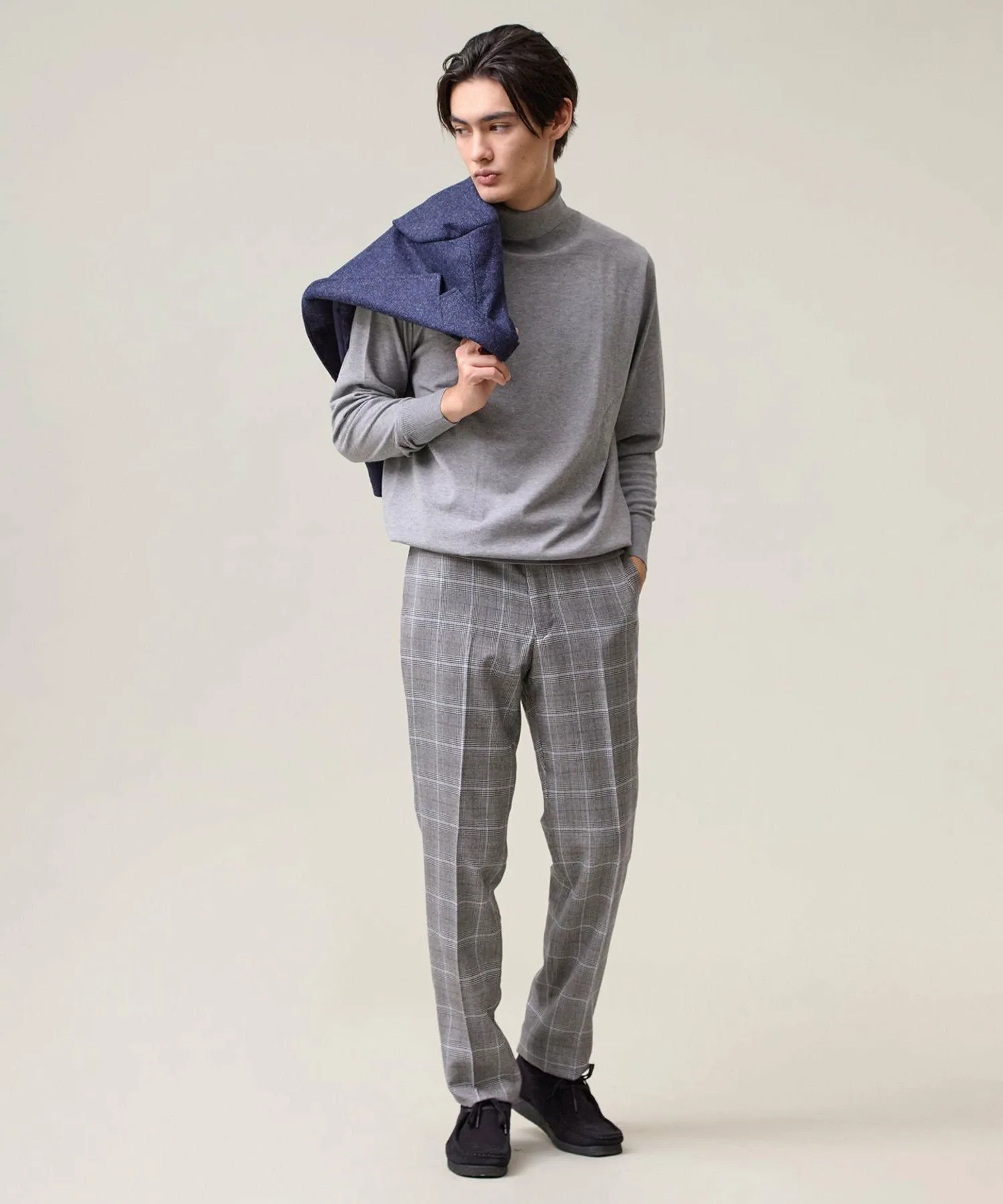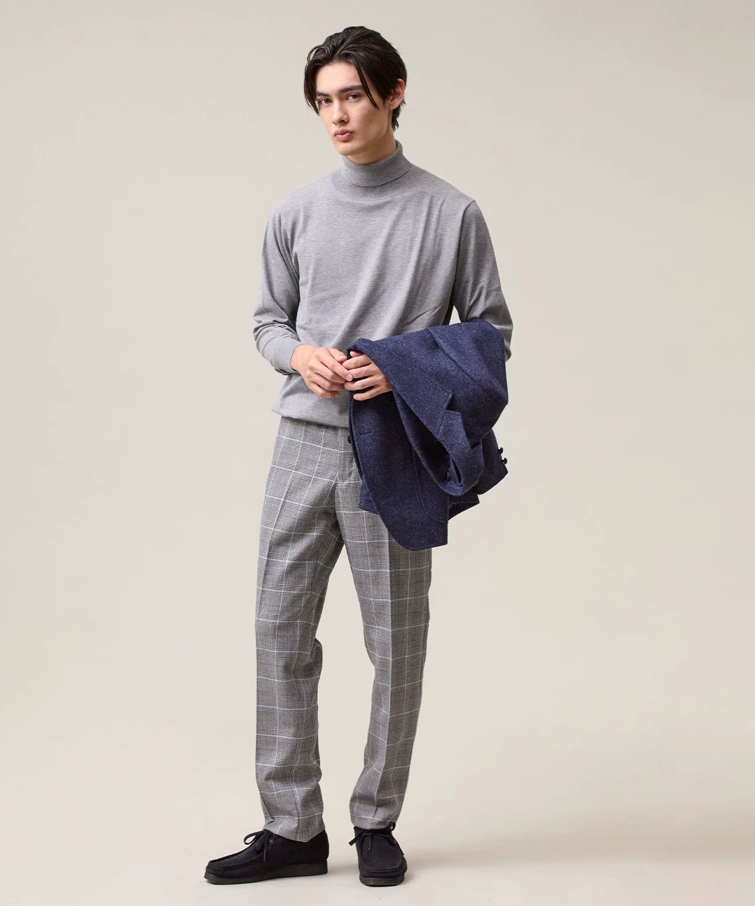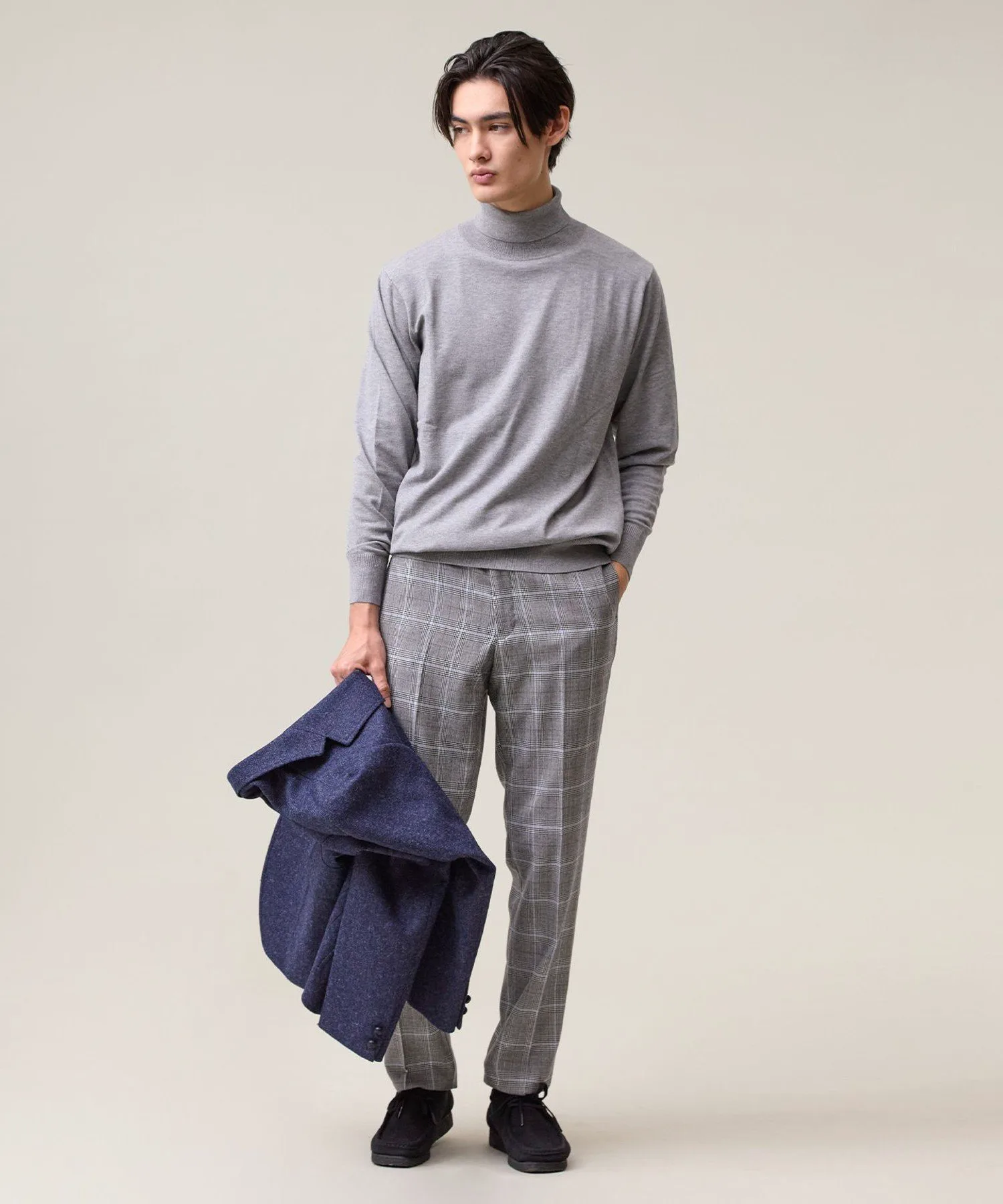 Легкая, удобная и универсальная водолазка. Модель 2025 года. Ее простой, но элегантный вид создает впечатление интеллектуальности. Изготовленная из классического материала J.PRESS, эта водолазка станет надежным вариантом для переходного периода между сезонами. Изготовленная из высокоэластичной смеси вискозы и полиэстера, она обеспечивает ощущение прохлады и свежести, а также оптимальную плотность, создавая красивый внешний вид. Материал прост в уходе: его можно стирать вручную, он сохраняет форму и не мнется. Идеально подходит для повседневной носки. Эластичность обеспечивает свободу движений. Функциональность: Эластичность. Ручная стирка. Силуэт/Размер: Стандартный крой для обтекаемого вида и свободы движений. Достаточно удобна для ношения в качестве нижнего слоя и не будет мешать многослойной одежде. Универсальный, сбалансированный дизайн, подходящий всем. Водолазка имеет отложной воротник для изысканного, сдержанного образа. Основная часть выполнена из гладкого трикотажа, подчеркивающего текстуру материала. Ребристая отделка на рукавах и подоле имеет едва заметные вариации вязки, что придает простому дизайну изысканный вид. Сопутствующие/Похожие товары: Носите его элегантно под жакетом. Наденьте его под рубашку для создания утонченного многослойного образа. От ранней осени до глубокой зимы этот универсальный топ позволяет легко регулировать температуру. Мы также рекомендуем носить его с жакетом-блузоном из того же материала. Комментарий дизайнера: Эта водолазка не только универсальна, но и выглядит элегантно. Привлекательность этого материала заключается в его легкости и комфорте, а также непринужденности. Едва заметные вариации вязки и ребристости гарантируют стильный вид как в качестве нижнего слоя, так и в качестве самостоятельного элемента. Это, безусловно, станет вашим первым выбором, когда температура непредсказуема. *Изображения модели и разложенного изделия являются образцами. Фактический продукт может немного отличаться по цвету, характеристикам, отделке, размеру и материалу. Пожалуйста, обратитесь к изображению на вешалке для получения информации о цвете и деталях. *Из-за условий освещения фактический продукт может выглядеть немного ярче, чем он есть на самом деле. Также, в зависимости от настроек экрана вашего компьютера, цвет фактического товара может немного отличаться от изображения. Благодарим за понимание.