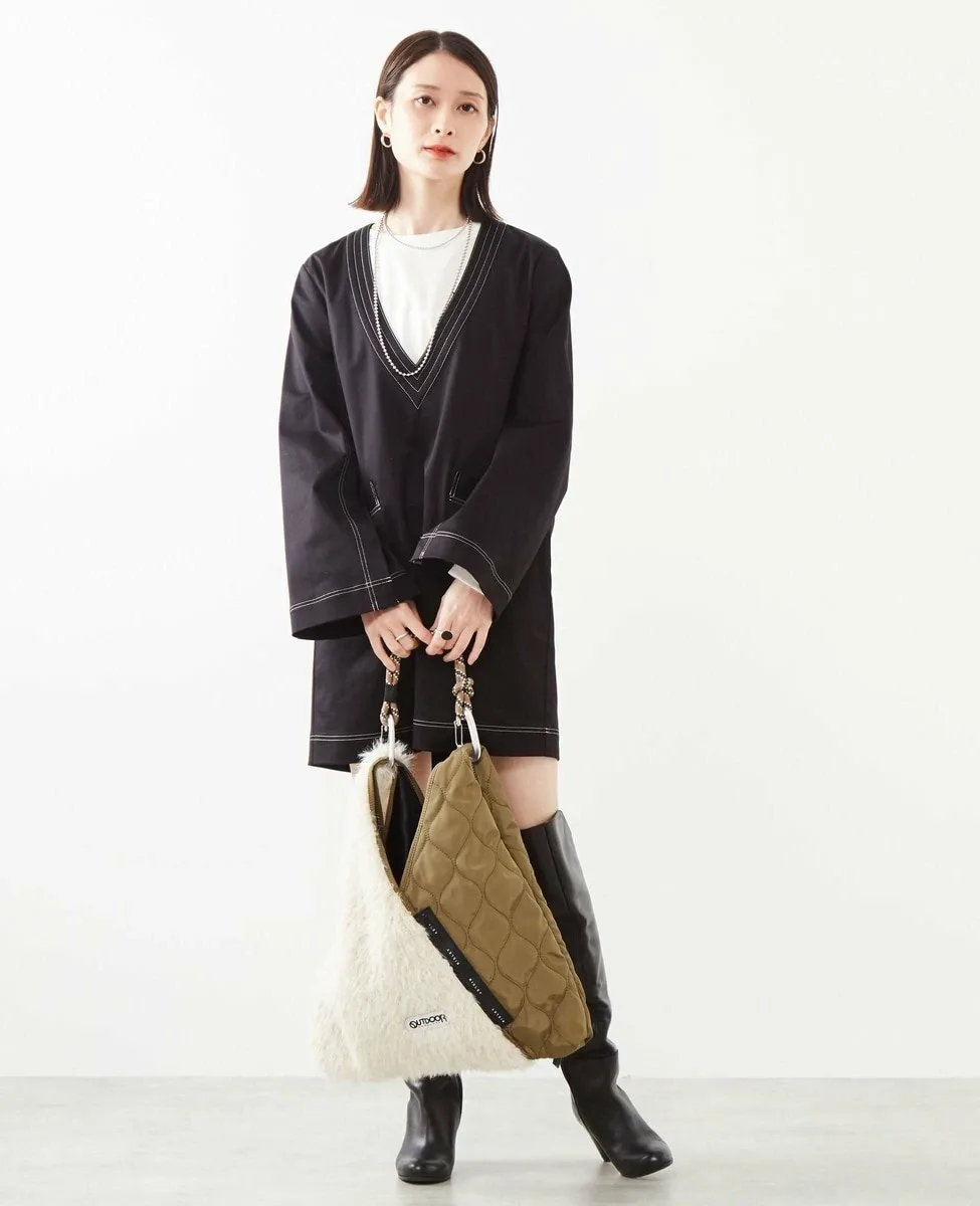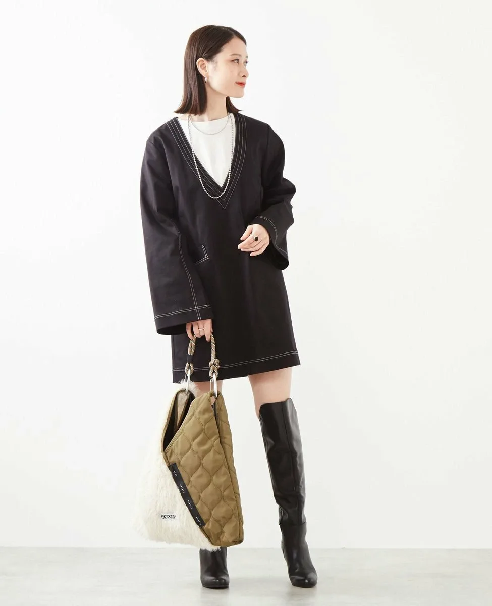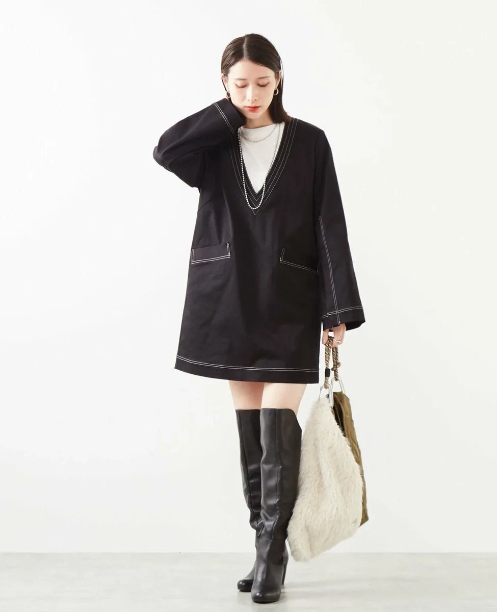 Это платье имеет глубокий V-образный вырез, позволяющий надеть под него нижний слой для создания интересного образа.
