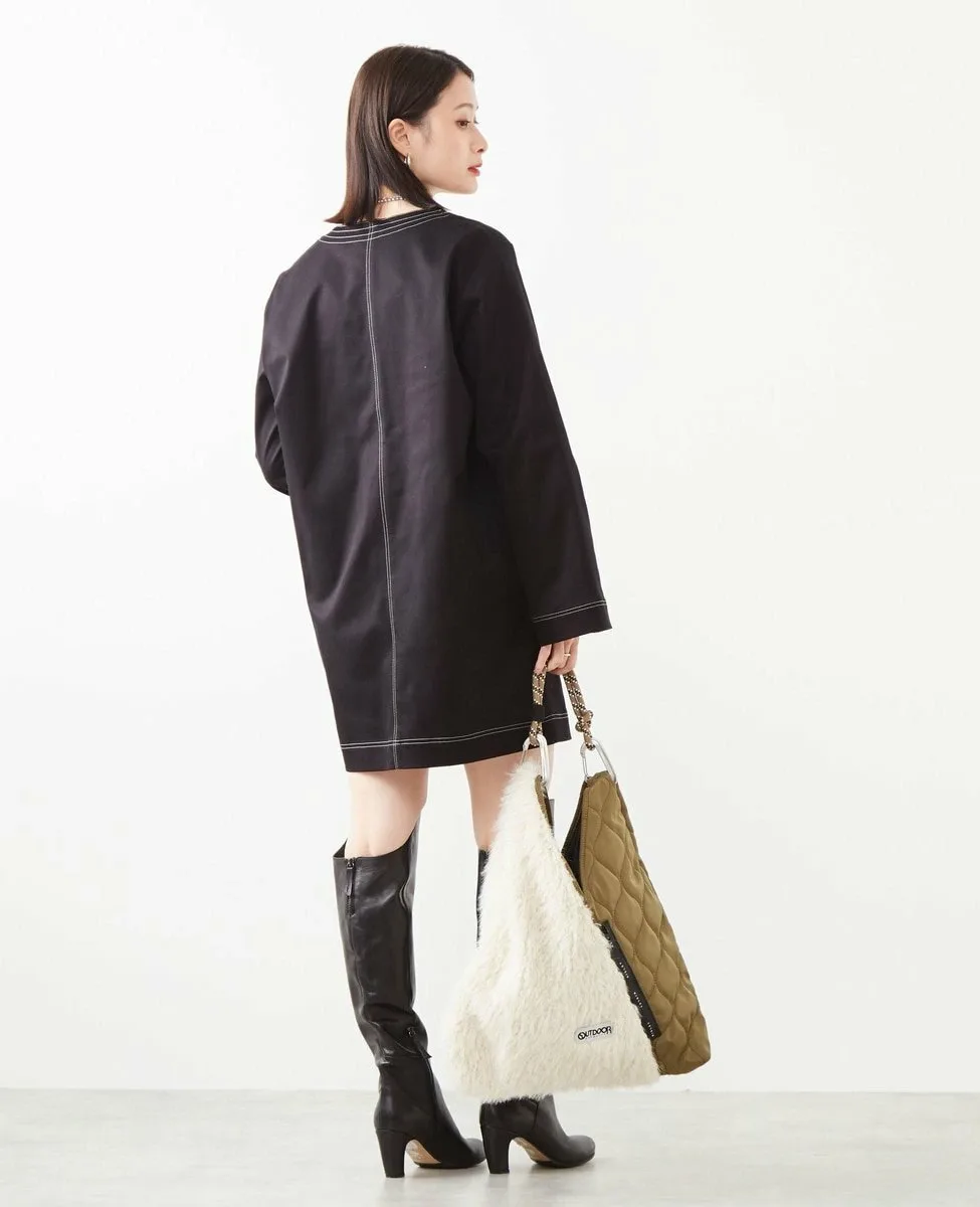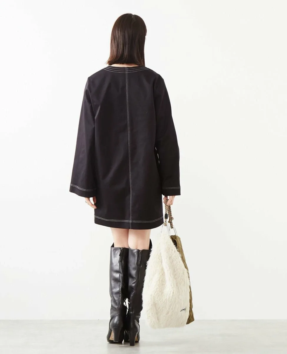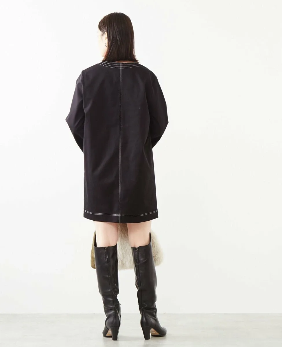 Это платье имеет глубокий V-образный вырез, позволяющий надеть под него нижний слой для создания интересного образа.