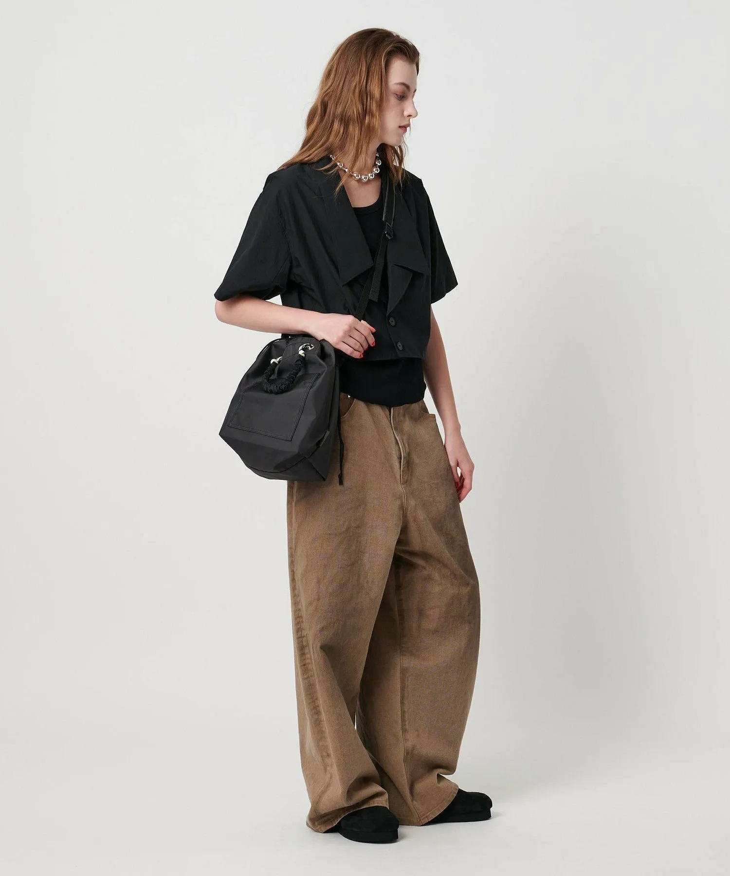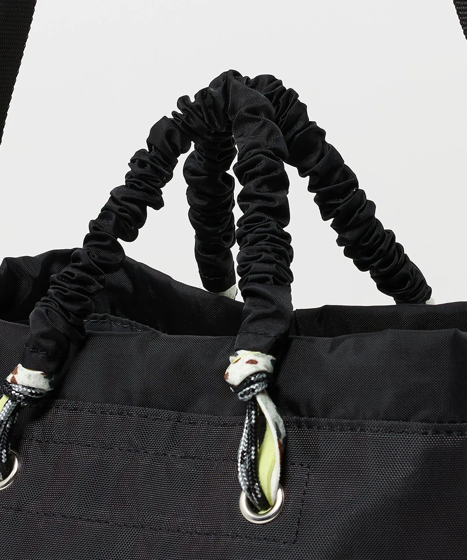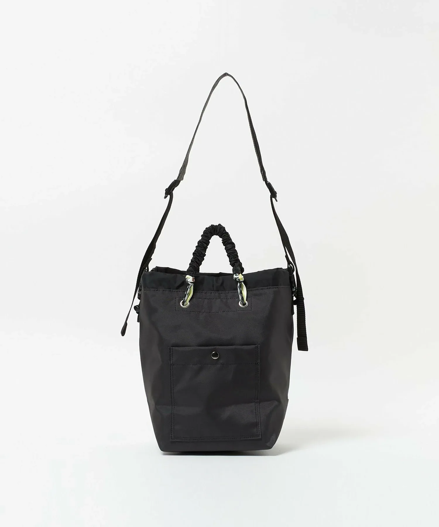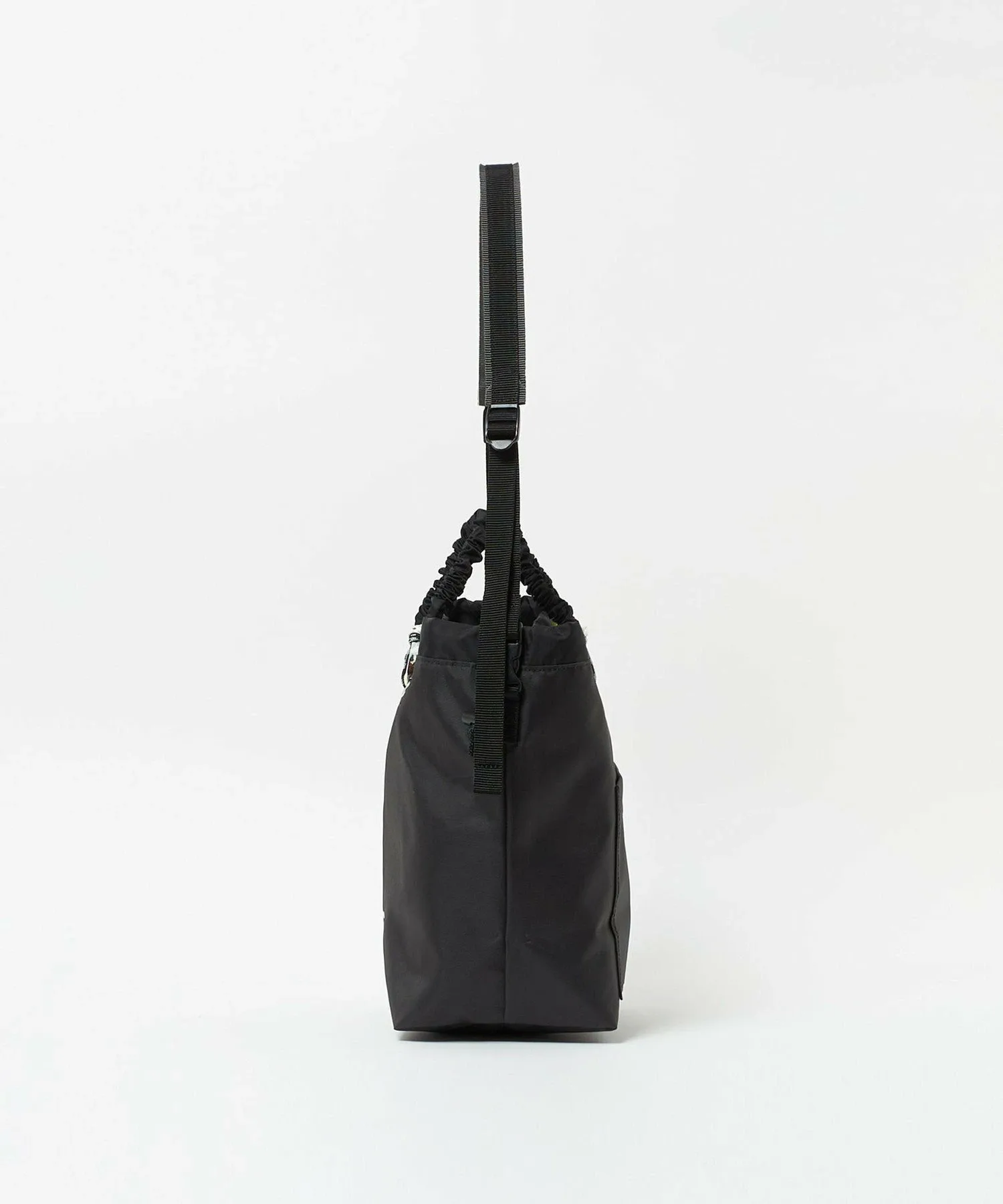 Эта компактная сумка-тоут предлагает вместительное отделение. Входящий в комплект ремешок можно вставить в боковую пряжку, чтобы использовать сумку как наплечную. Шнурок позволяет сузить отверстие и спрятать содержимое, что делает ее удобным дополнением.