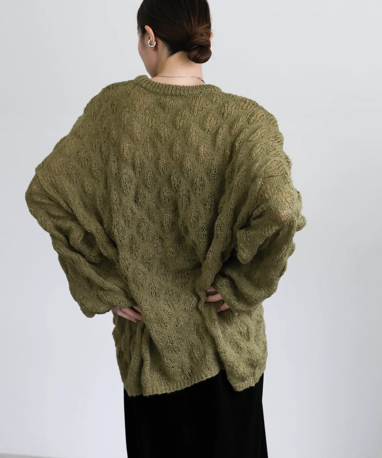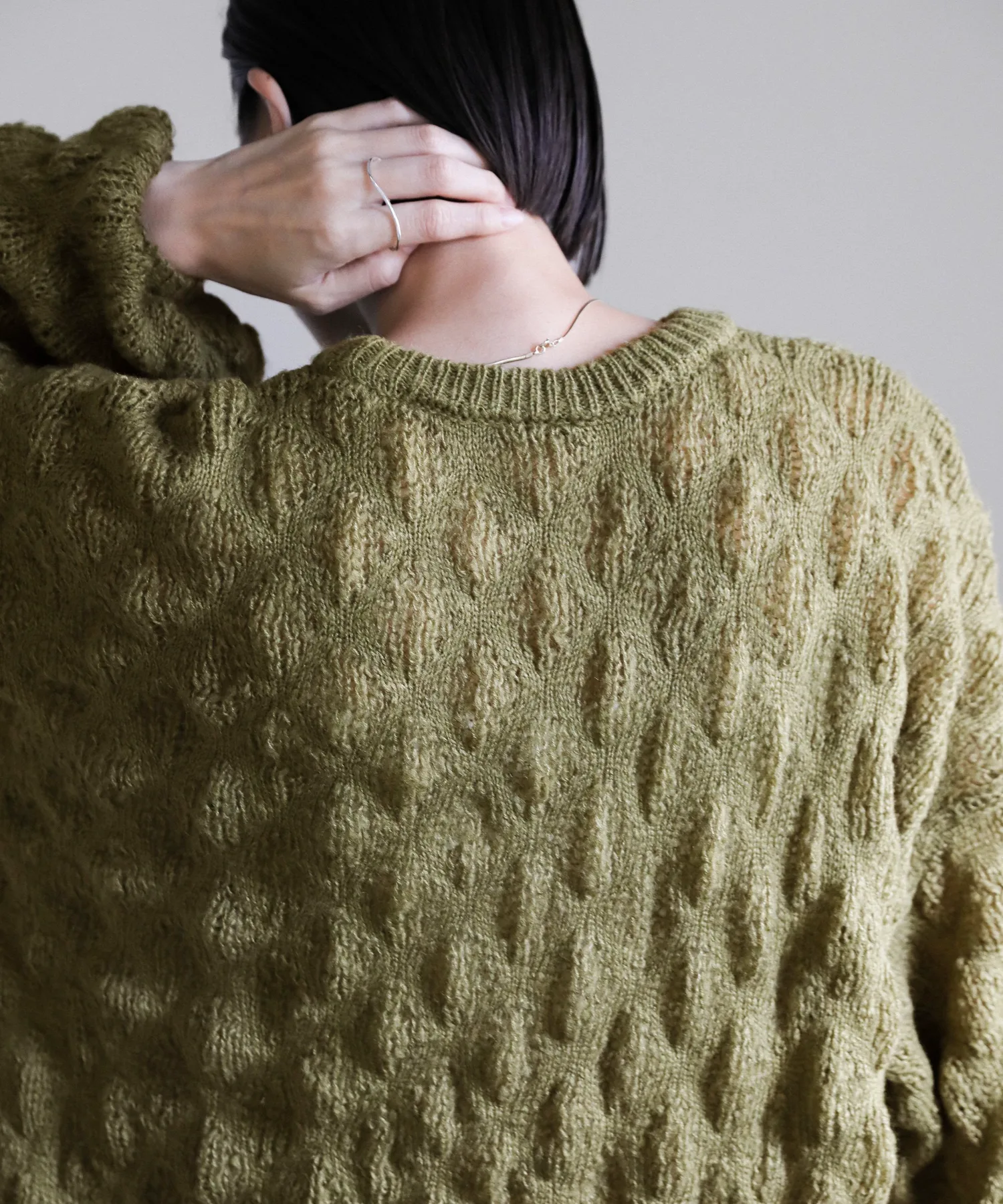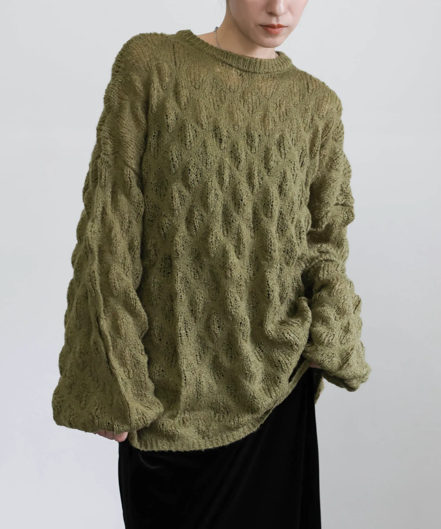Легкая, похожая на мохер текстура и закругленные рукава создают женственный образ.