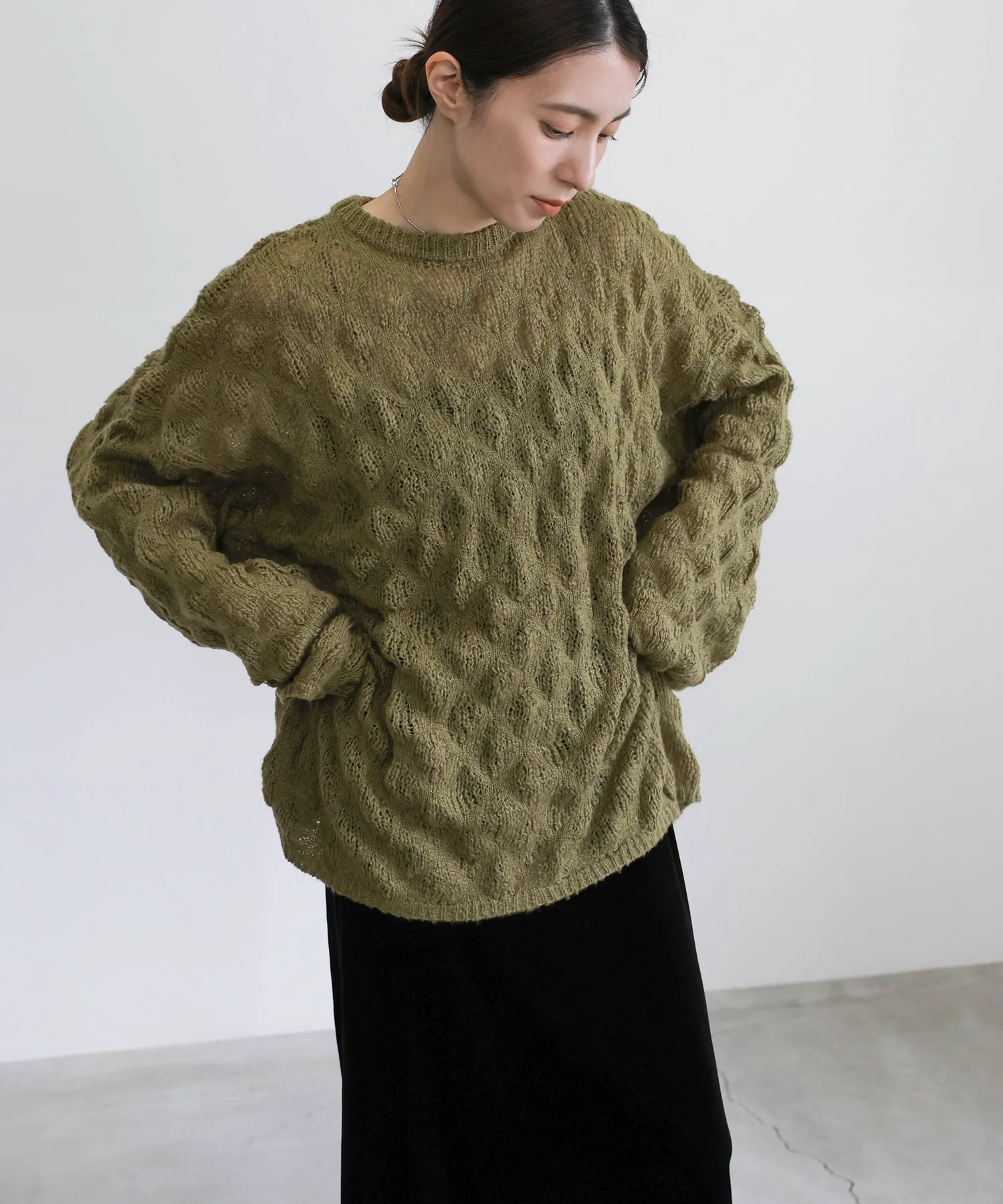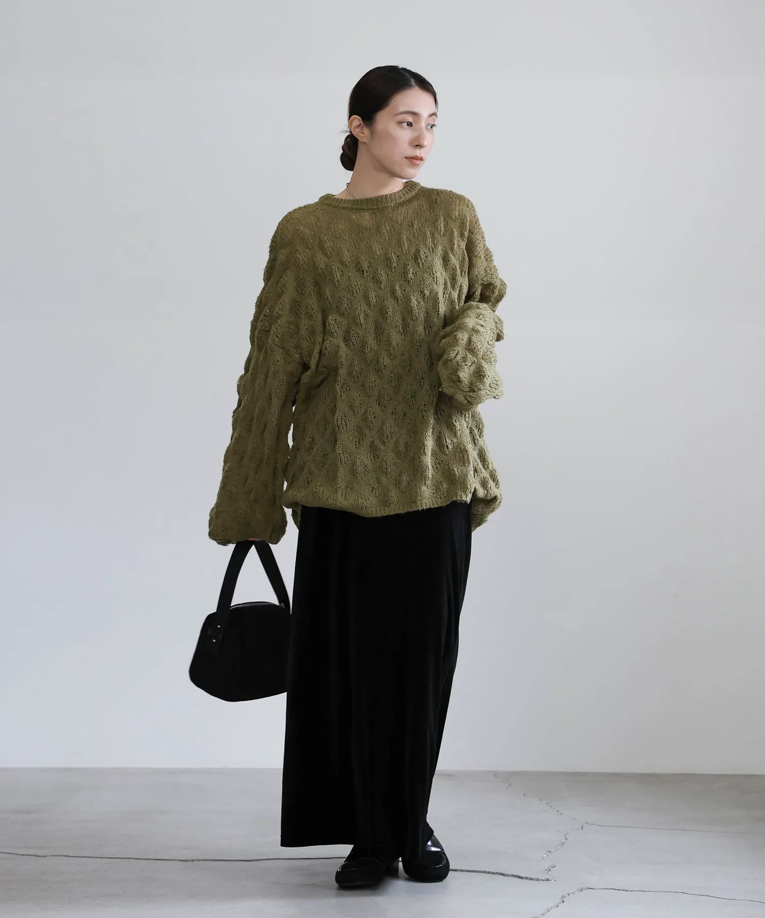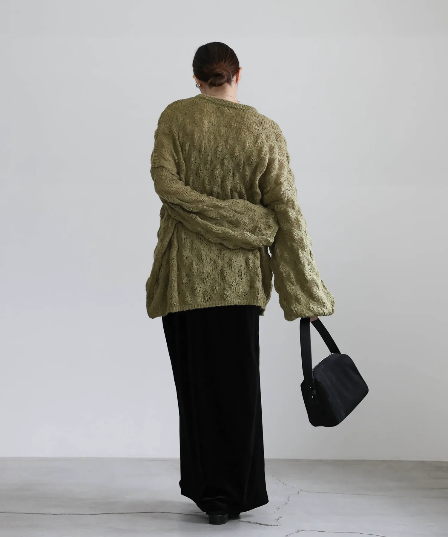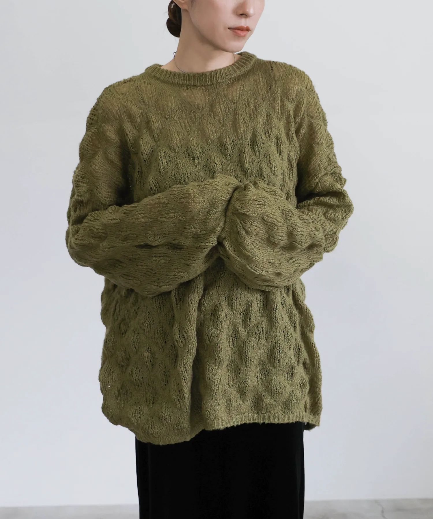 Легкая, похожая на мохер текстура и закругленные рукава создают женственный образ.