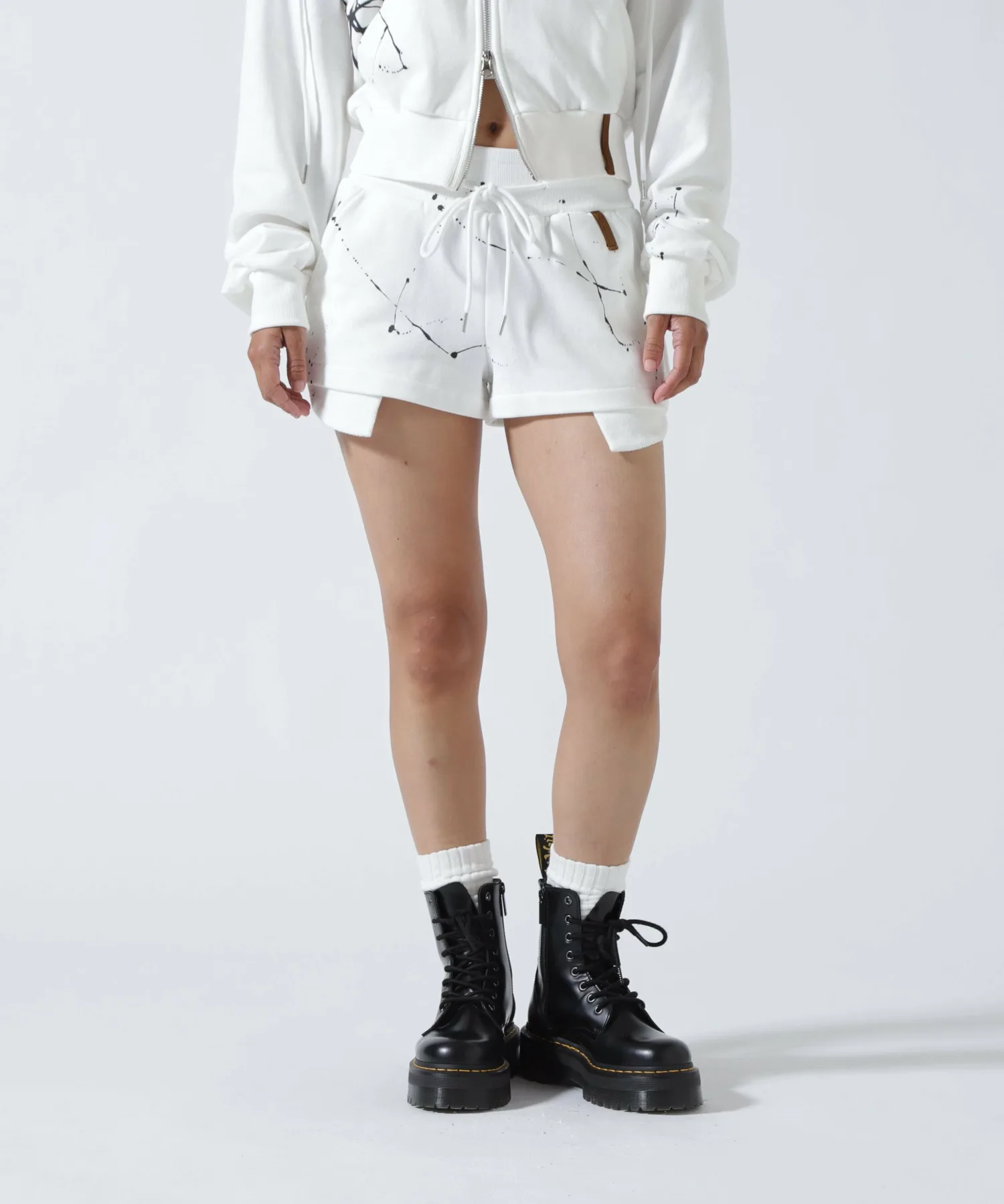 Эти короткие спортивные штаны украшены ярким рисунком в виде брызг краски. Изготовленные из мягкого флиса, они идеально подходят для повседневного образа. Милый мини-дизайн делает их удобными как для уличного стиля, так и для спортивного. Сочетайте их с худи Paint Hoodie Zip Hoodie (787-6131707) из той же серии для создания изысканного образа. Затягивающийся шнурок на поясе позволяет легко регулировать размер, и они достаточно удобны для повседневной носки. Примечание: Из-за рисунка в виде брызг краски возможны небольшие отклонения в размерах. [MITSUKI] Название бренда: В Японии, где названия часто основаны на иностранных словах, мы выбрали уникальное японское название, без всякой претенциозности. Это то, что есть у каждого. Концепция бренда: В современном мире общественные телефоны существуют как произведения искусства. Это ощущение и несоответствие воплощены в самом названии. Как и закусочная, это одновременно и повседневно, и не от мира сего. Сочетание этого бренда с модой создает неописуемую привлекательность.