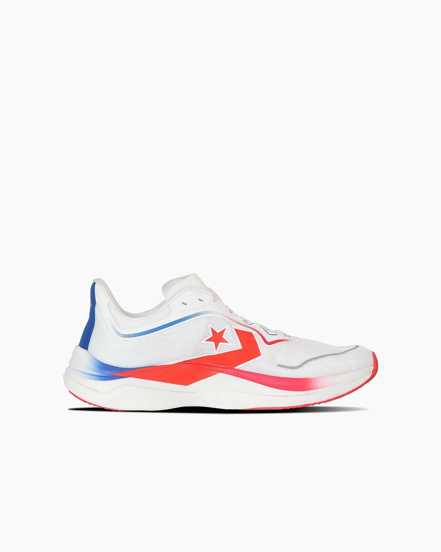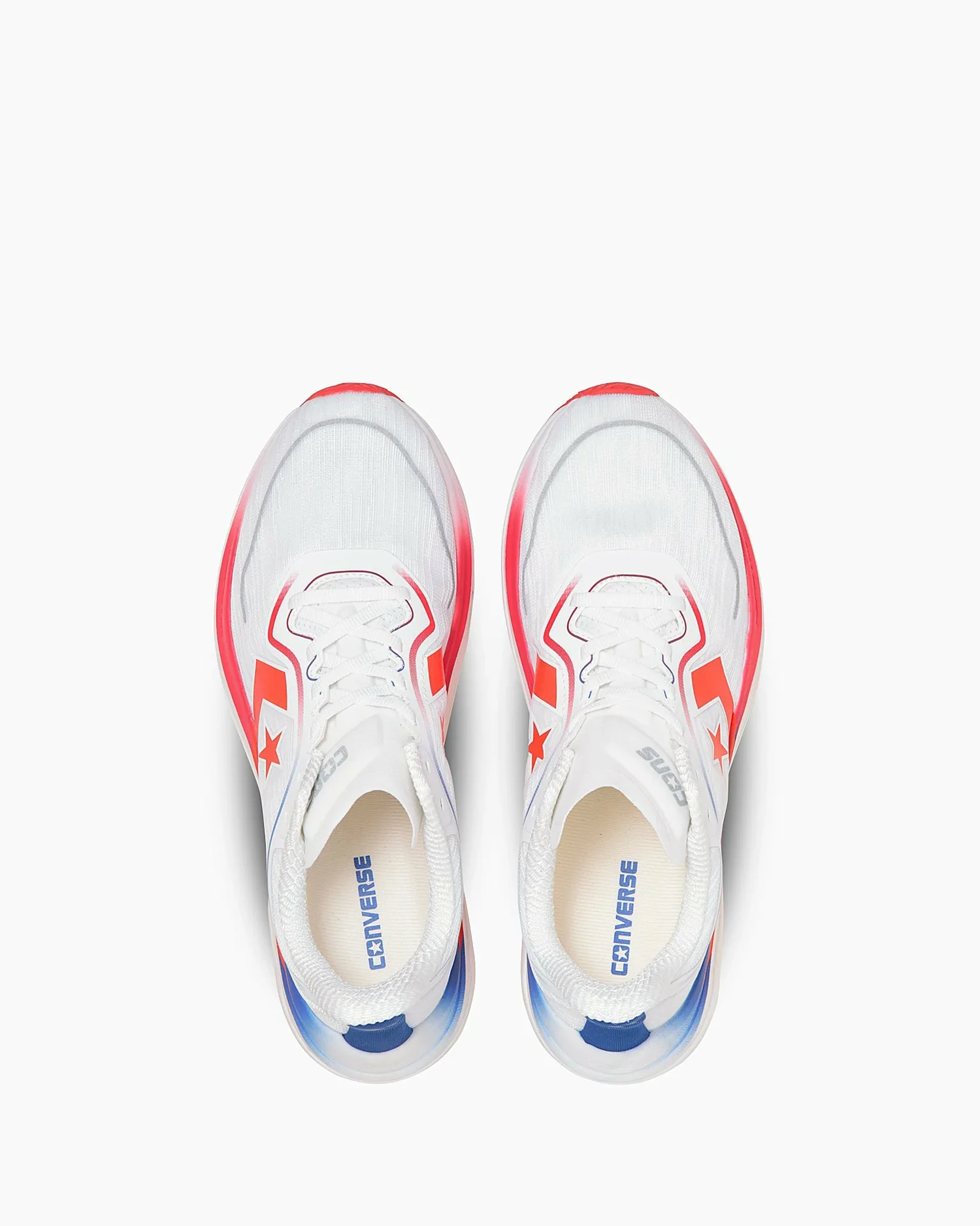 Эта модель от Converse, специализирующейся на беге, идеально подходит для бега. Верх выполнен из легкой, эластичной и дышащей сетки. Подошва оснащена технологией REACT ATS и карбоновой пластиной Guideding Carbon Plate, обеспечивающими превосходную амортизацию и устойчивость голеностопного сустава во время бега, поддерживая правильную технику бега. Толщина подошвы составляет 40 мм, что соответствует требованиям для шоссейных забегов. Стелька выполнена из пенополиуретана с открытыми порами для отличной воздухопроницаемости и амортизации. Шевронные линии по бокам продолжаются до подошвы, придавая стильный дизайн, а светоотражающий принт на передней части улучшает видимость в темное время суток, делая эти кроссовки идеальными для ночных пробежек. Доступны в пяти цветах: белый/красный/синий, черный/черный, белый/белый, розовый/белый и салатовый/белый. [24HD][CHEVRON&STAR]