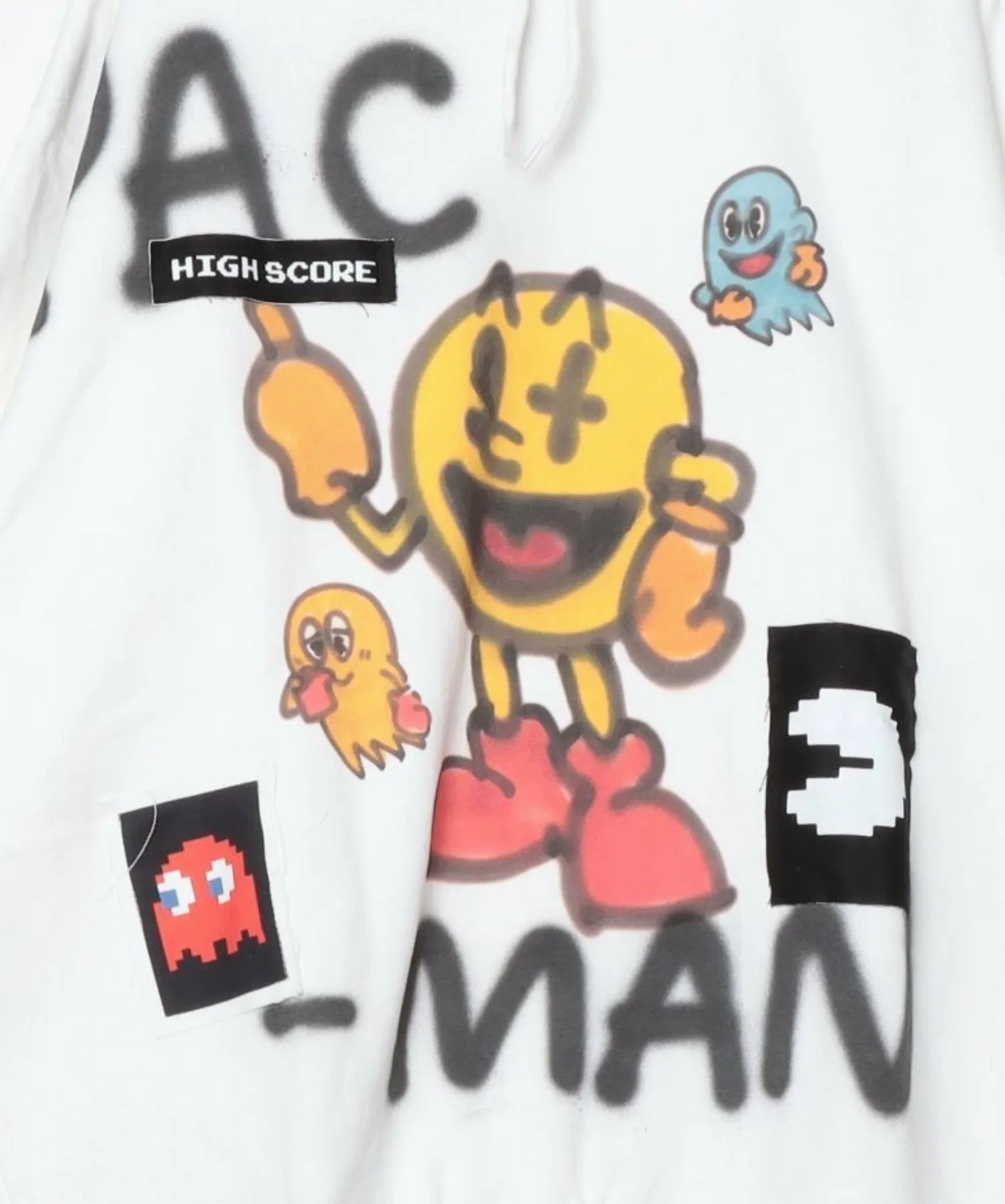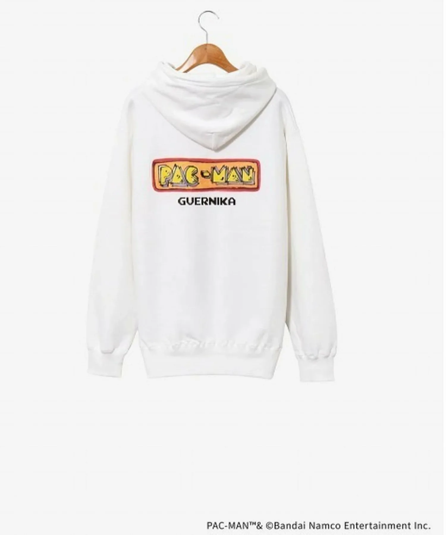 Этот особый коллаборационный предмет объединяет Pac-Man, всемирно любимую аркадную игру, дебютировавшую в 1980 году и ставшую огромным хитом, и бренд одежды guernika, разработанный современным художником Синъитиро Инуи. Pac-Man, известный своим культовым желтым круглым телом, изображен на классической худи guernika с рисунком. Иллюстрация в центре напечатана, а на каждом изделии нанесено сообщение, написанное вручную аэрозольной краской. На спине расположен новый логотип Pac-Man, разработанный специально для этой коллаборации. [Примечания] Поскольку худи расписано вручную, краска может немного выцвести при многократном ношении и стирке. Избегайте трения окрашенных участков. Рекомендуется ручная стирка. (Не используйте стиральную машину.) Стирайте отдельно от других вещей, так как возможно появление пятен.