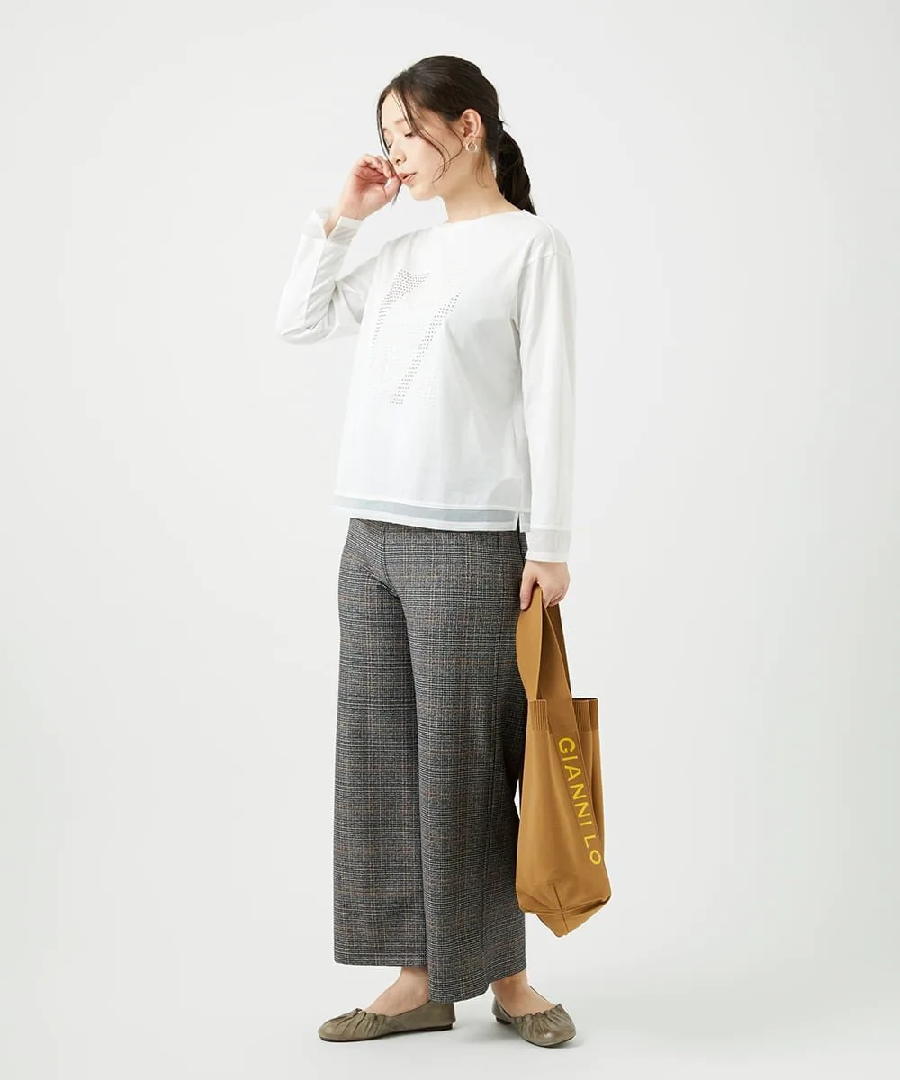 Базовая блузка с круглым вырезом. Основная часть украшена стеклянным бисером и пайетками в той же цветовой гамме, а вышитый логотип "GIANNILOGIUDICE" добавляет нотку элегантности. Воротник, манжеты и нижний край выполнены из прозрачного полиэстера. Сочетание различных материалов придает изделию изысканный и элегантный вид, не делая его слишком повседневным.
