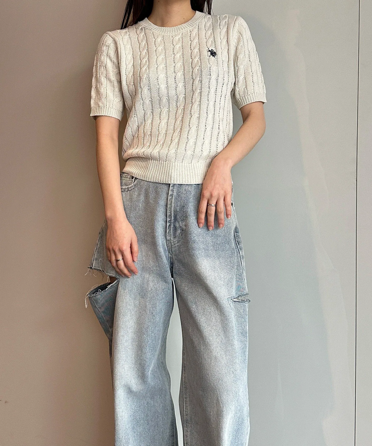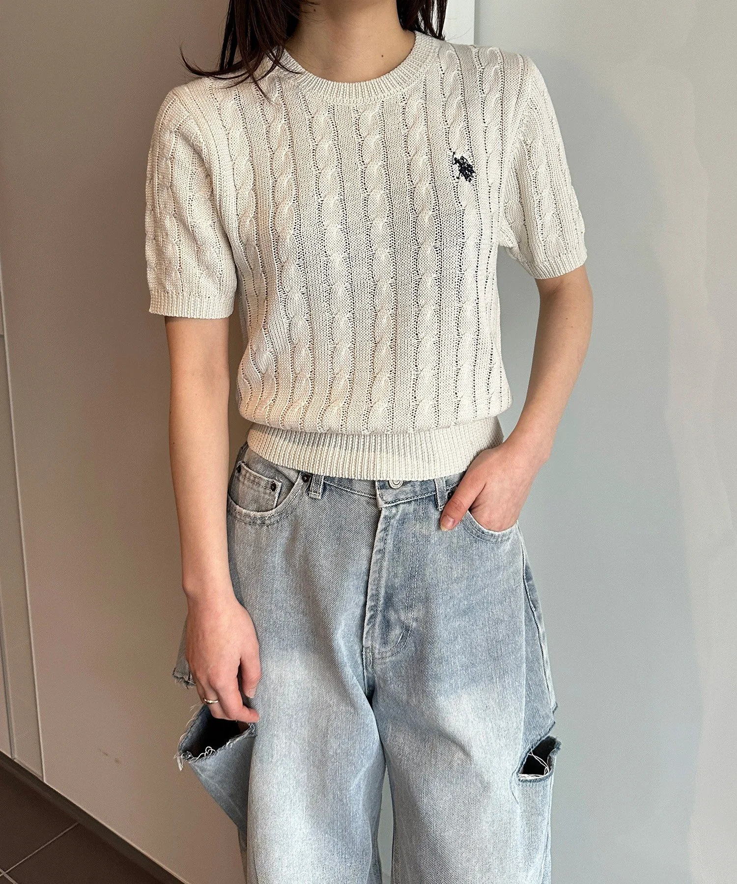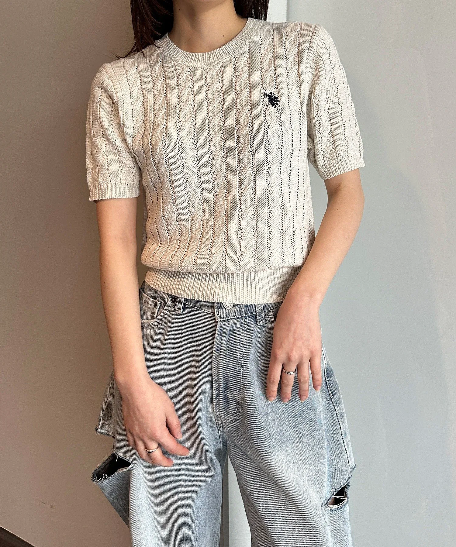 Короткорукавный вязаный свитер крупной вязки, который обязательно станет неотъемлемой частью вашего гардероба