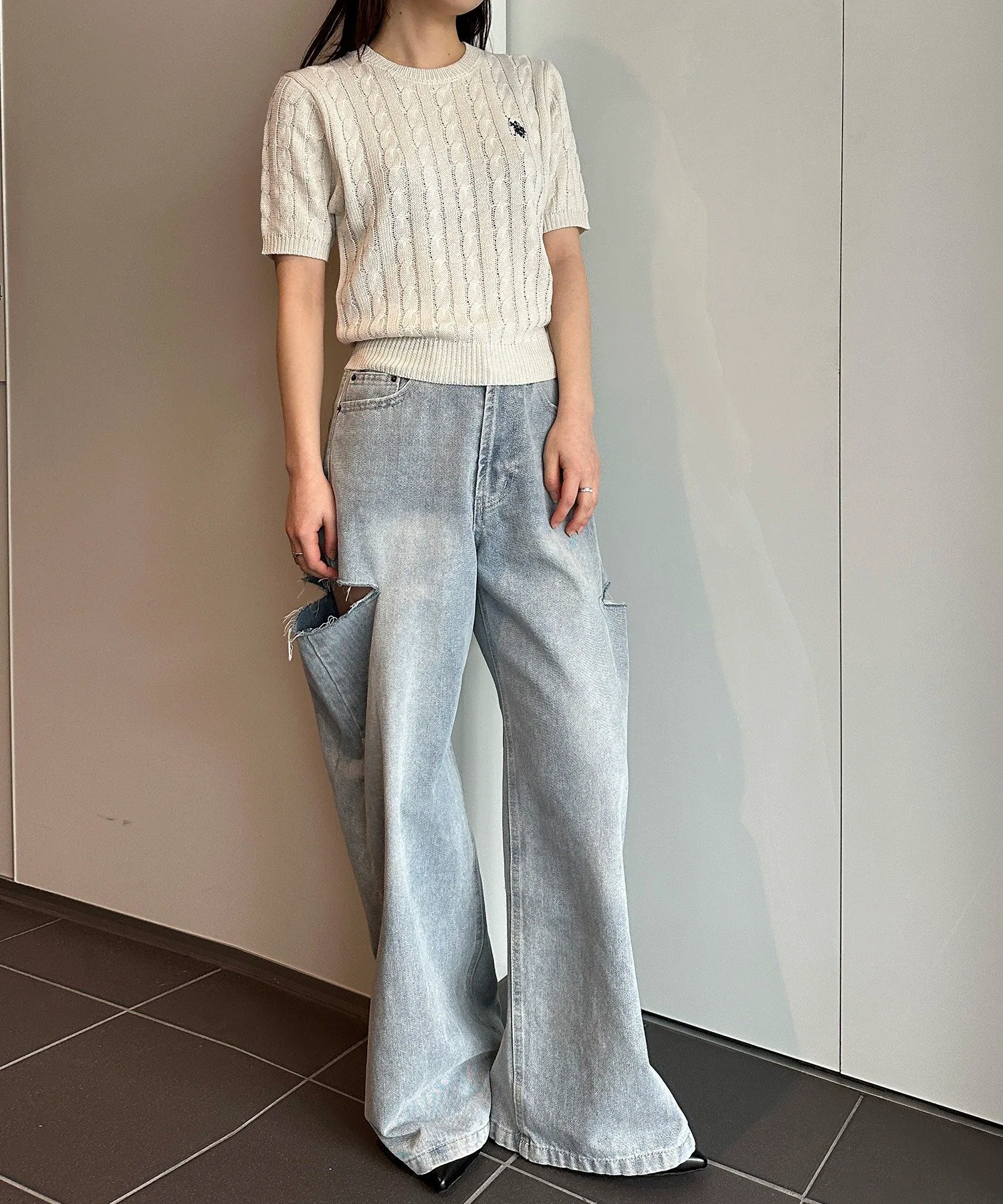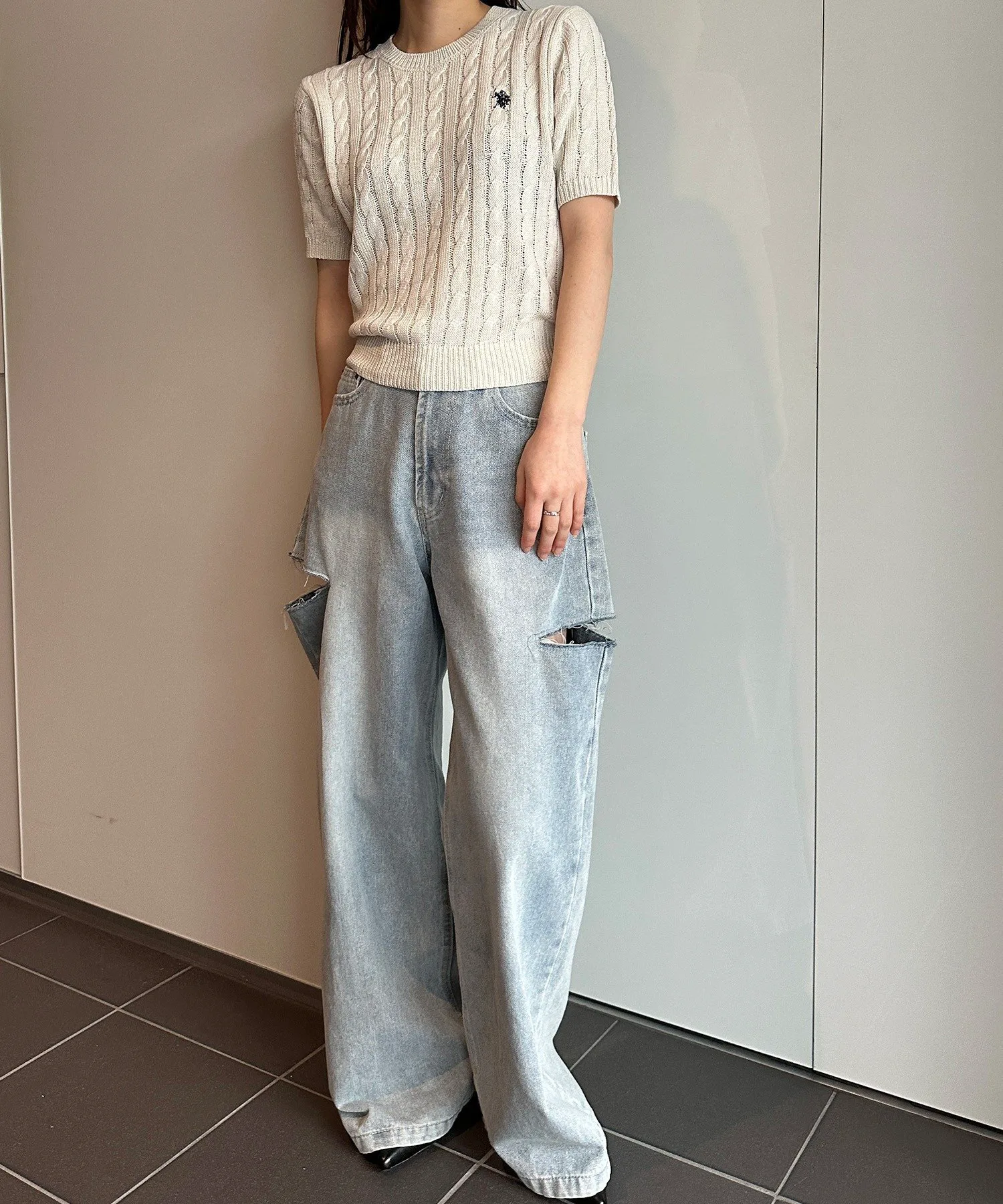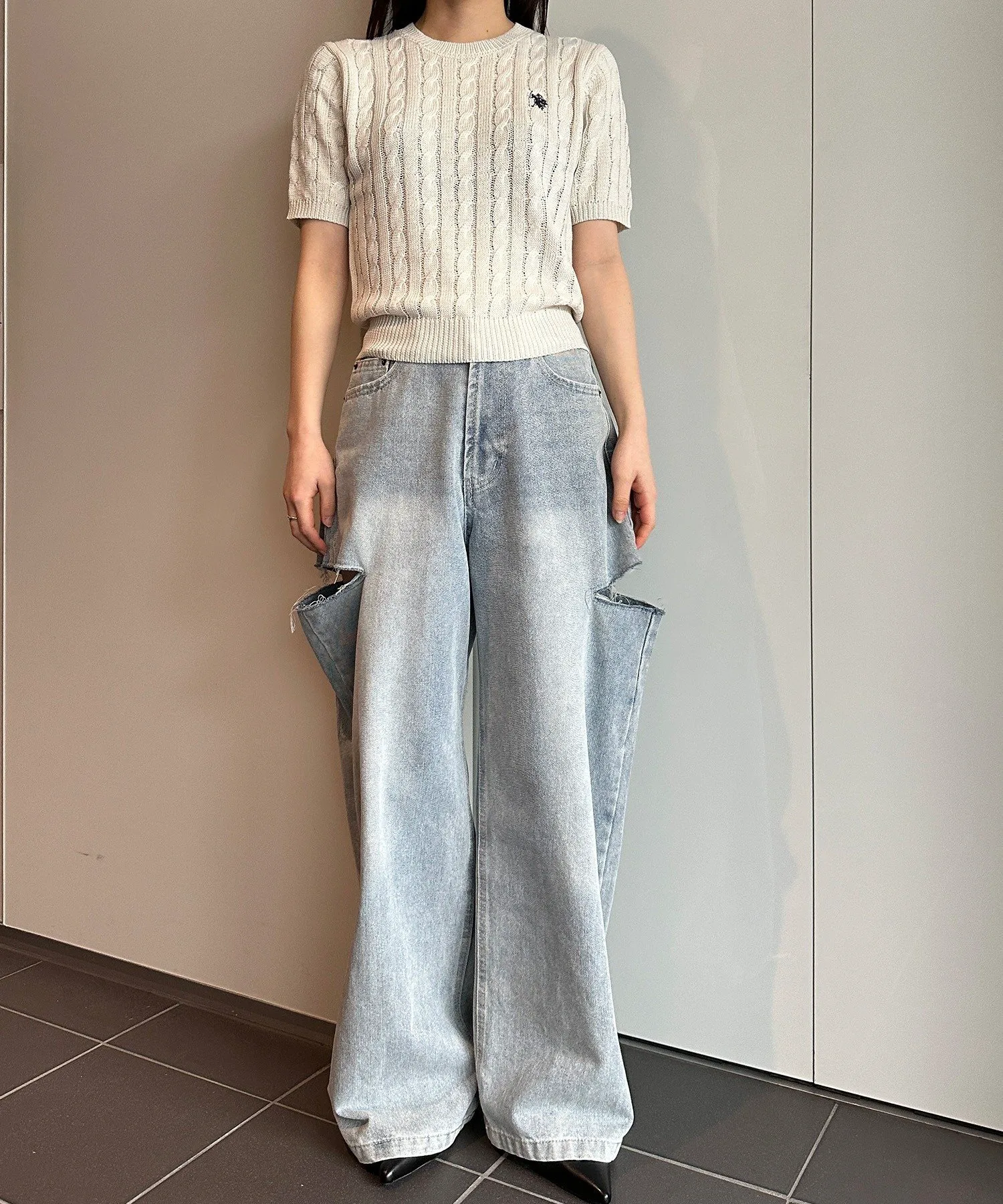 Короткорукавный вязаный свитер крупной вязки, который обязательно станет неотъемлемой частью вашего гардероба