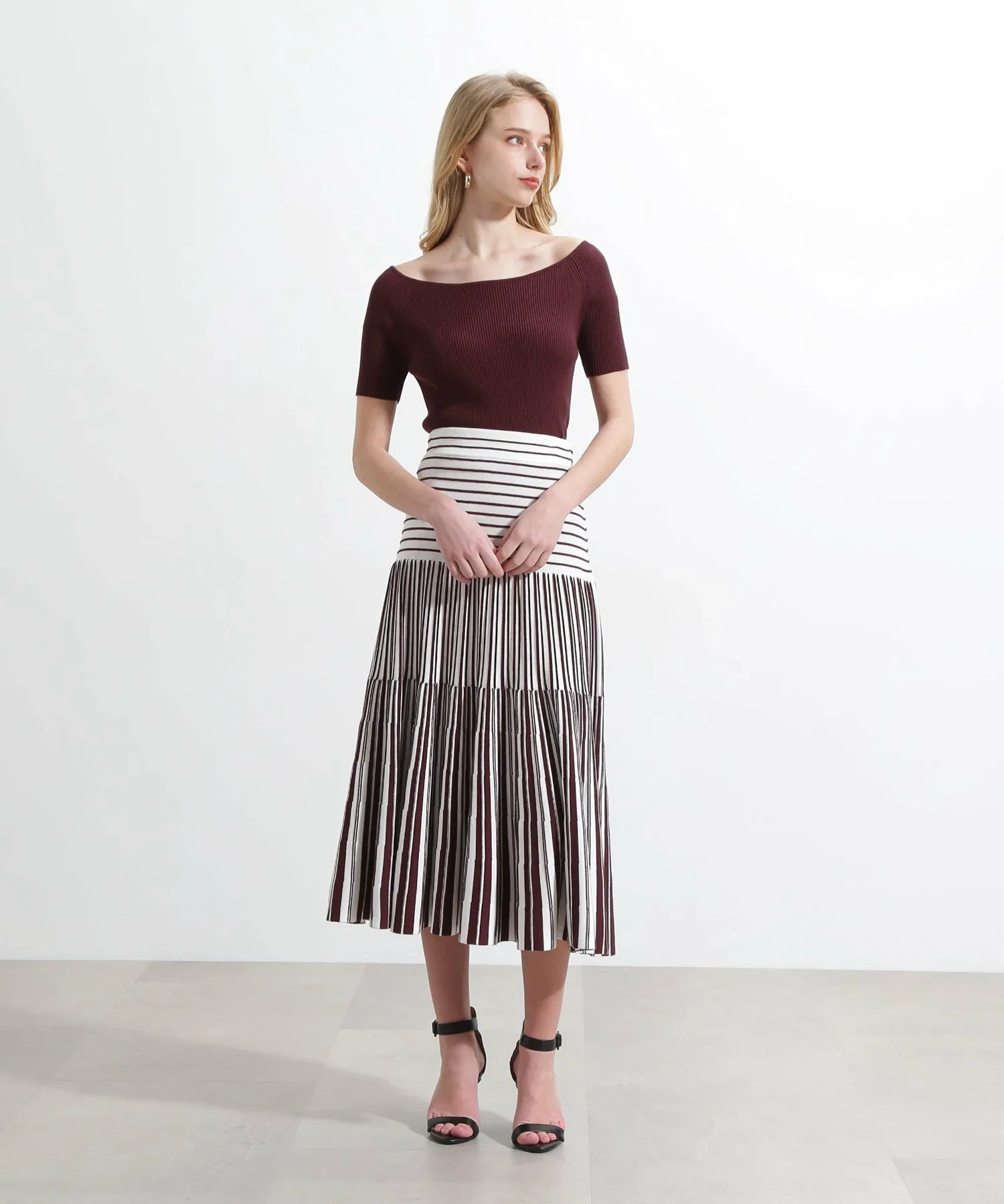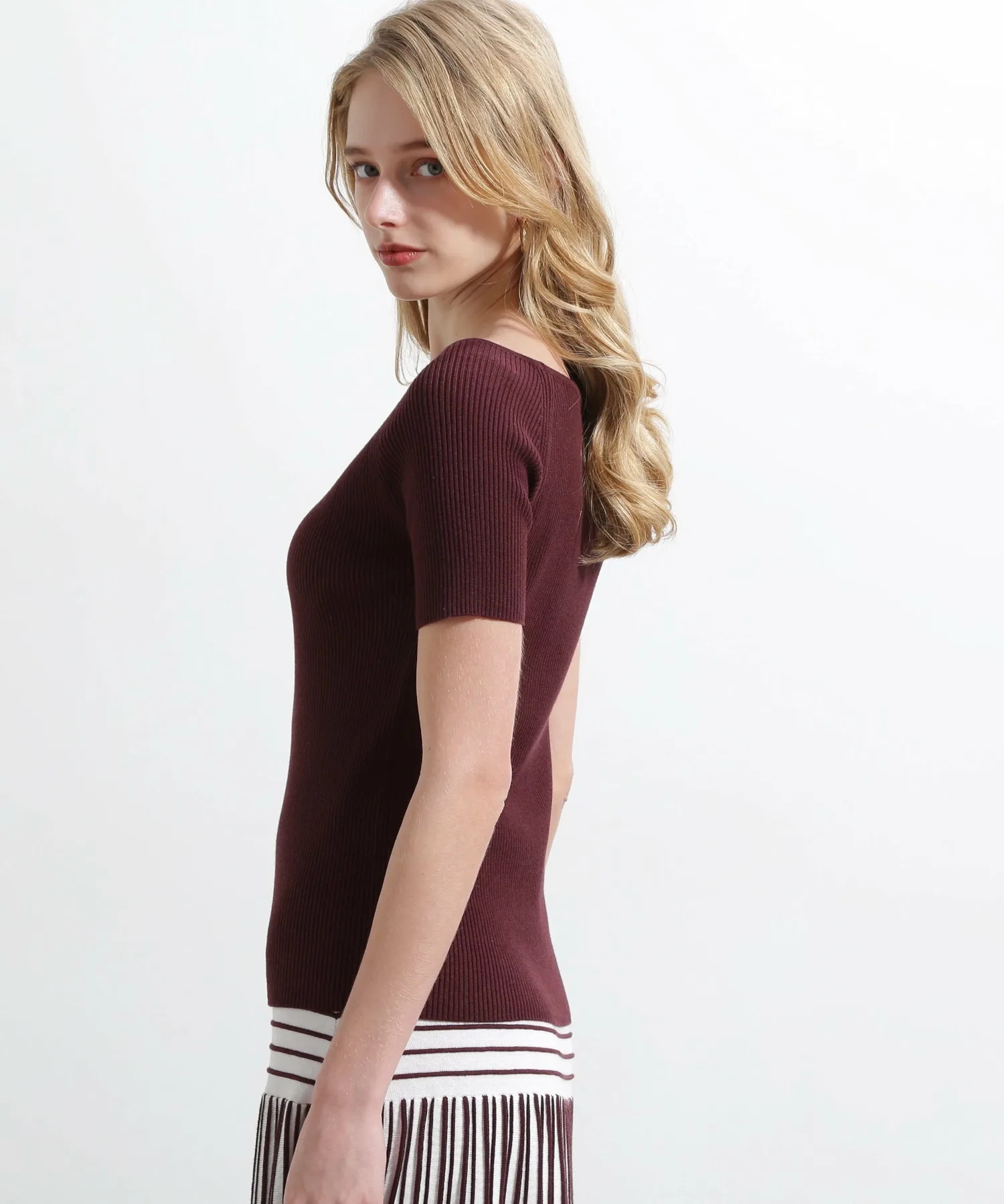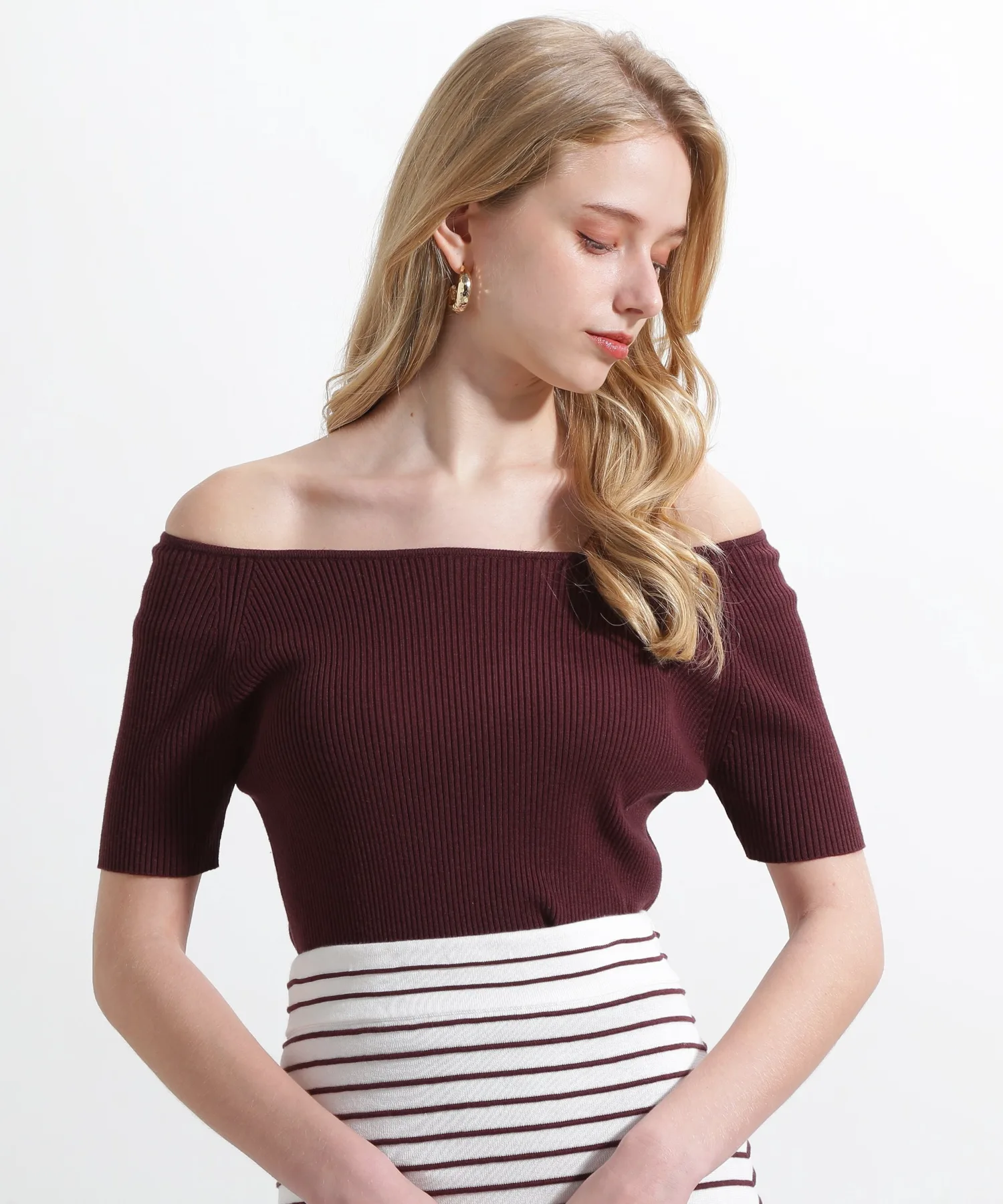 Трикотажная блузка с широким вырезом горловины. Тонкая ребристая вязка с плотным натяжением обеспечивает комфортную посадку, а также позволяет создать эффект открытых плеч, опустив вырез до самого низа. Умеренная линия талии позволяет изделию естественно повторять контуры тела до самого низа. Эта вещь хорошо сочетается с любыми брюками или юбками.
