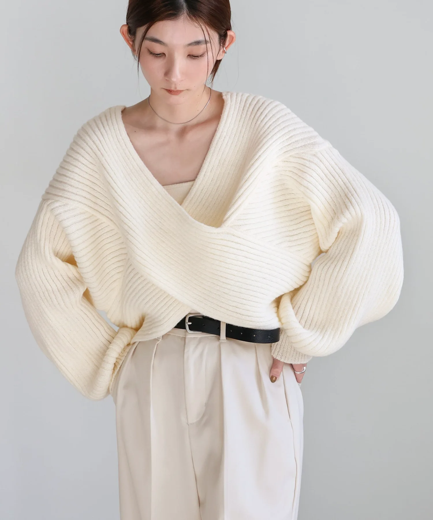 Этот короткий трикотажный топ отличается привлекательным крестообразным узором. Его можно носить как спереди, так и сзади, а свободный силуэт создает расслабленный образ. Короткая длина позволяет создавать разнообразные образы, сочетая его с рубашками, футболками с длинными рукавами и платьями. В зависимости от нижнего белья, его можно носить осенью и зимой. Сочетание с брюками и юбками с высокой талией также создает привлекательный эффект. В этом сезоне мы также добавили цвет слоновой кости для повседневной носки. Из-за производственных особенностей некоторые участки трикотажа могут выглядеть выпуклыми. Изображения товара являются образцами, поэтому характеристики, отделка и размер могут немного отличаться от фактического продукта. Благодарим за понимание. Из-за производственных обстоятельств доставка может быть задержана или производство может быть прекращено. Сроки доставки могут варьироваться в зависимости от продавца.