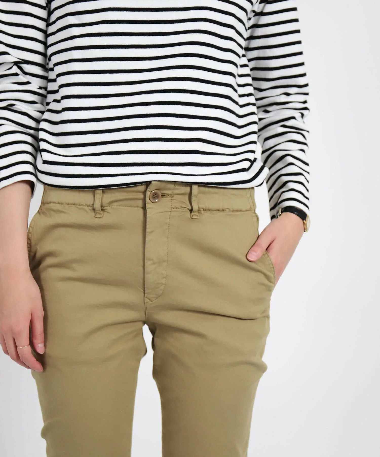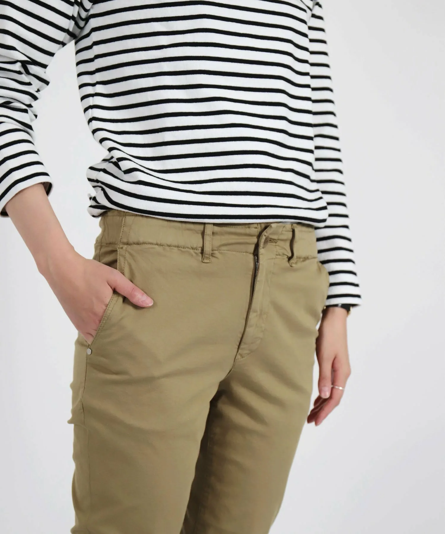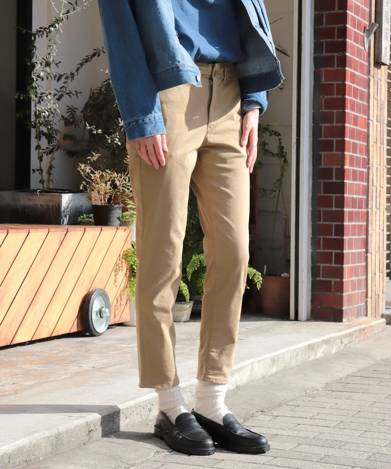 Изготовленные из эластичной ткани чинос ISKO, эти брюки имеют текстуру, которая повышает свободу движений. Благодаря удобному крою и превосходной эластичности, они естественно облегают тело благодаря своей мягкой текстуре и приятным ощущениям на коже. Процесс окрашивания готового изделия добавляет нотку цвета для повседневного образа.Эластичный пояс облегчает их ношение. Талия и бедра умеренно узкие, а брюки красиво сужаются к низу, создавая силуэт, который можно носить до щиколотки, не завязывая шнуровку. Эти универсальные брюки свободного кроя создают красивую линию ног, что делает их идеальными как для повседневных, так и для мужских образов!