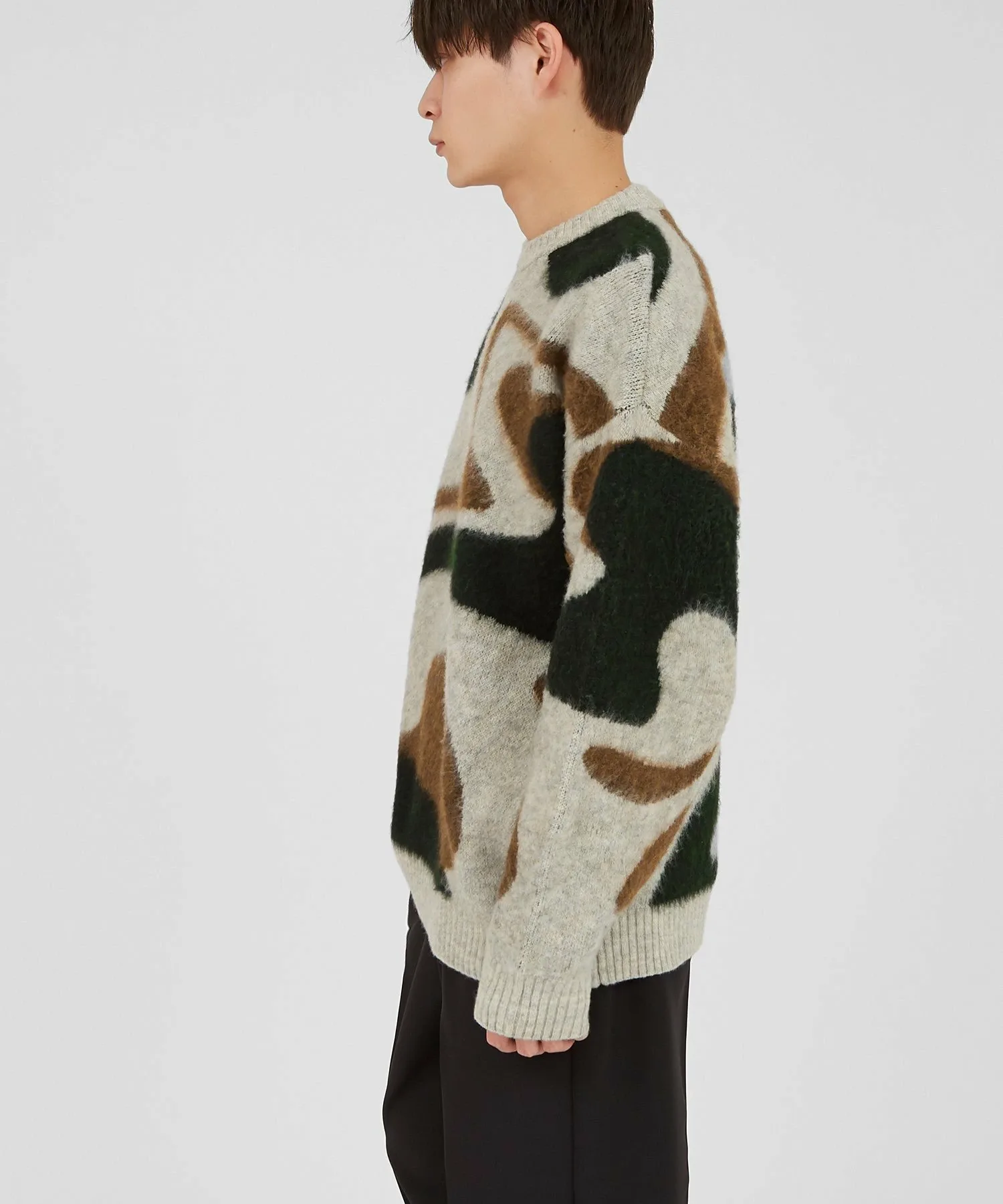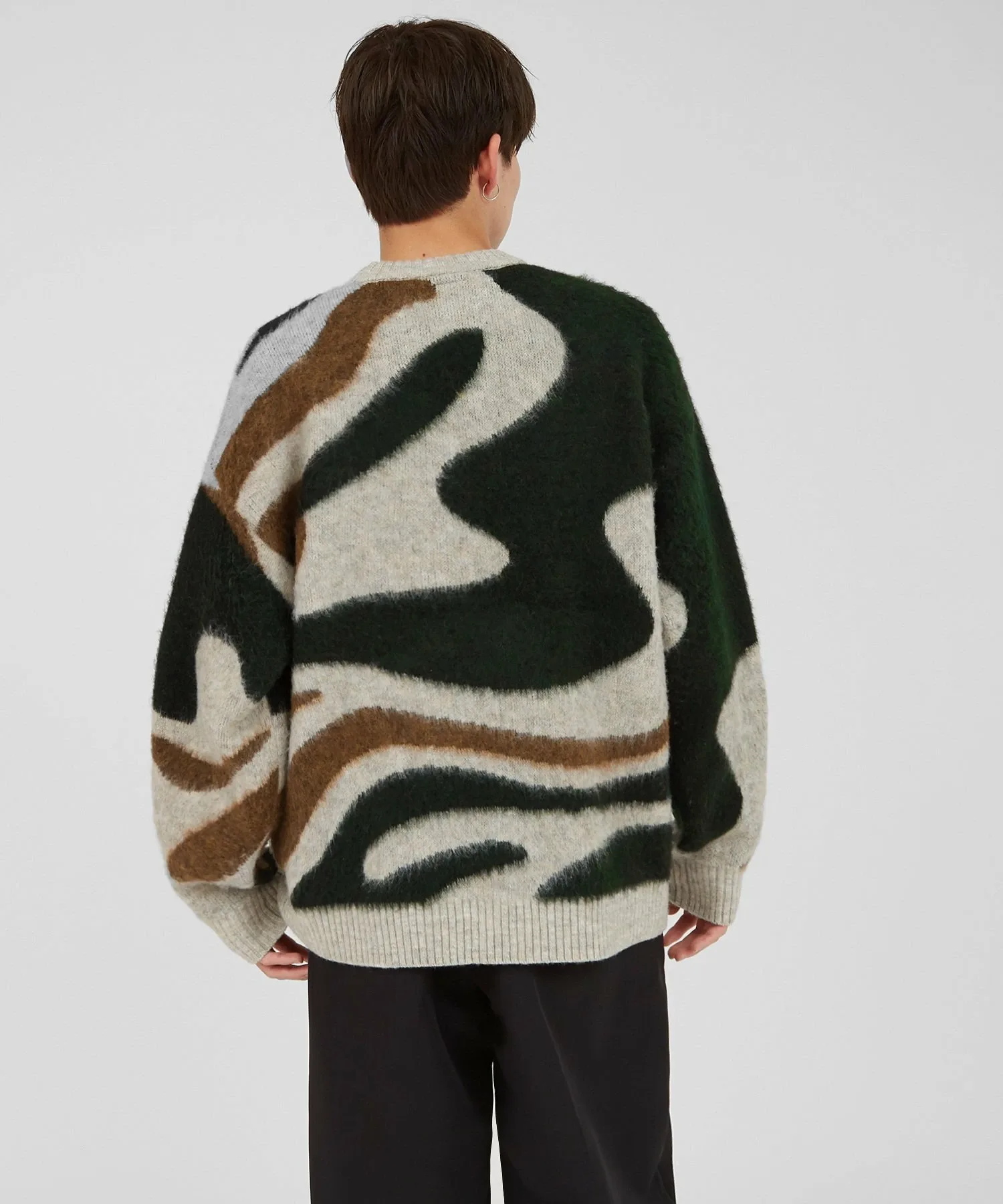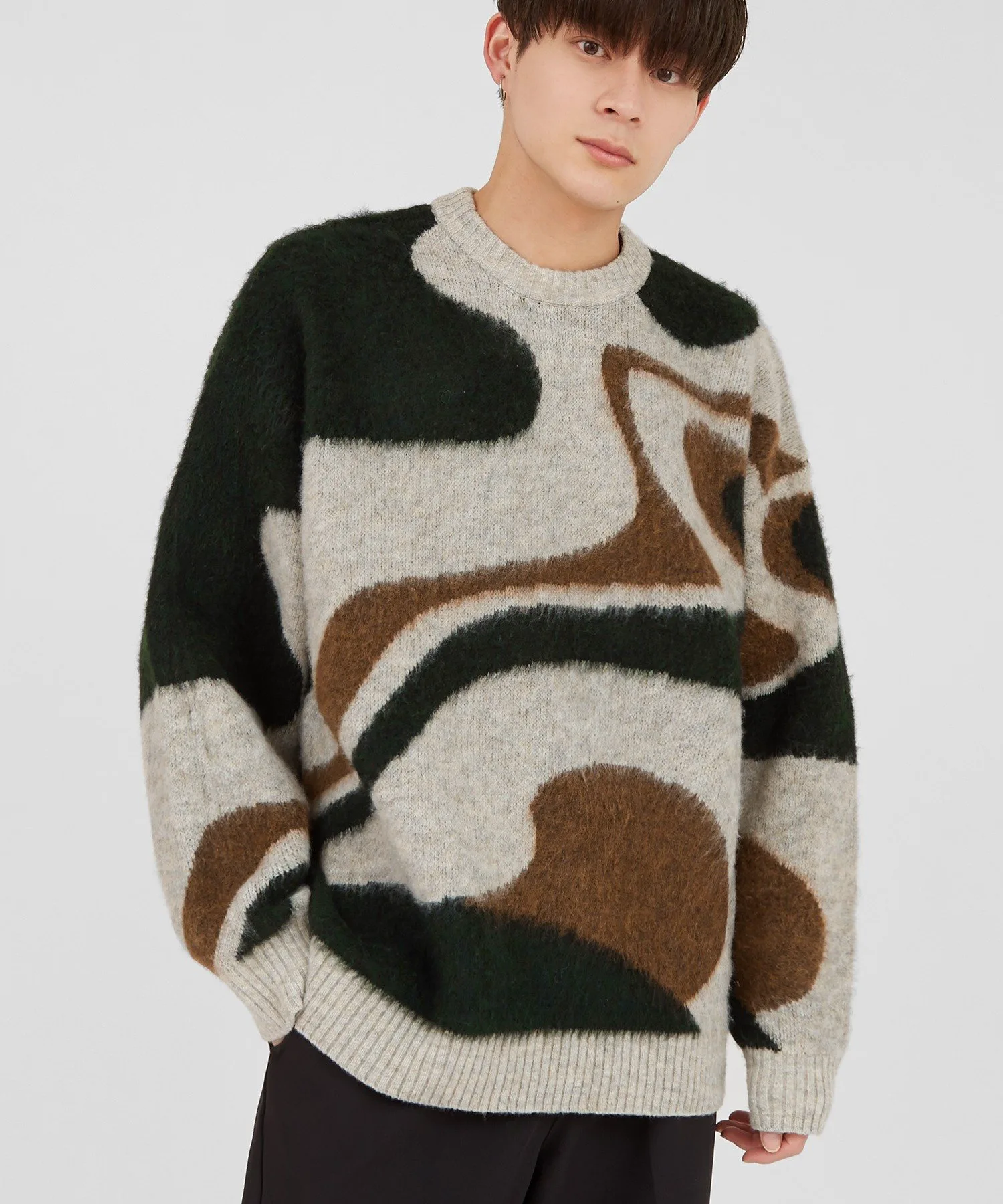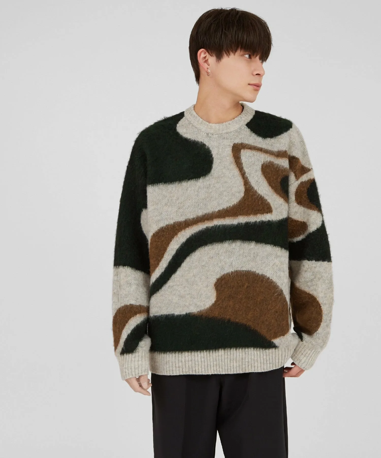 К предстоящему сезону мы выпустили очаровательный пушистый вязаный свитер с мраморным узором, который станет центральным элементом вашего весеннего образа и позволит вам наслаждаться стилем!