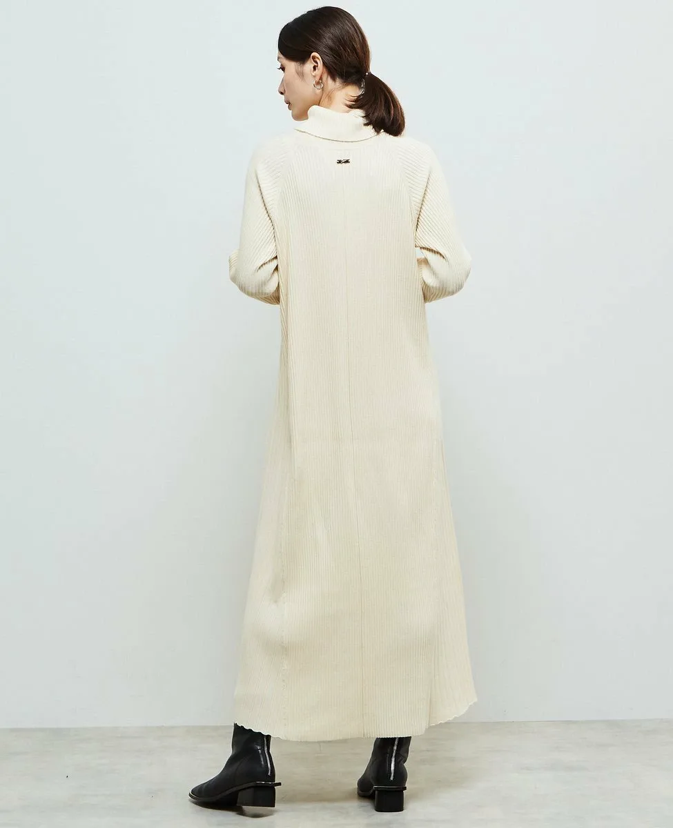 Удобное трикотажное платье из не вызывающей зуда трехслойной смесовой ткани. Сочетание ребристых узоров и диагональных разрезов придает ему аккуратный вид.