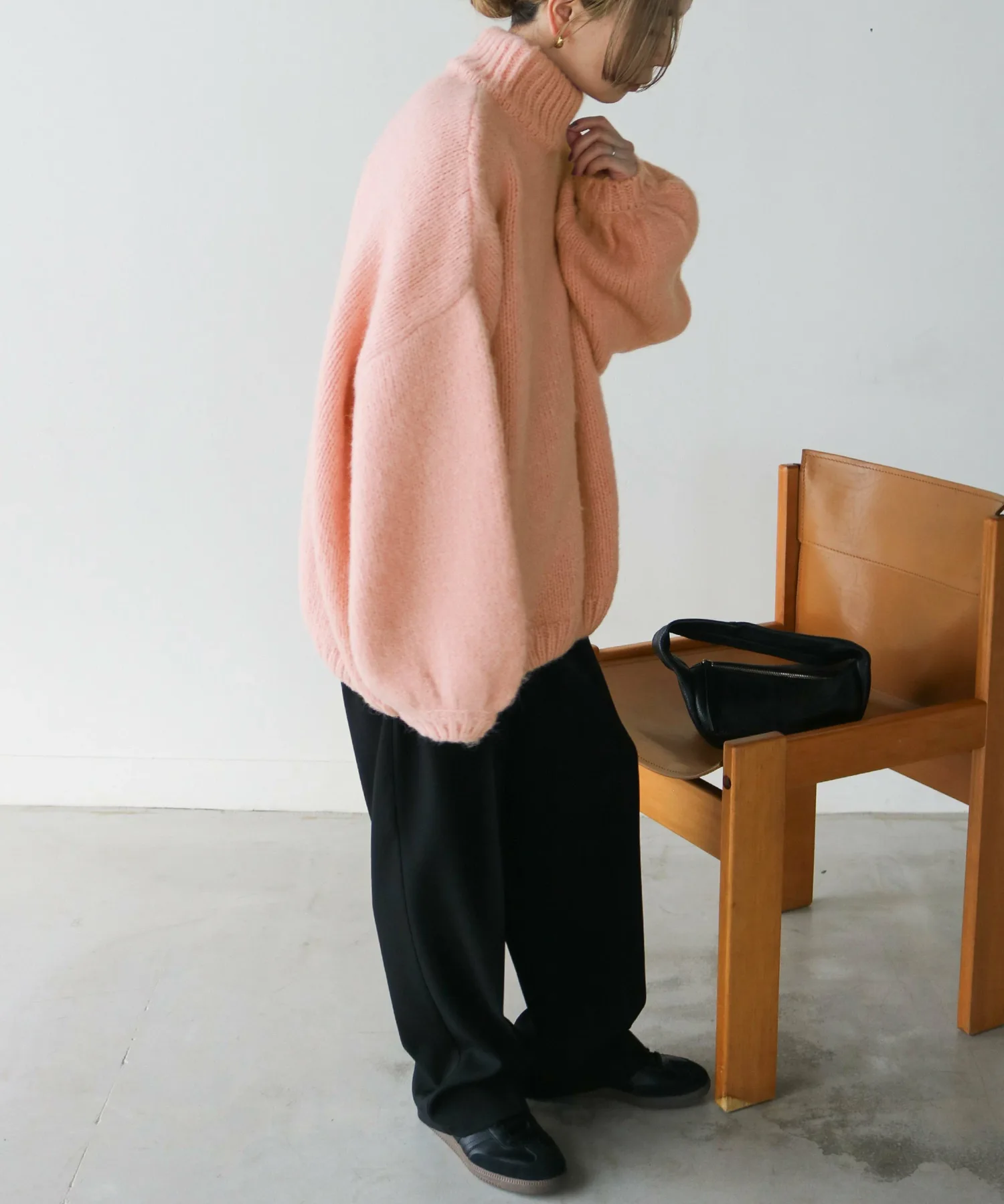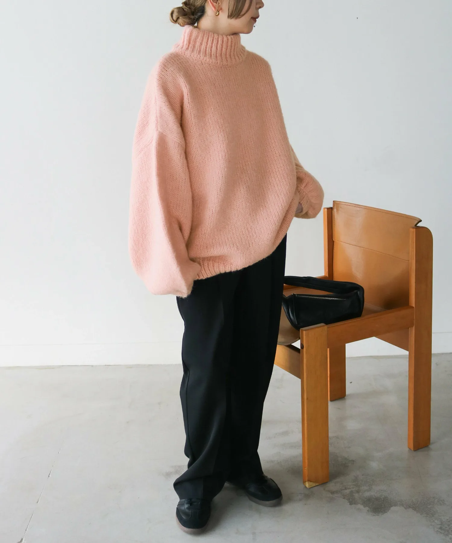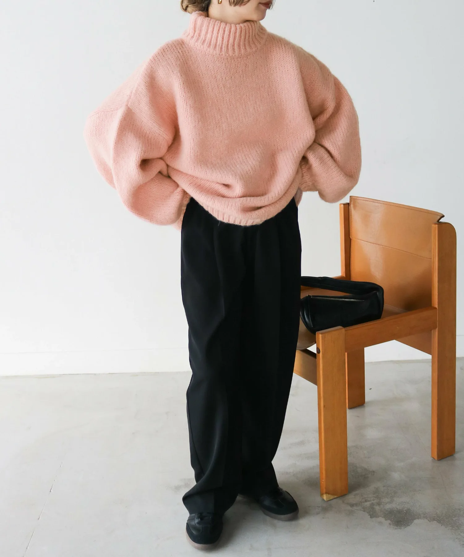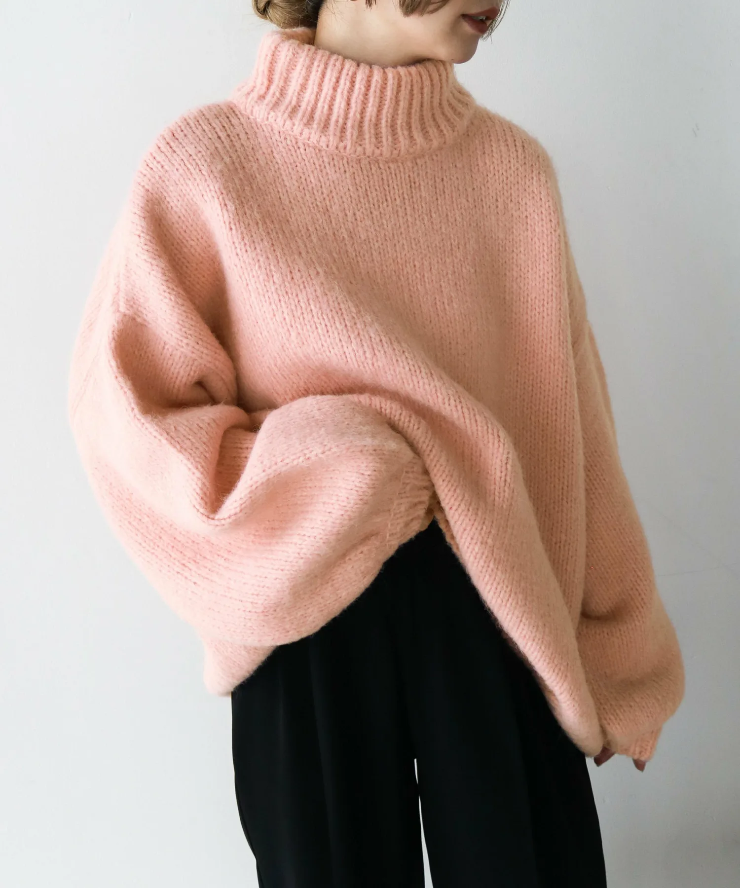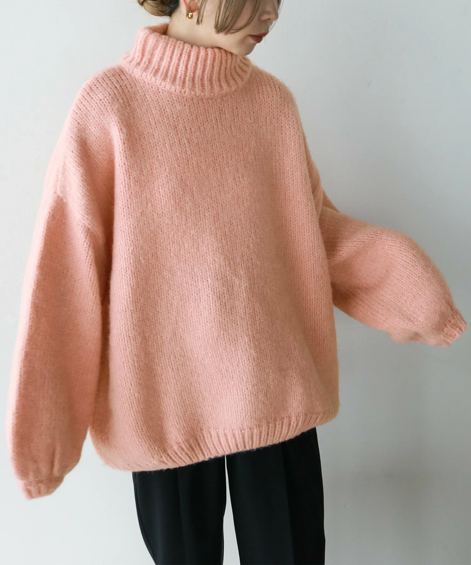 Милый, свободный вязаный свитер с округлым, обволакивающим силуэтом.