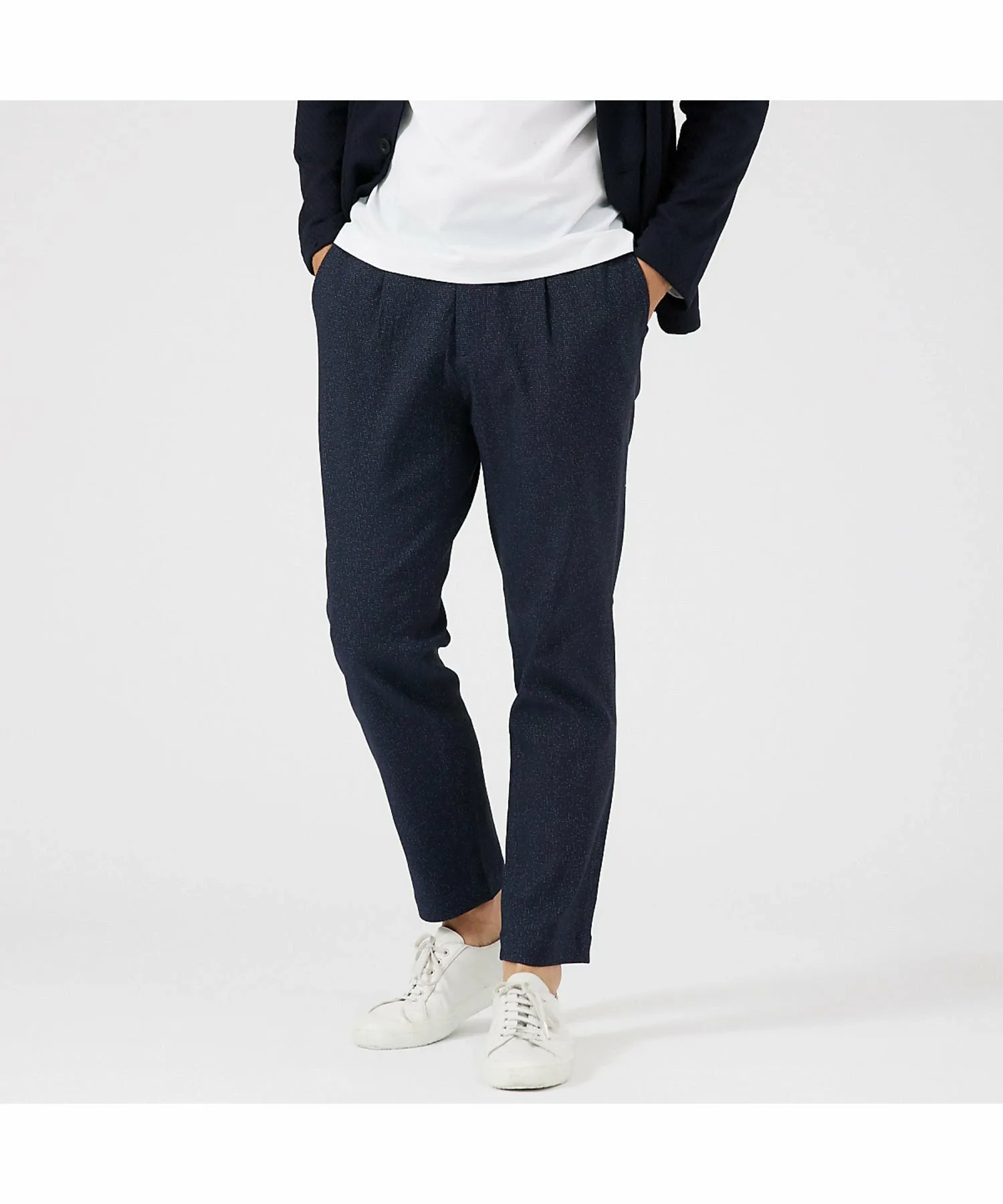 Однотонный узор делает эти брюки универсальными.