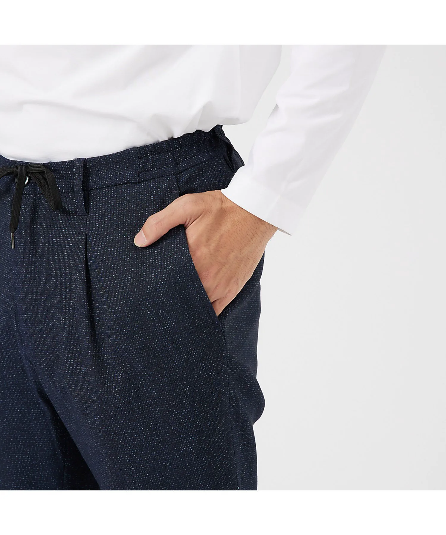 Одна складка подчеркивает талию, а зауженный силуэт создает эффект стройности.