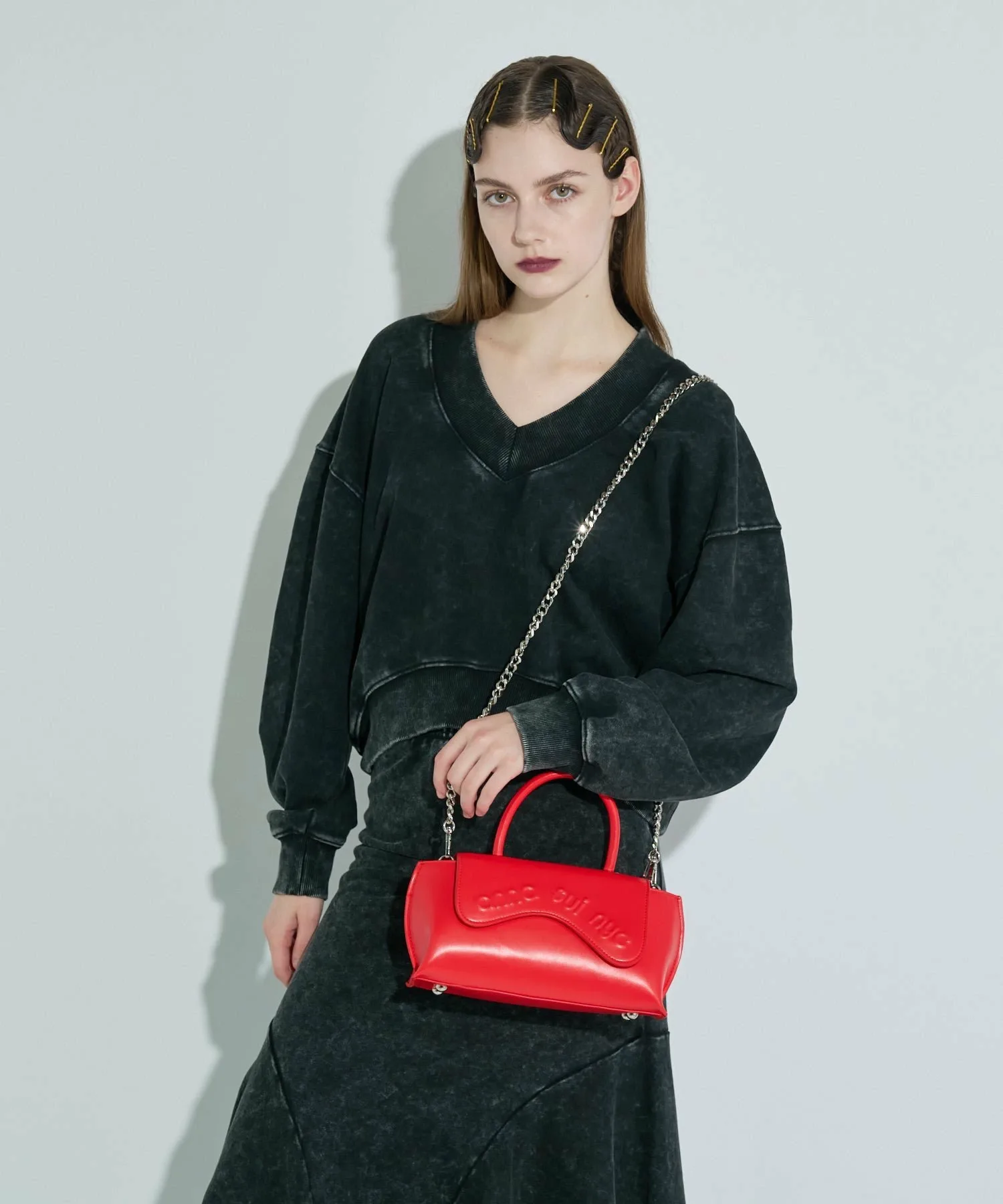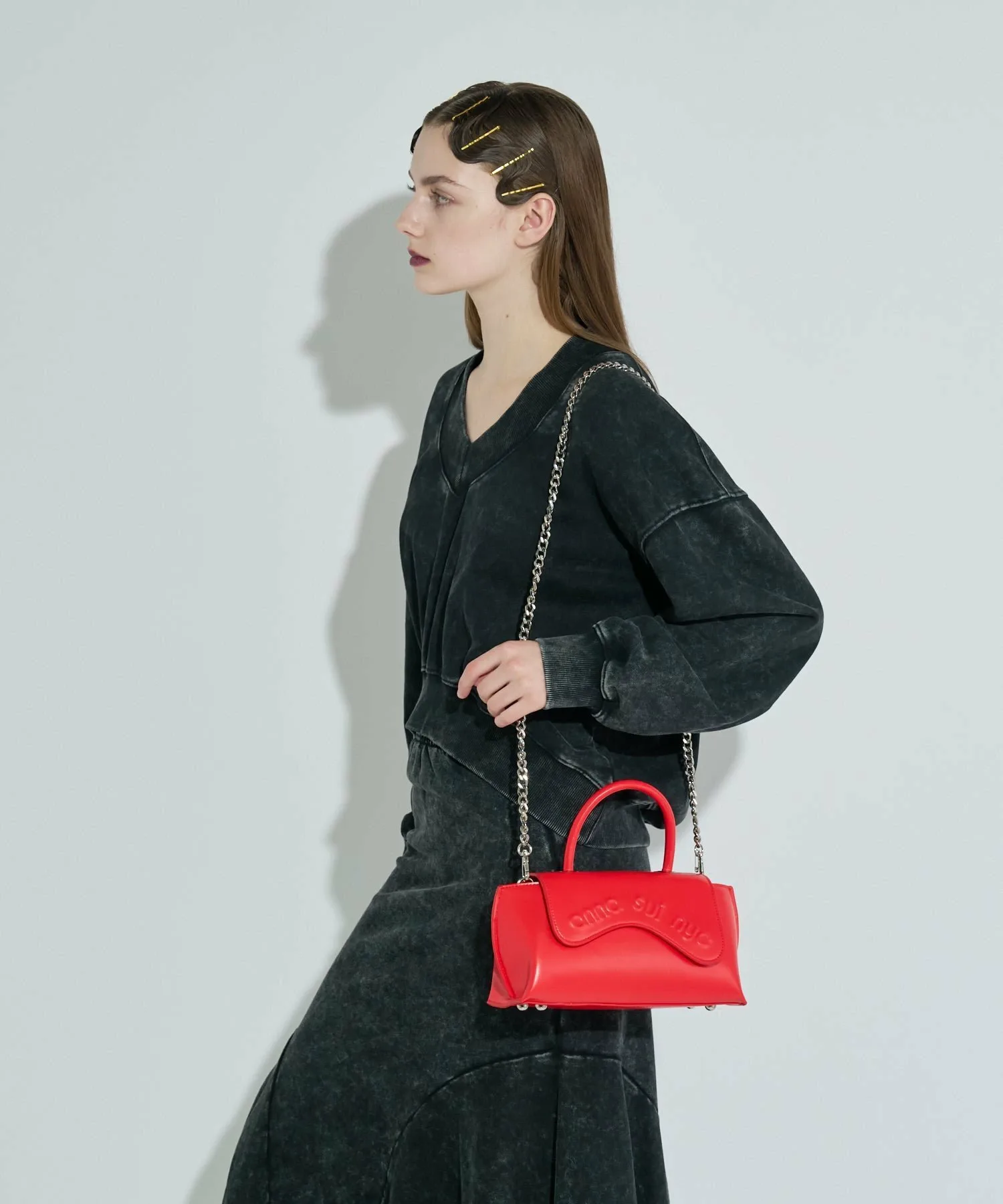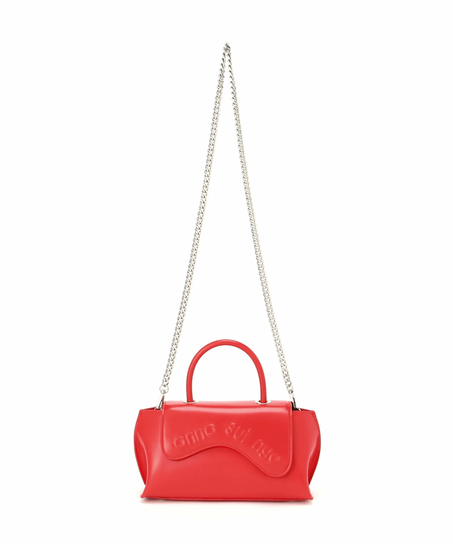 Волнистые линии клапана и заметный логотип бренда привлекают внимание, сочетая ретро и футуристический стиль, что делает эту сумку стильной и добавляет нотку новизны любому образу. Изготовленная из искусственной кожи с легким блеском и гладкой поверхностью, сумка имеет магнитную застежку для удобства использования, а прилагаемая цепочка позволяет носить ее как сумку через плечо, что делает ее универсальной. Она дополняет женские наряды, а также хорошо подходит в качестве завершающего штриха к мужским образам.