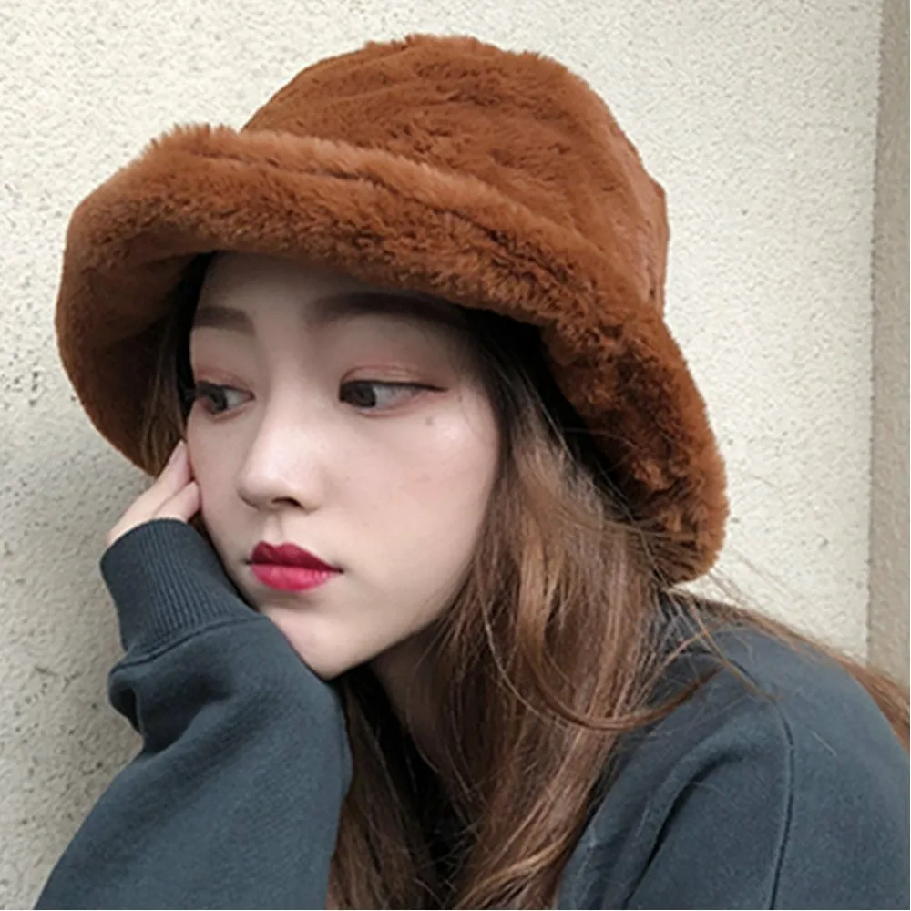 Женская панама, пушистая, мягкая, зимняя, теплая, плотная, стильная, милая, в корейском стиле