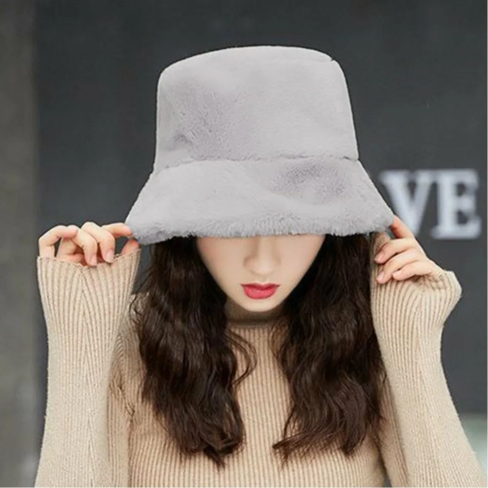 Женская панама, пушистая, мягкая, зимняя, теплая, плотная, стильная, милая, в корейском стиле