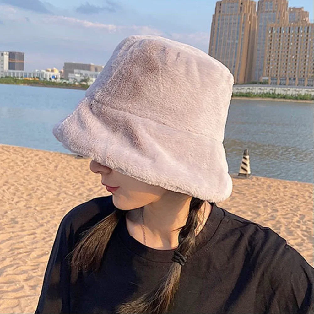 Женская панама, пушистая, мягкая, зимняя, теплая, плотная, стильная, милая, в корейском стиле