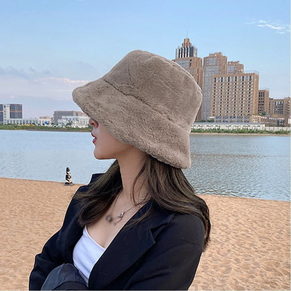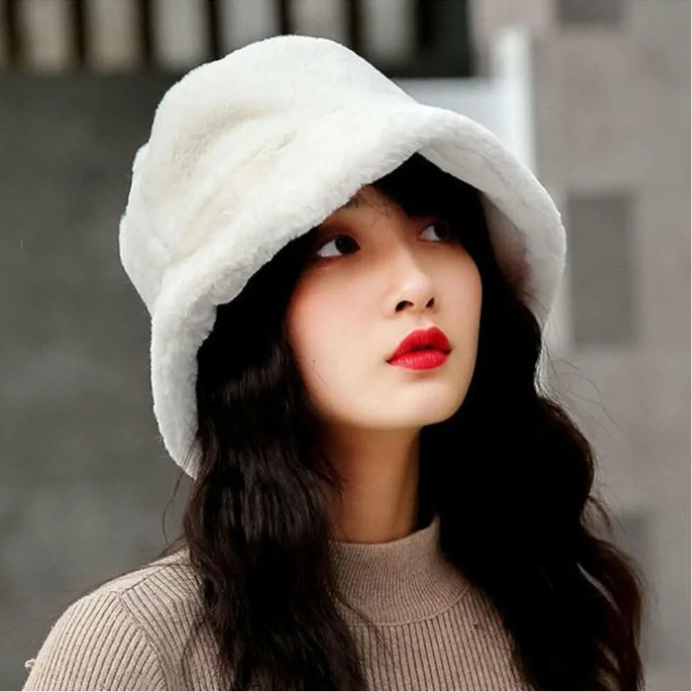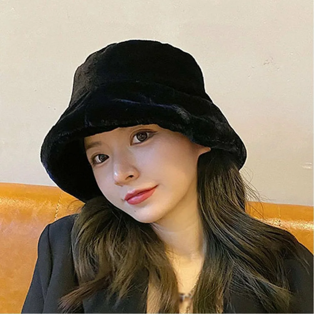 Женская панама, пушистая, мягкая, зимняя, теплая, плотная, стильная, милая, в корейском стиле
