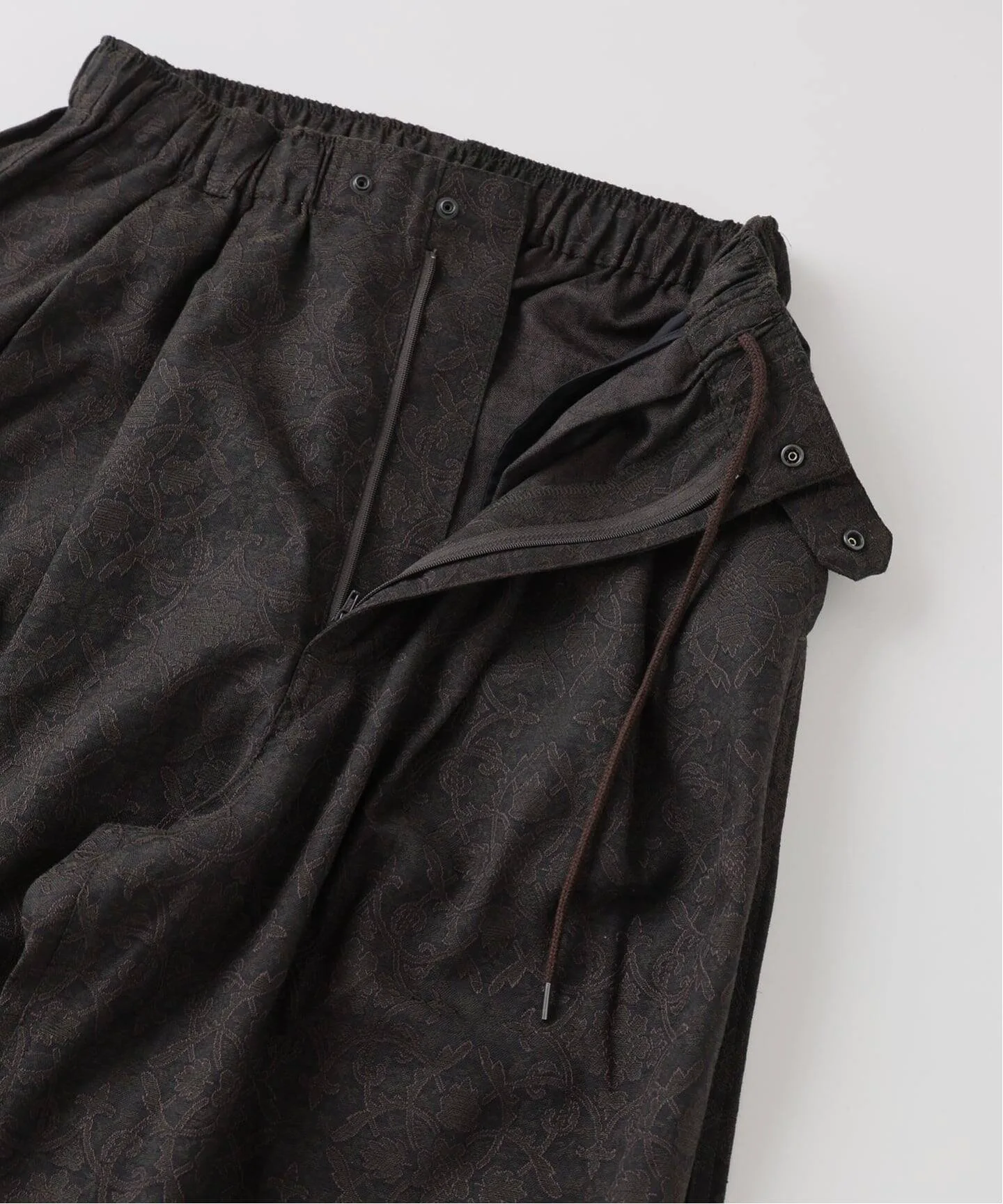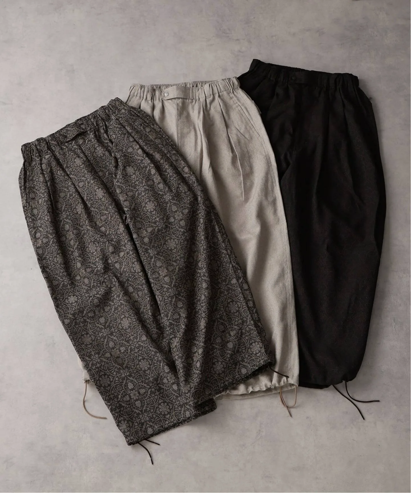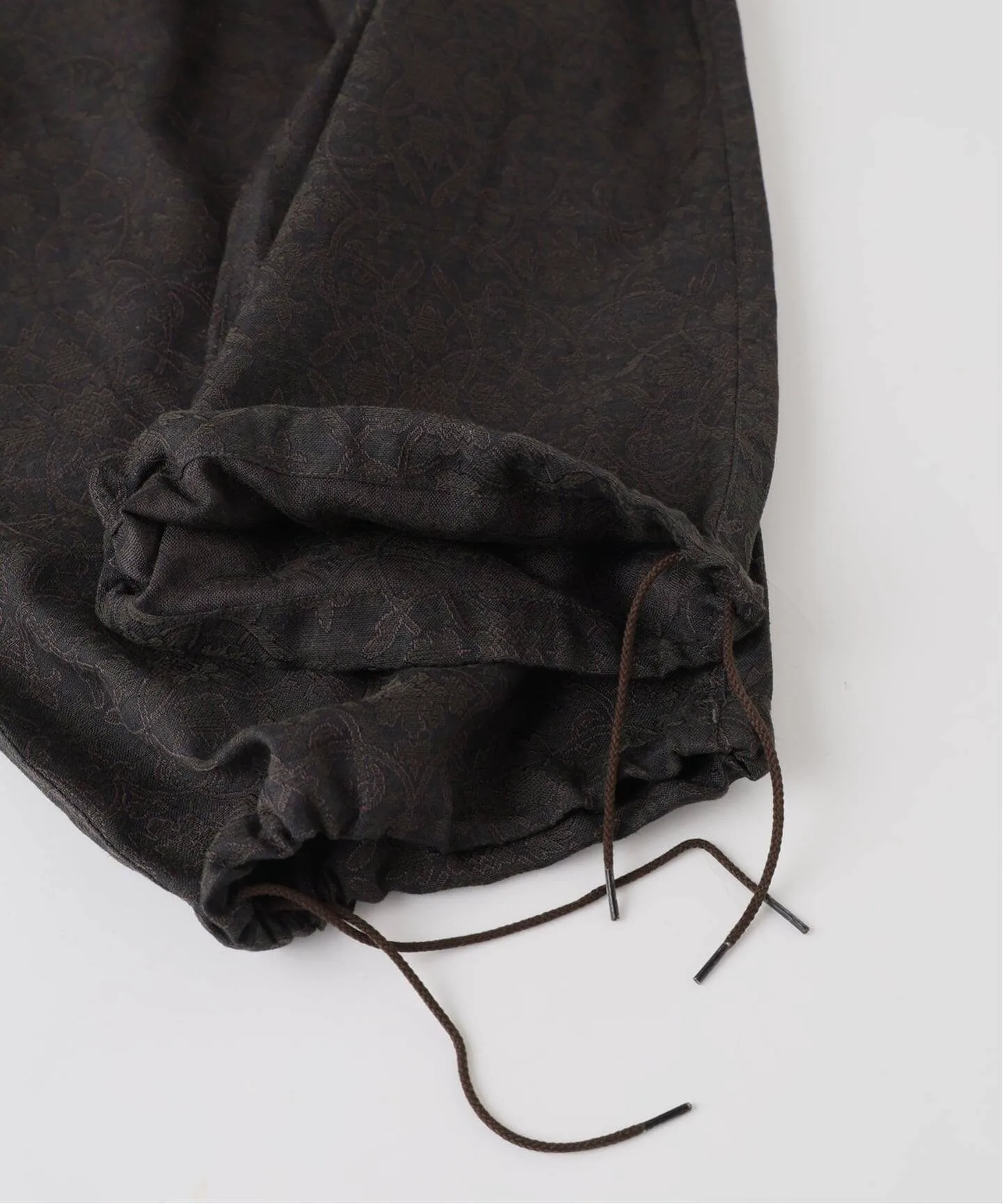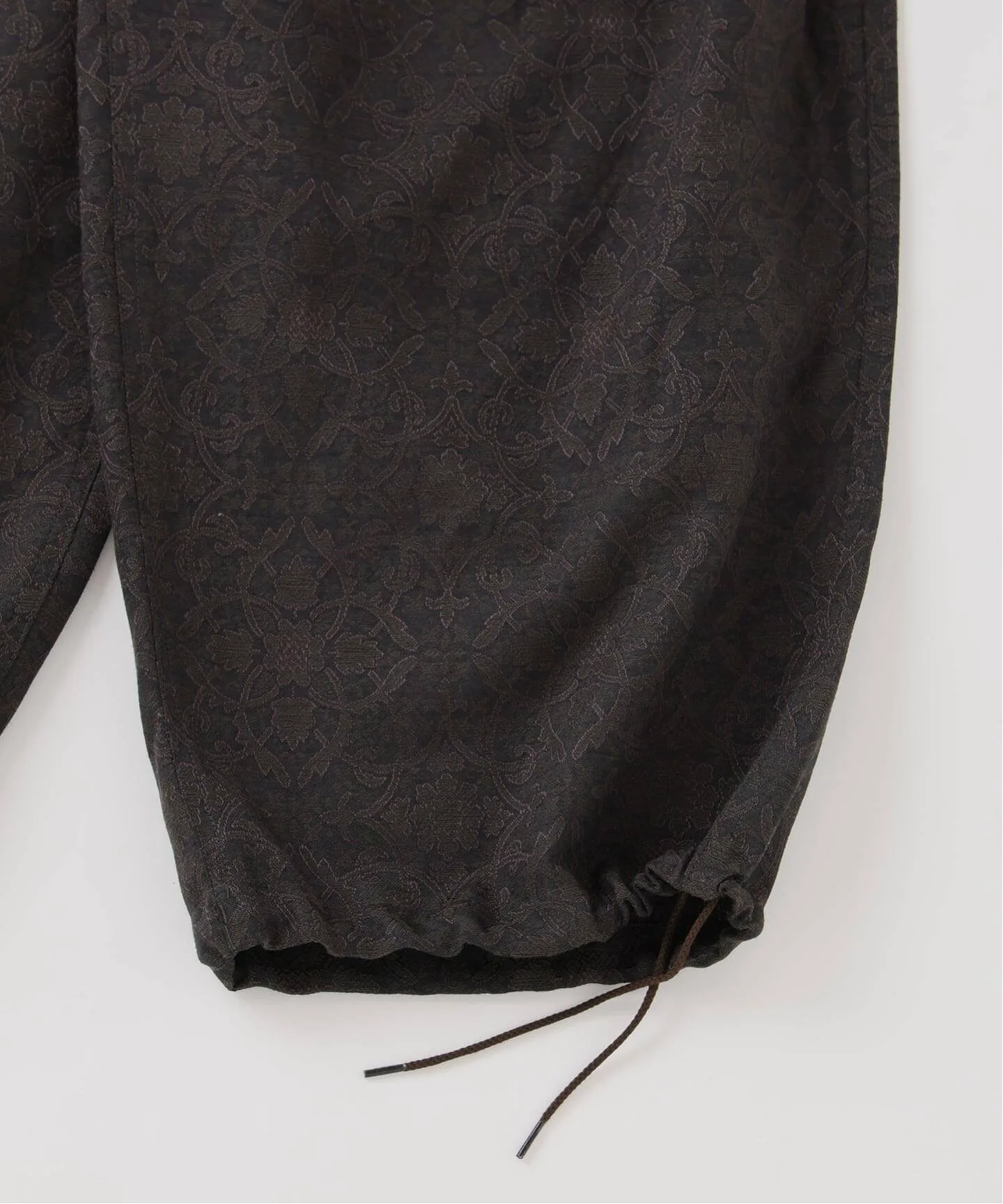 Брюки, обновляющие классические брюки Air Crew Pants, изготовлены на заказ из оригинального жаккардового материала с арабесковым узором.