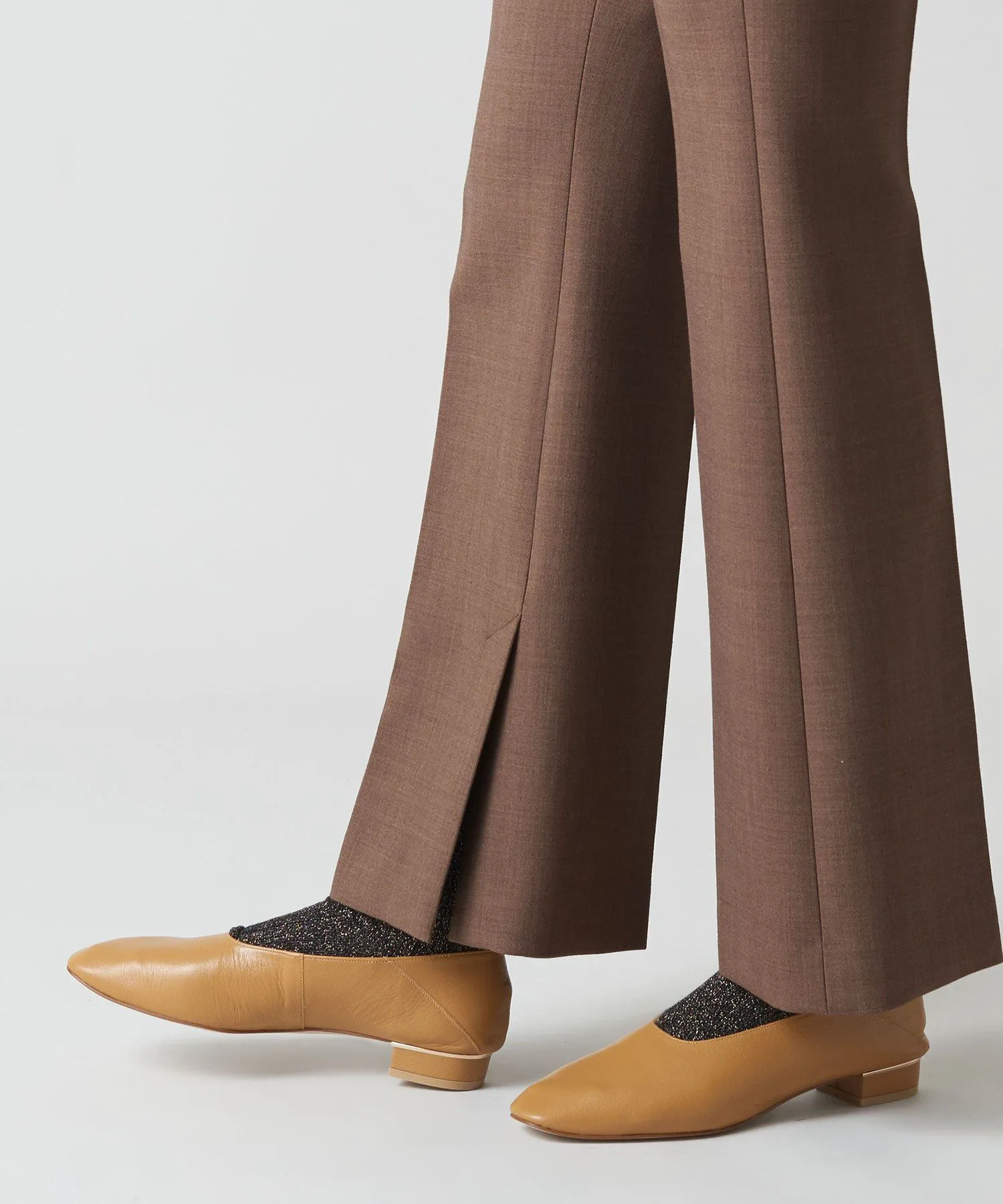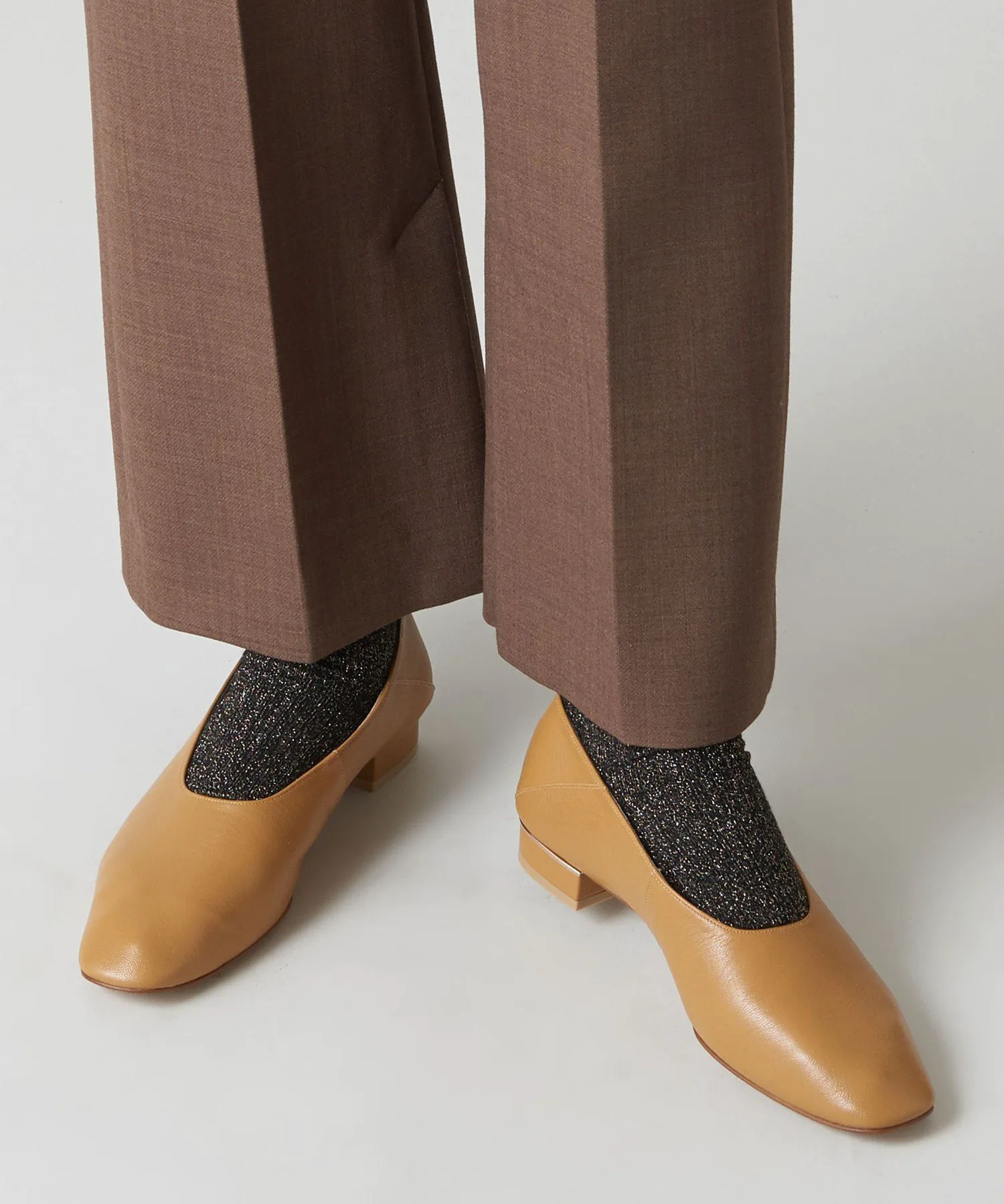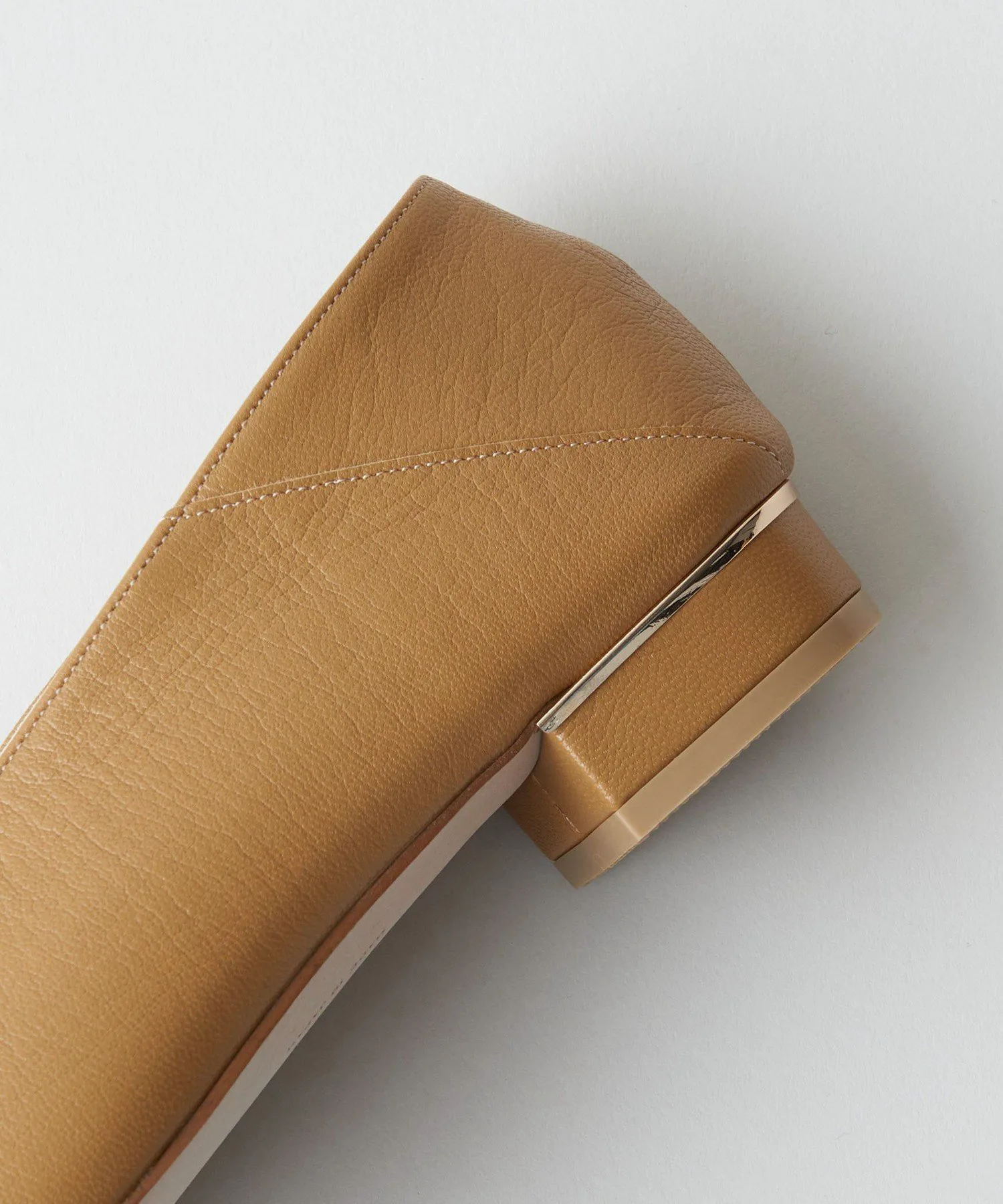 Низкий каблук высотой 2 см украшен металлической акцентной линией, добавляющей изящный акцент сзади.