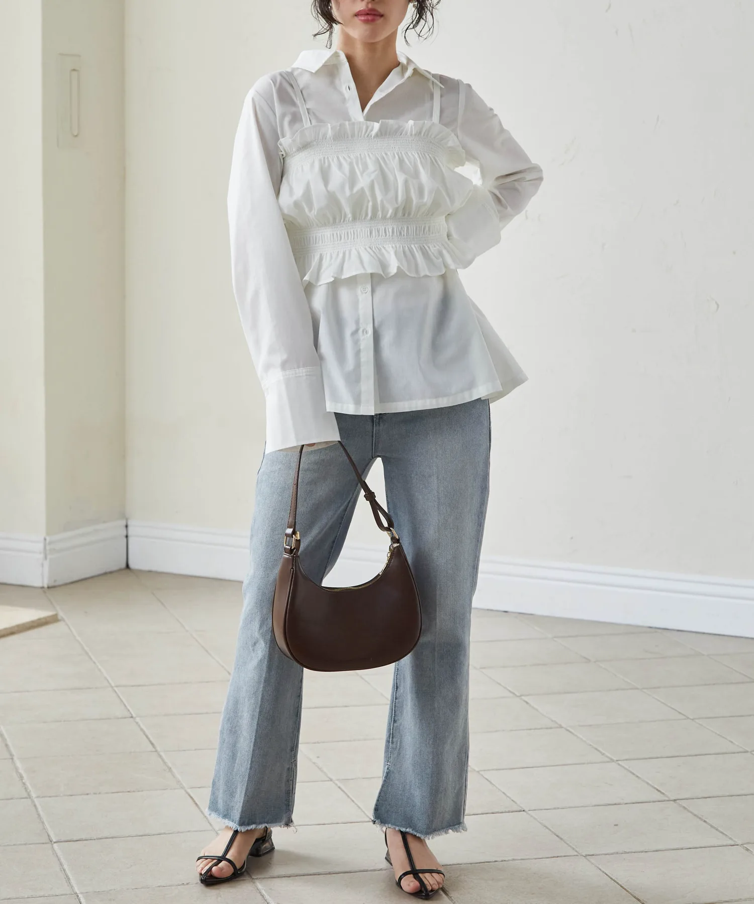 - Рубашку можно носить отдельно, или бюстье будет мило смотреться в сочетании с базовым трикотажным топом.