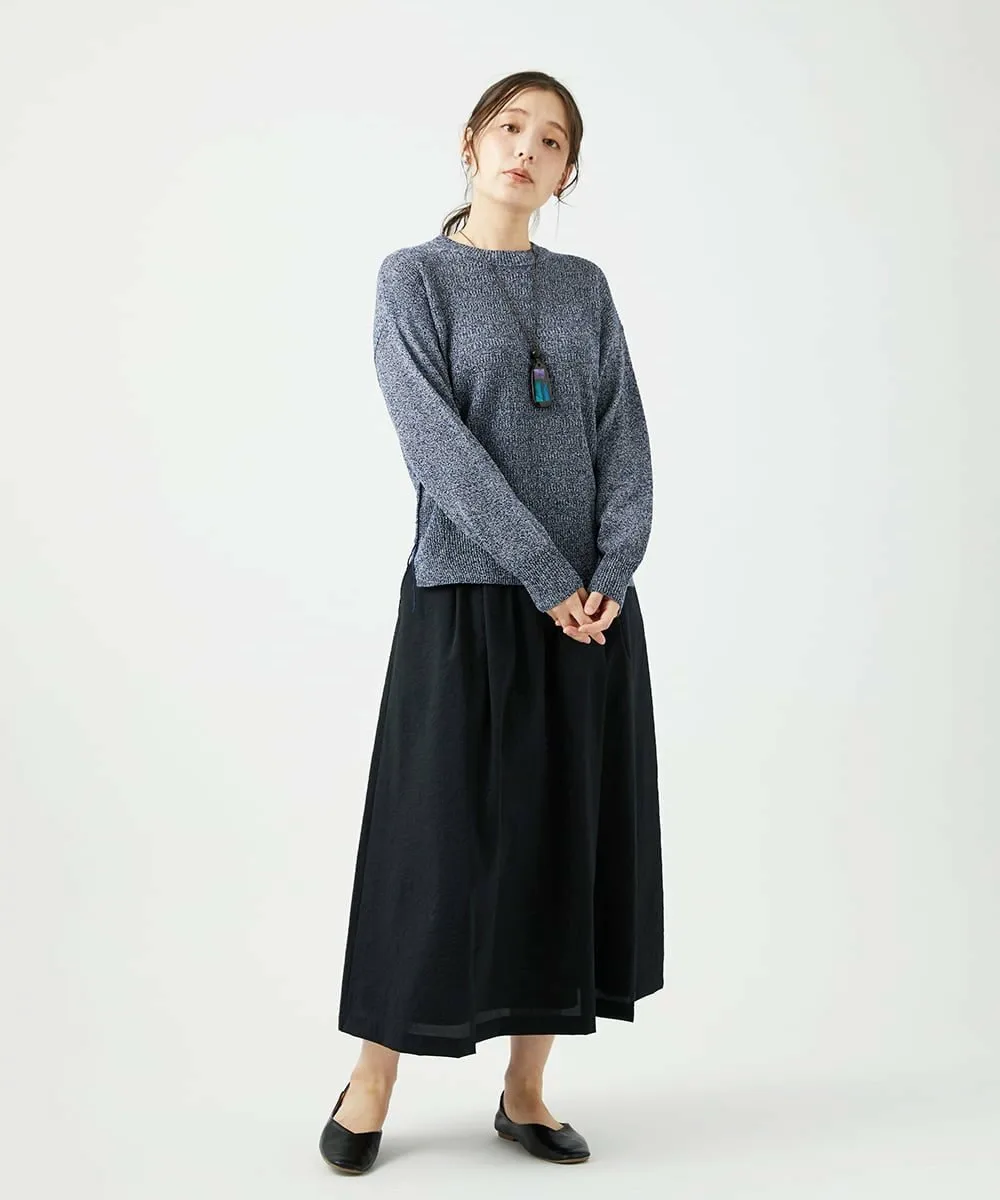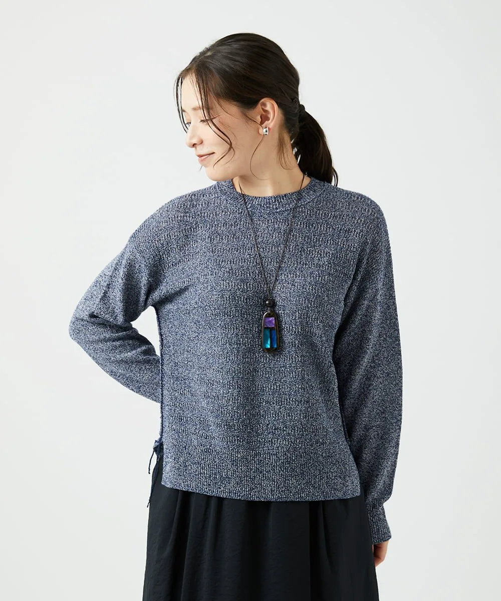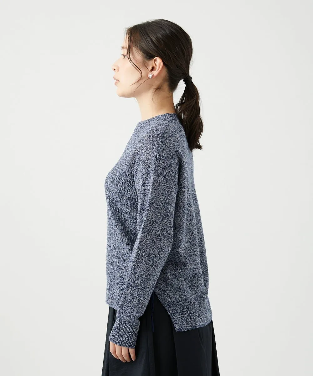 Хлопковая пряжа скручивается с помощью воздуха, а сочетание и скручивание цветов создают глубокий меланж, придавая изделию мягкую текстуру. Поверхность пряжи обработана для придания ей гладкости и приятной на ощупь текстуры. Этот материал приятен на ощупь и удобен в носке.