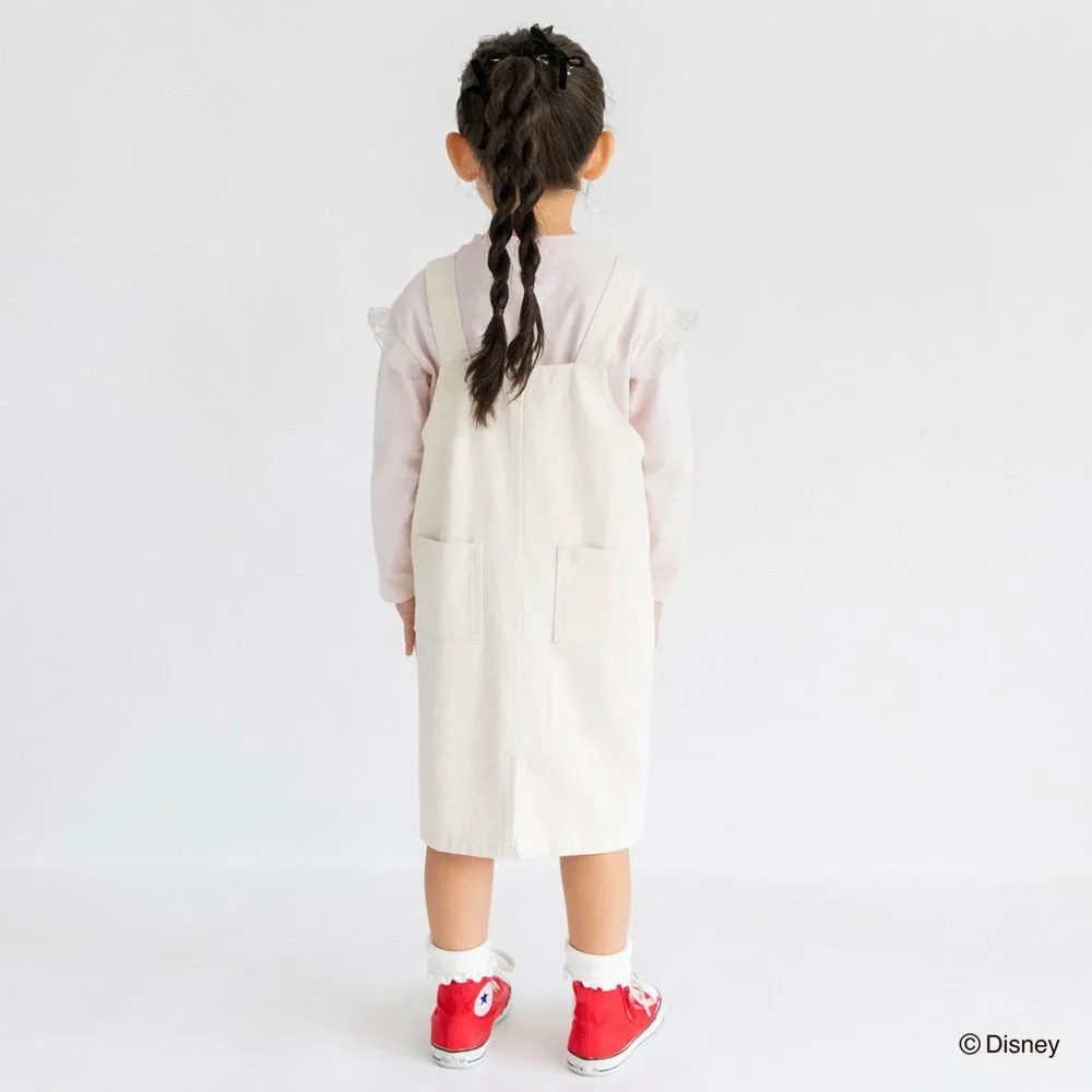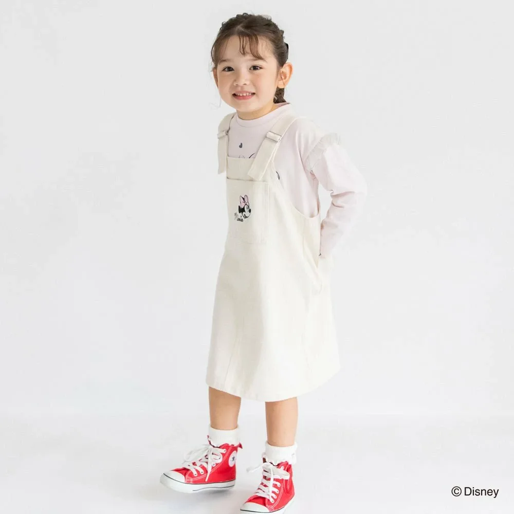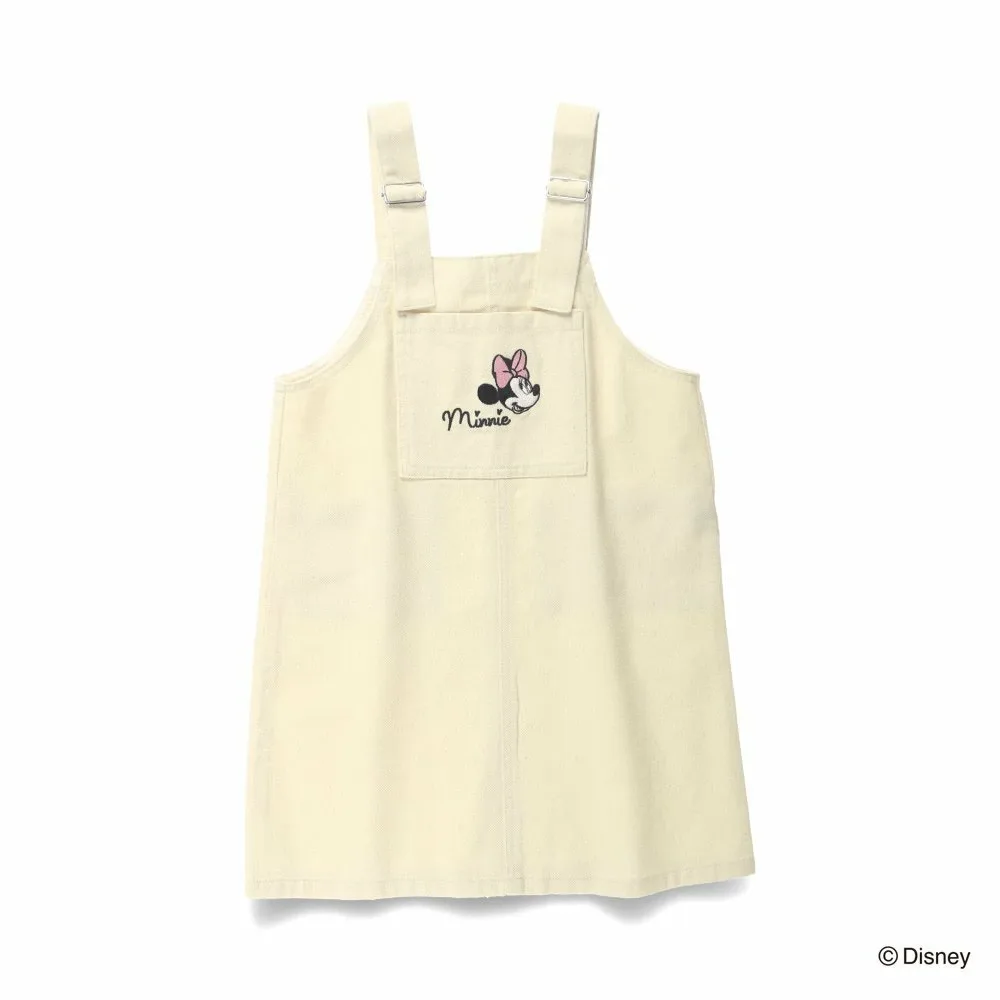 Особая юбка-комбинезон с вышивкой Минни Маус на переднем кармане.
