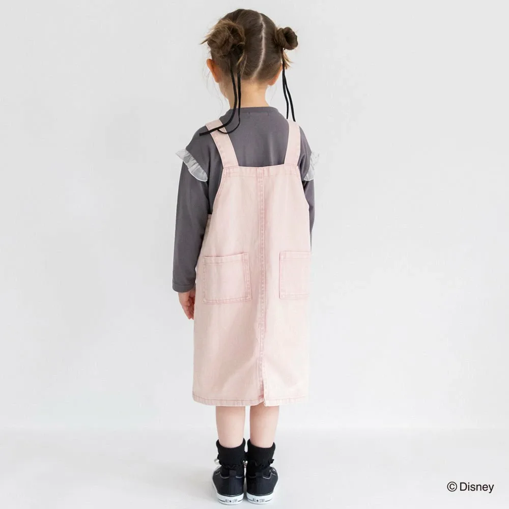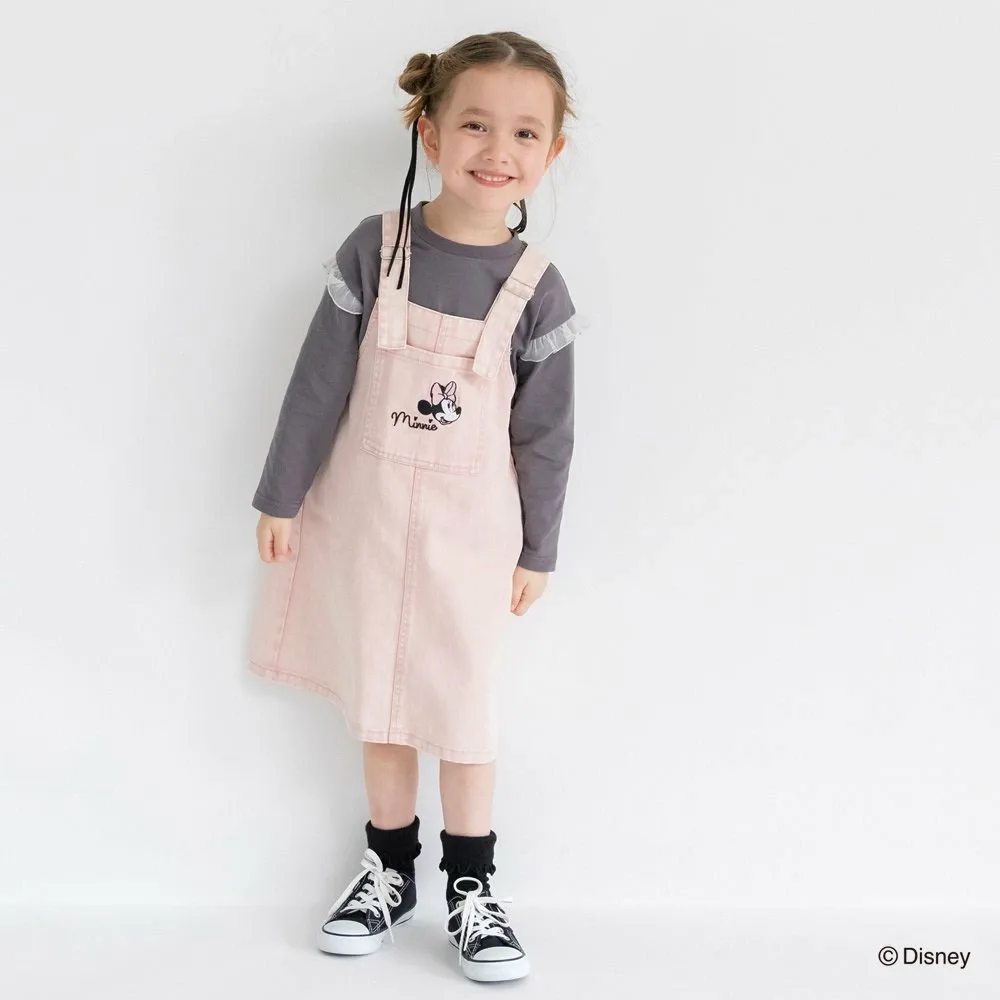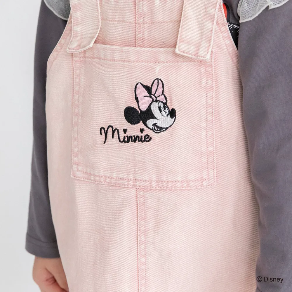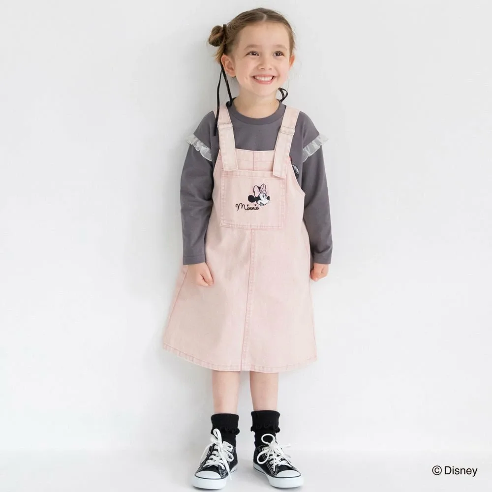 Особая юбка-комбинезон с вышивкой Минни Маус на переднем кармане.