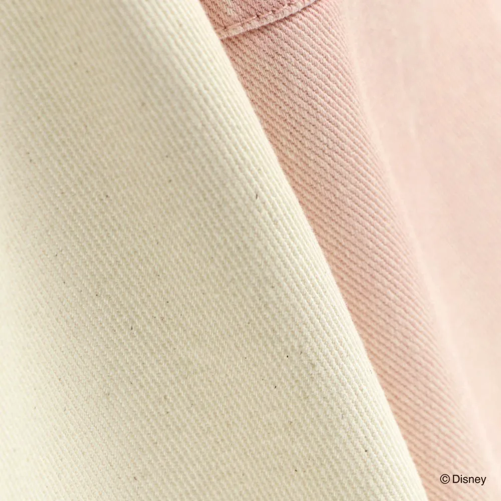 Приглушенный цвет слоновой кости саржевой ткани и нежно-розовый цвет джинсовой ткани подчеркивают фирменную миловидность Минни.