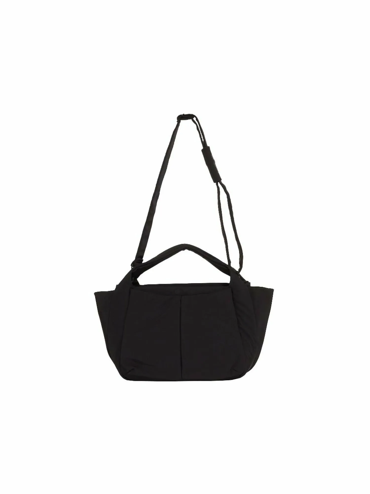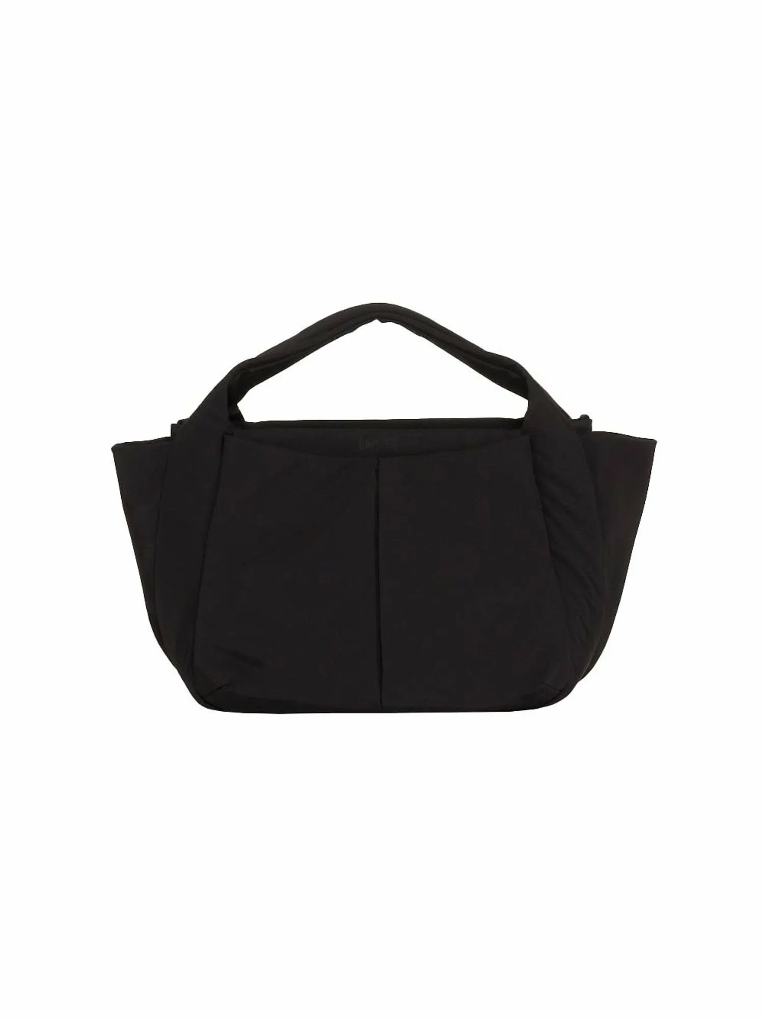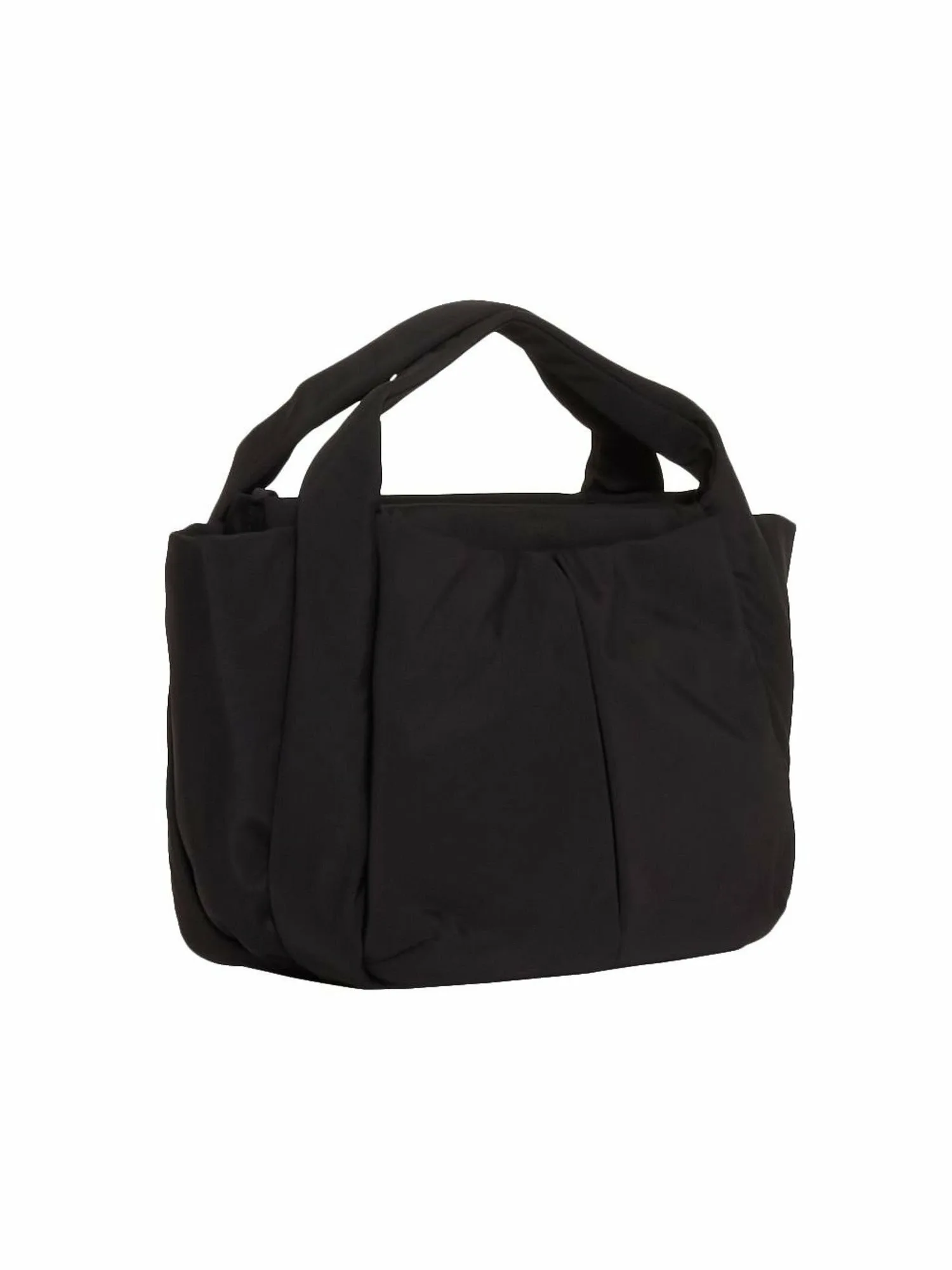 Ручки сконструированы таким образом, чтобы складываться внутрь сумки, сохраняя свою форму. Карманы расположены спереди и по бокам для удобной организации и быстрого доступа к вашим вещам. Плечевой ремень сумки достаточно длинный, чтобы носить ее в руке, а съемный длинный плечевой ремень входит в комплект для большей универсальности. Материал изготовлен из высокоплотного тканого переработанного нейлона с легким блеском и слегка матовой поверхностью, что позволяет легко сочетать ее с любым нарядом. Хотя сумка может выглядеть громоздкой, легкая и тонкая ткань дополняет повседневный стиль.